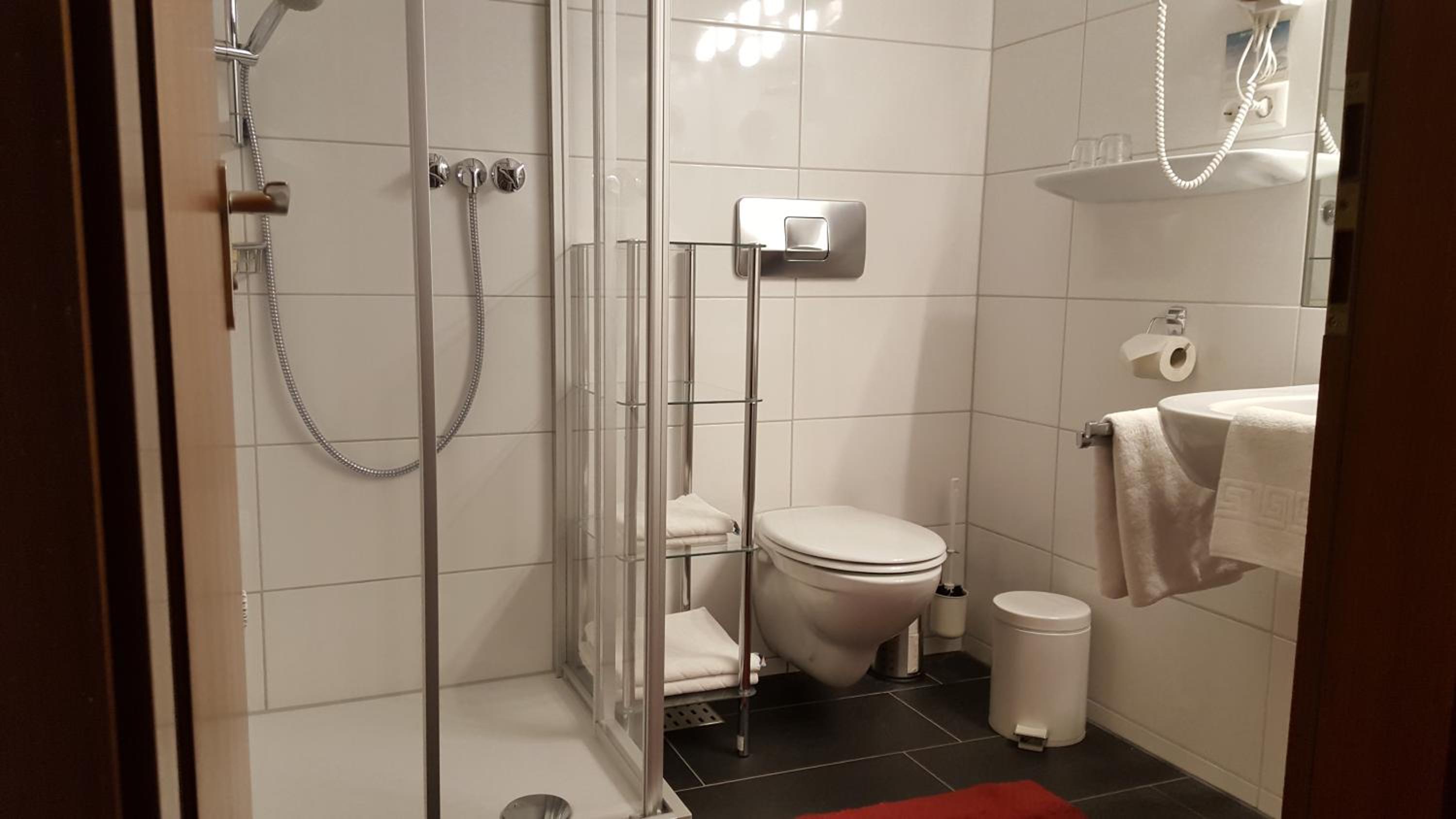 Die sehr ruhige Lage. Parkmöglichkeit vor Ort war sehr gut. Die Zimmer waren sehr sauber und ordentlich. Die Dusche war sehr gut zugänglich, d. h. auch mit Problemen in den Beinen konnte man sehr gut in die Dusche und auch wieder raus.