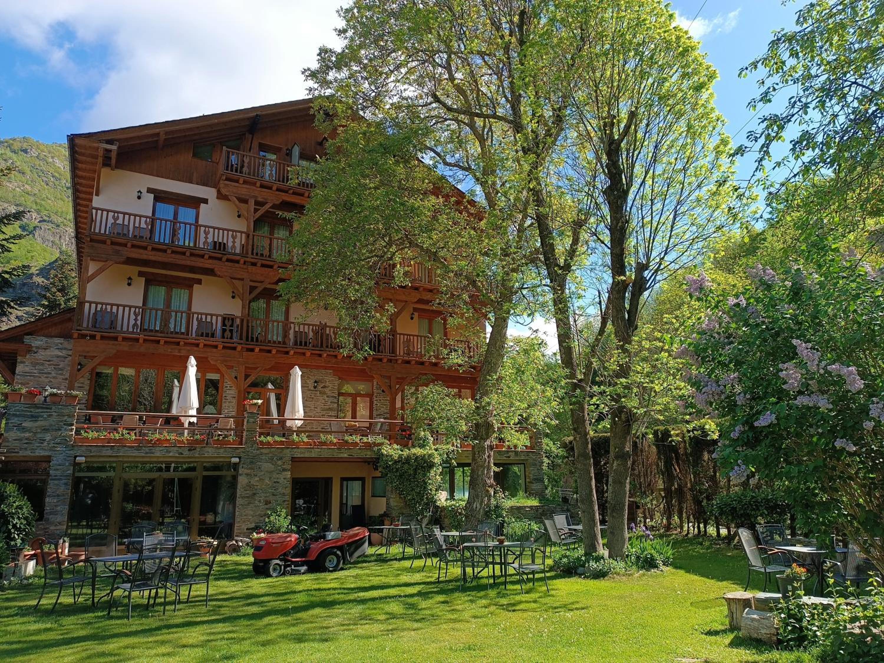 La bañera hidromasaje en la habitacion fue un lujo despues de nuestra ruta en la montaña. El personal muy amable, muy dispuesto de ayudar y hacernos sentir bienvenidos. Hemos podido aprovechar la piscina tambien (sin ningun gasto extra). El hotel es muy bonito, el jardin expectacular. La habitacion muy grande y muy comoda, con terraza y vistas. Cenamos en el restaurante del hotel: muy buena calidad y precio. Muy buena ubicacion para actividades de alta montaña.