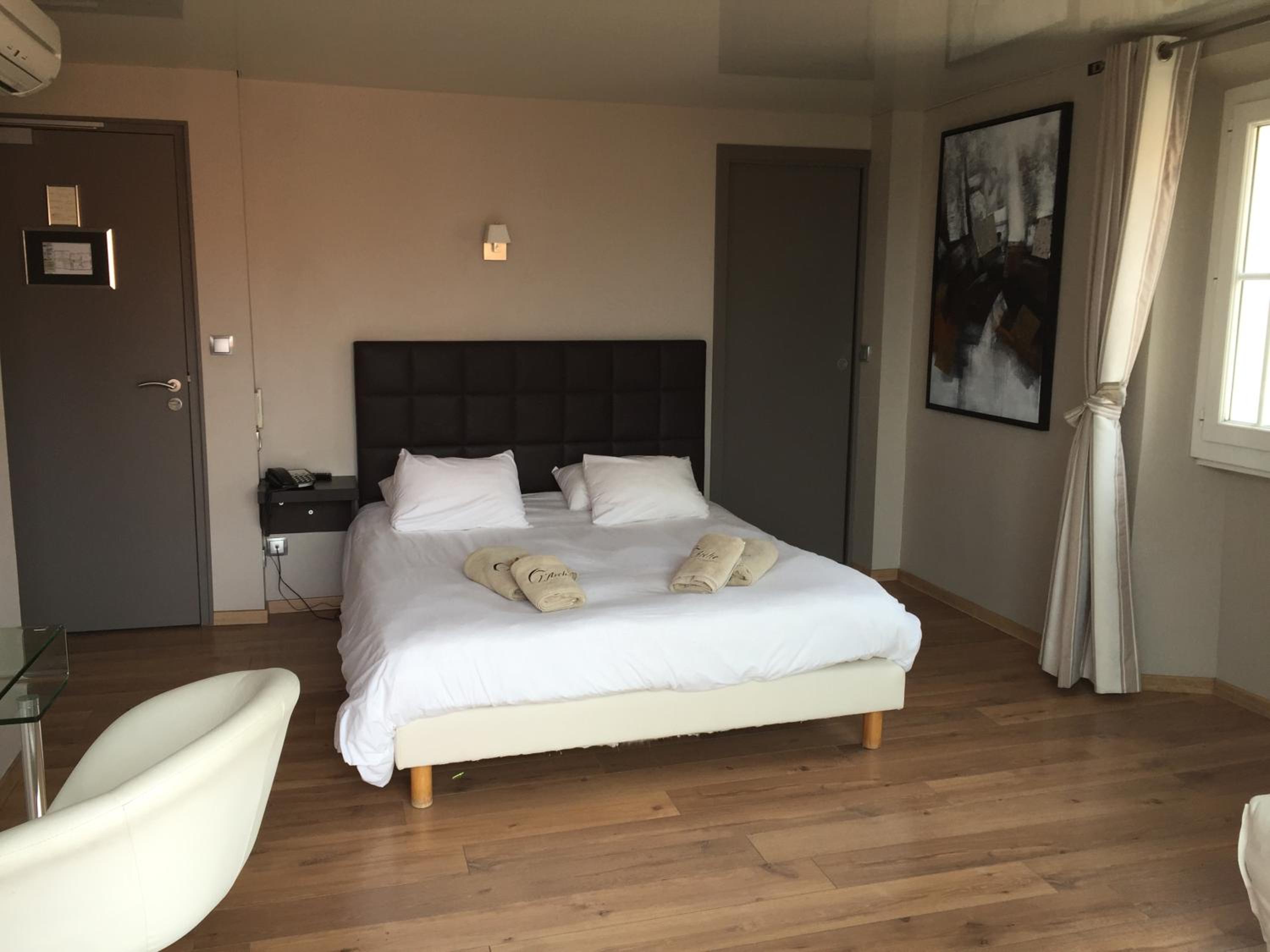 Each room at L'Arche de Porquerolles is thoughtfully designed with a wardrobe, a flat-screen TV, and a private bathroom. Select rooms even boast breathtaking sea views, ensuring a memorable stay.