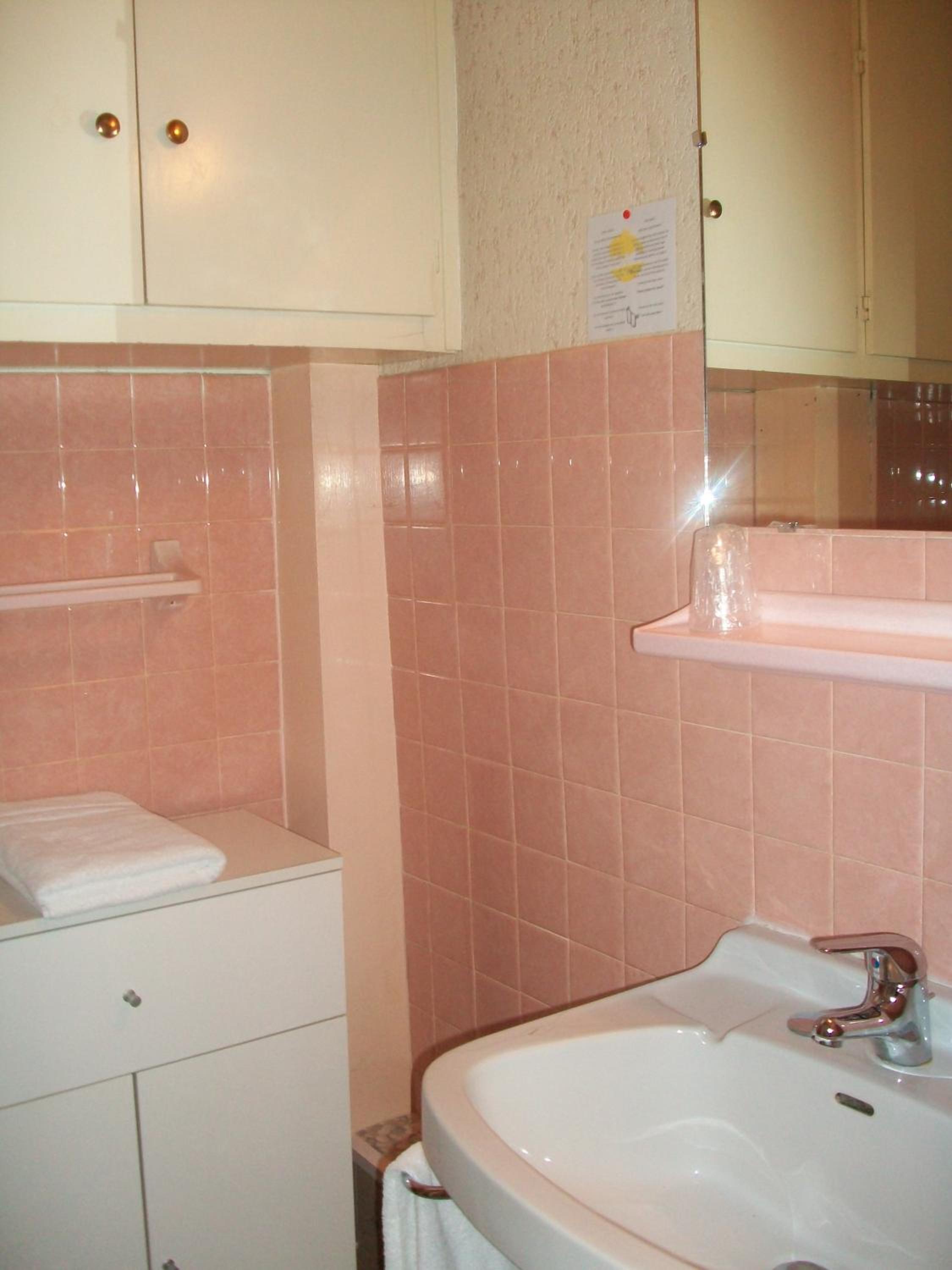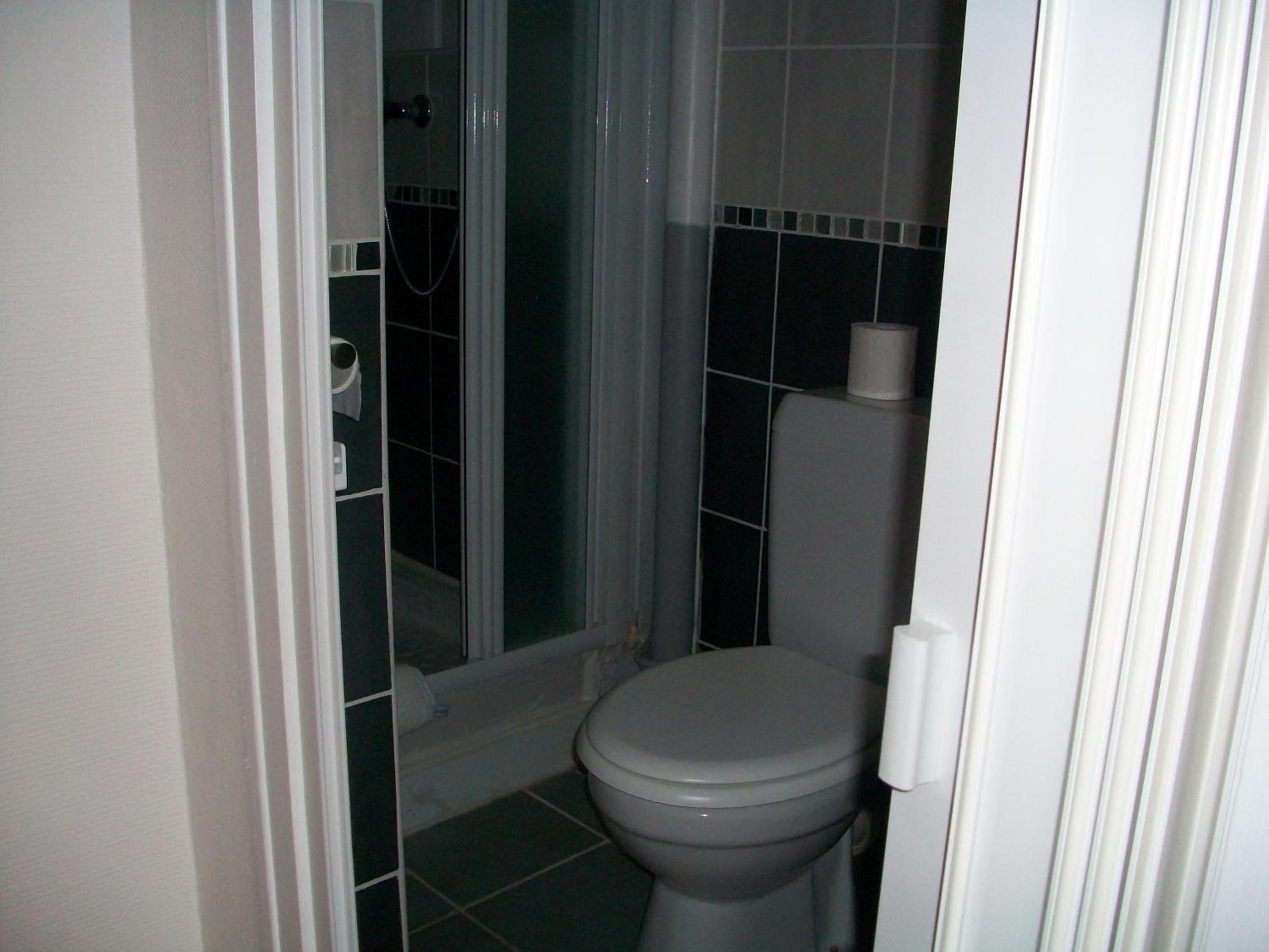 Although clean towels provided and very good shower, the ‘en suite’ bathroom was ‘shaved’ off the bedroom and therefore the ‘door’ was a flimsy folding (pleated) affair which left very little room for much movement in the bathroom itself and one was positively squashed in order to sit on the loo.