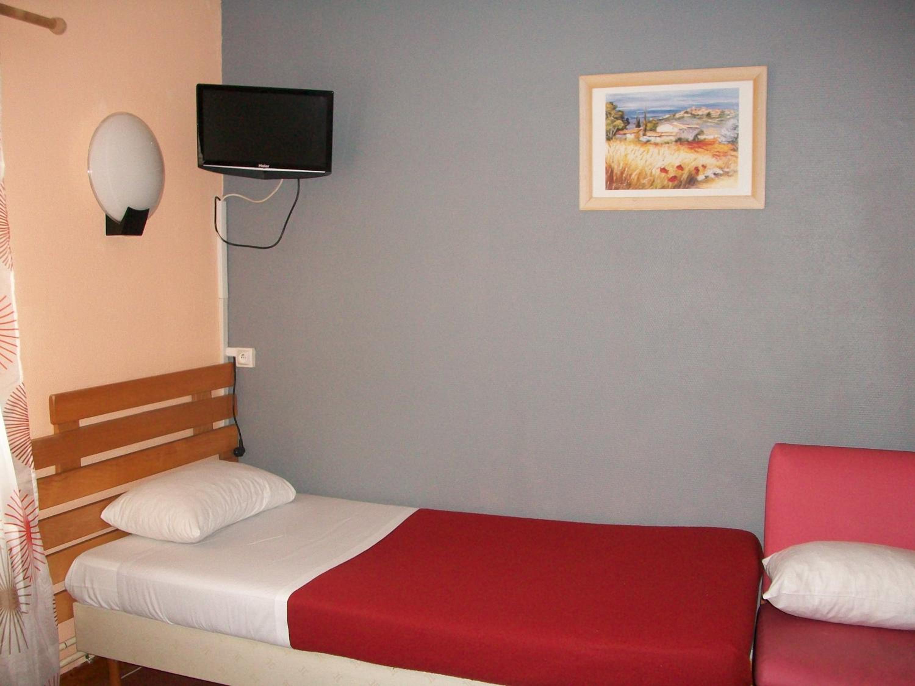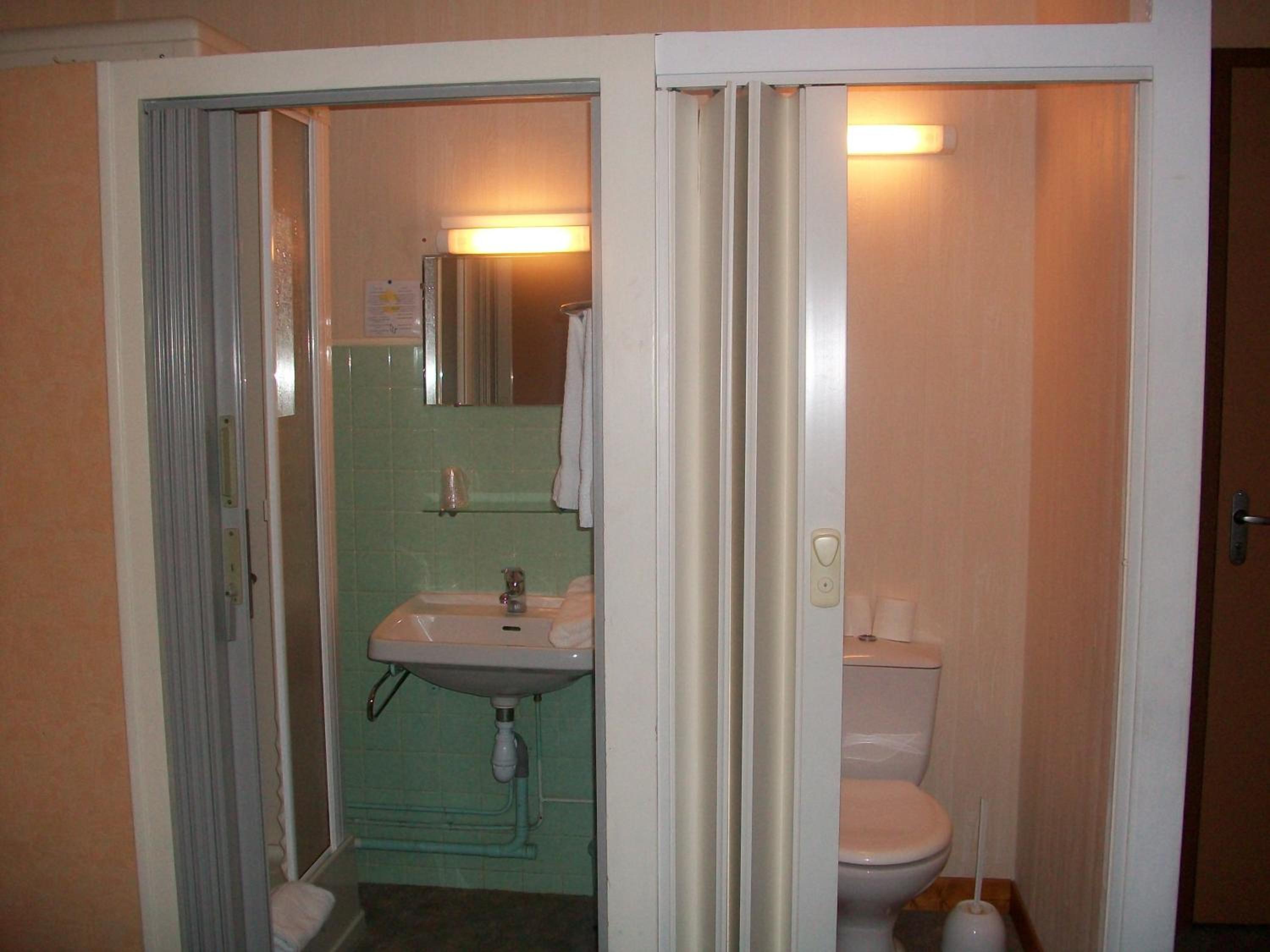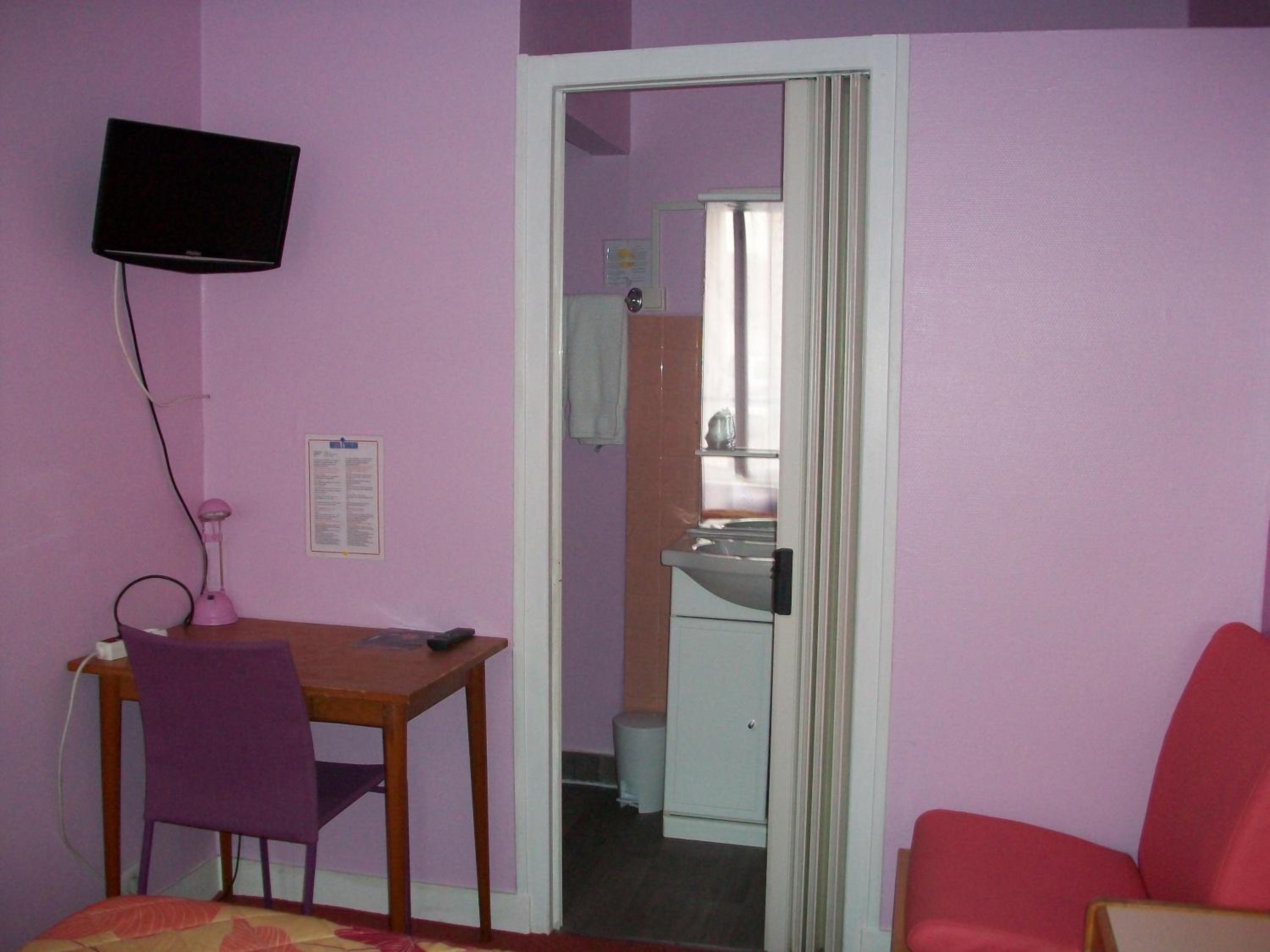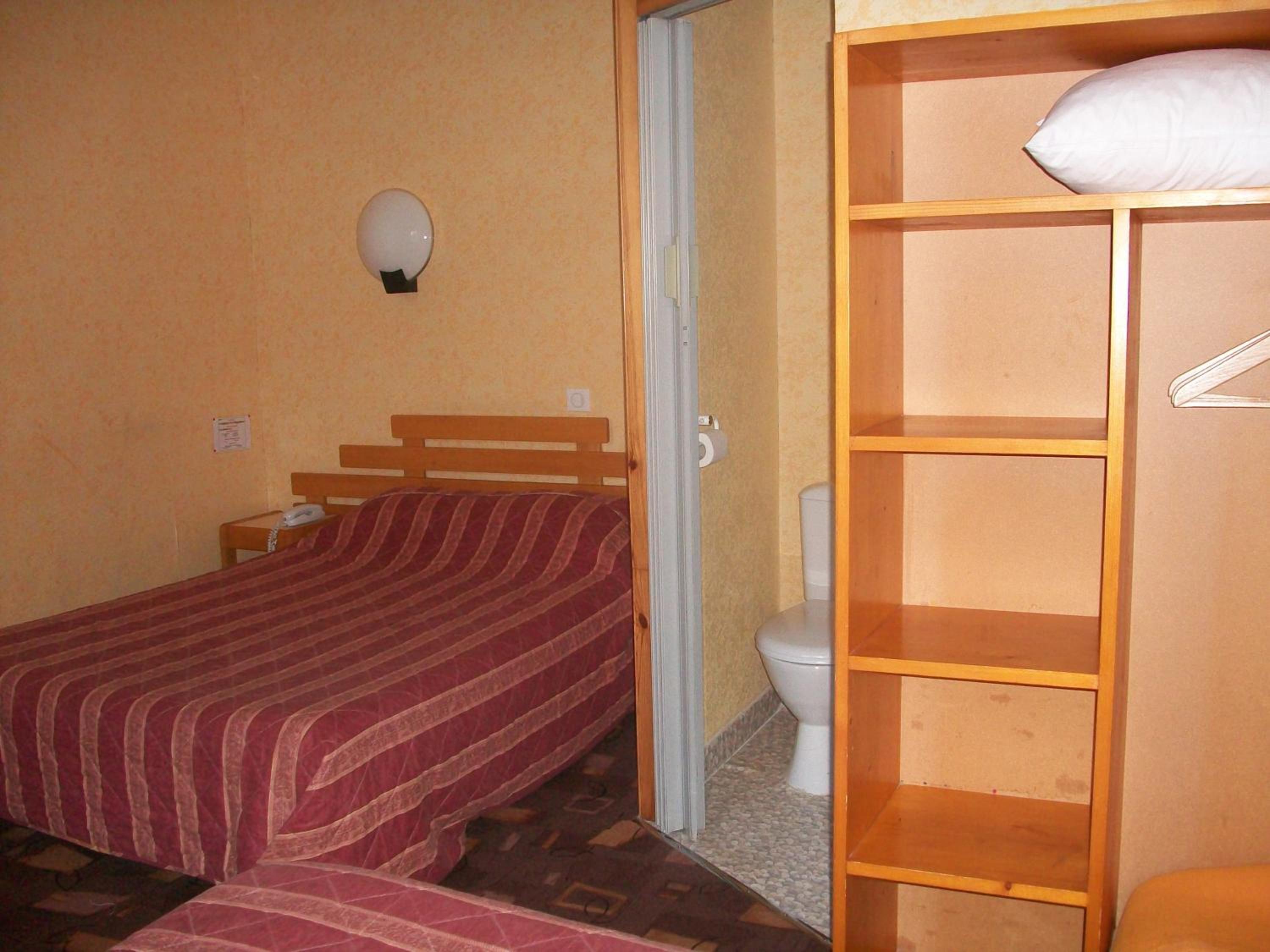 Each guest room is equipped with a TV featuring Canal+ channels, a telephone, and free Wi-Fi. The simple décor creates a cozy atmosphere, with some rooms even boasting a private bathroom for added convenience.