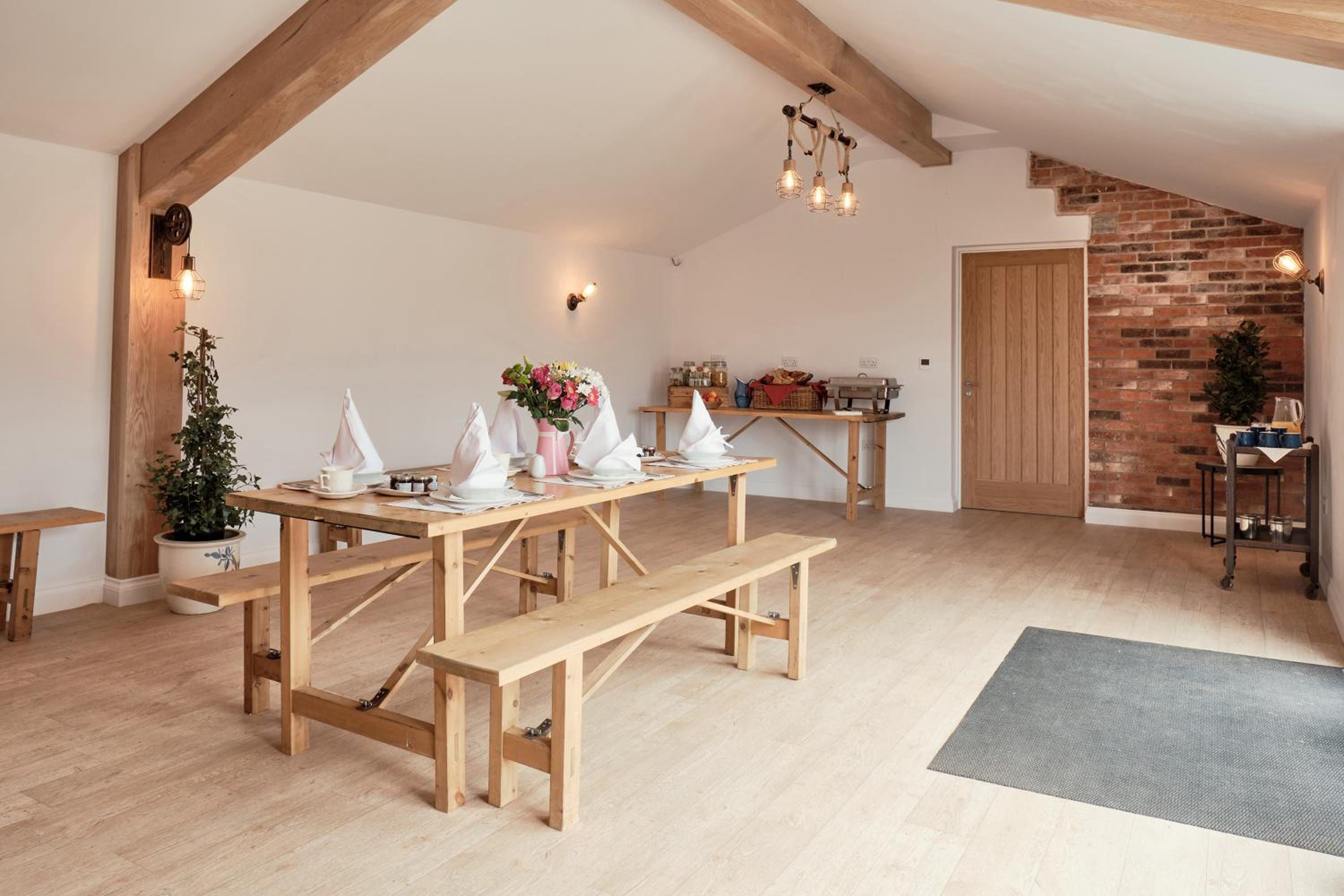This is a wedding venue which I had not realised as was looking for last minute accommodation. I would only stay if I was attending a function here. Was warm, small rooms, 1 window locked and other hard to open. Party shut down at midnight. Mattress for some reason was upside down. Had a wasp problem, can of spray would be a good idea in rooms & a teaspoon if you like to stir your hot drink.