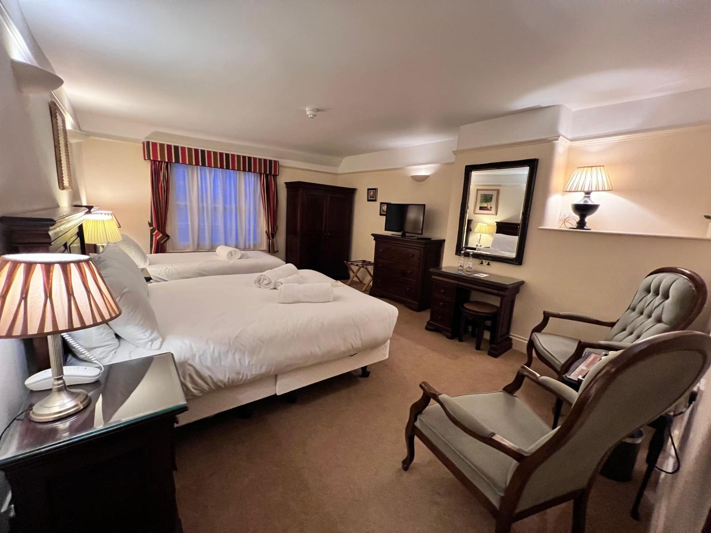 Location very good, old quirky hotel, room comfy warm clean spacious, large bathroom with choice of bath and shower, enjoyed a fantasic evening meal in hotel with Tuesday 2 for 1 deal on mains great deal for great meal, our breakfast was included enjoyed with plenty of choices, staff brilliant friendly and curtious,