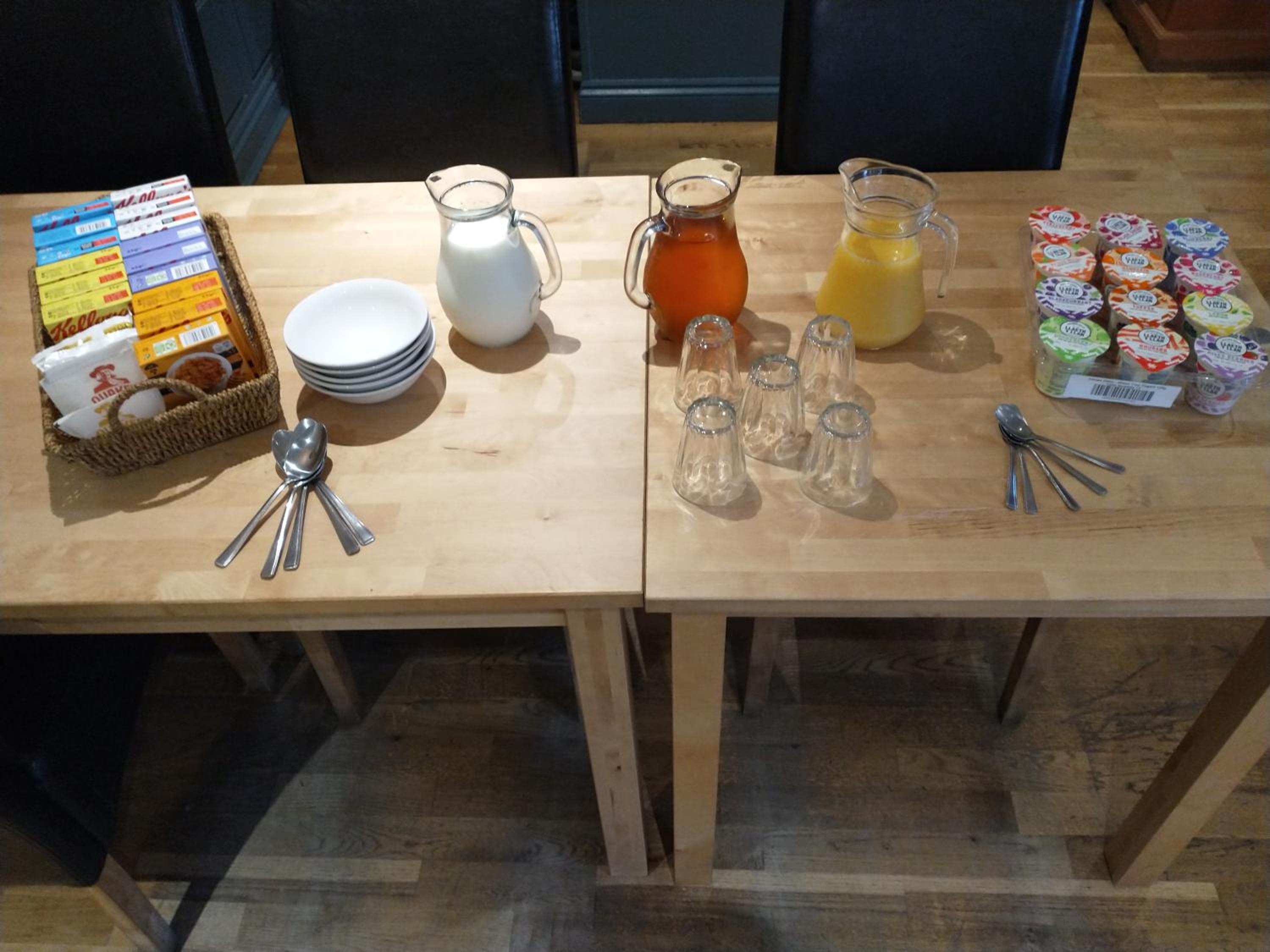 Excellent hot breakfast cooked to order. Juices, cereals and hot drinks.