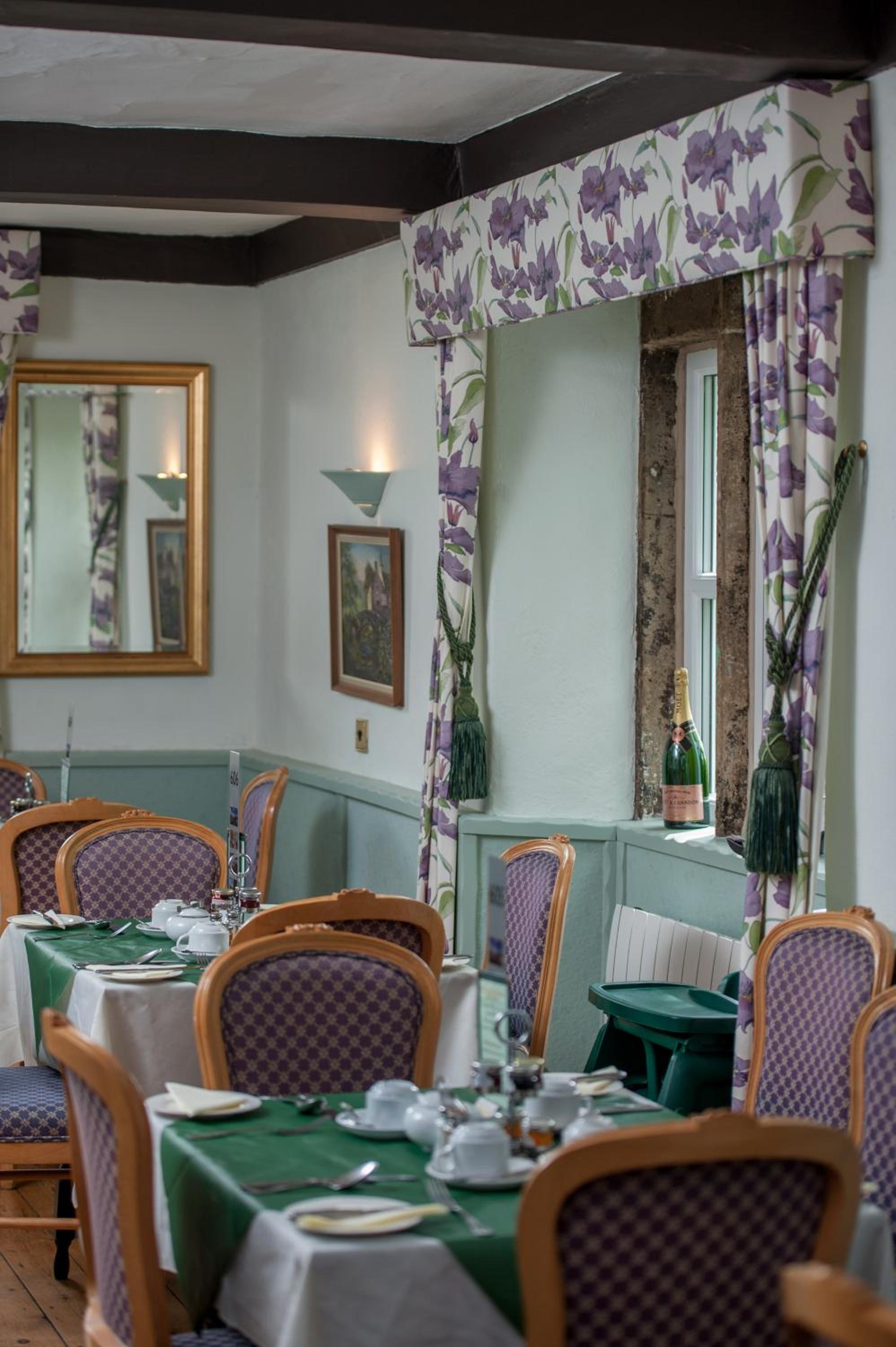 Excellent home cooked breakfast and dinner. Welcoming fires. Friendly and helpful staff. Car park. Village with character.