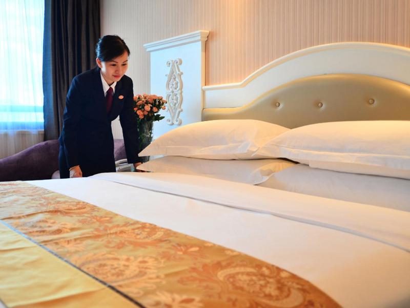The facility provides a variety choices of breakfast buffets to suit different eating backgrounds guests. Traditional Chinese breakfast and some western breakfast, but no bacon and sausage. The room provided everything we needed. It was surprised that the facility provided self service laundry for free. The room is clean. The carpet is a little bit worn out. The facility is not smoking free.