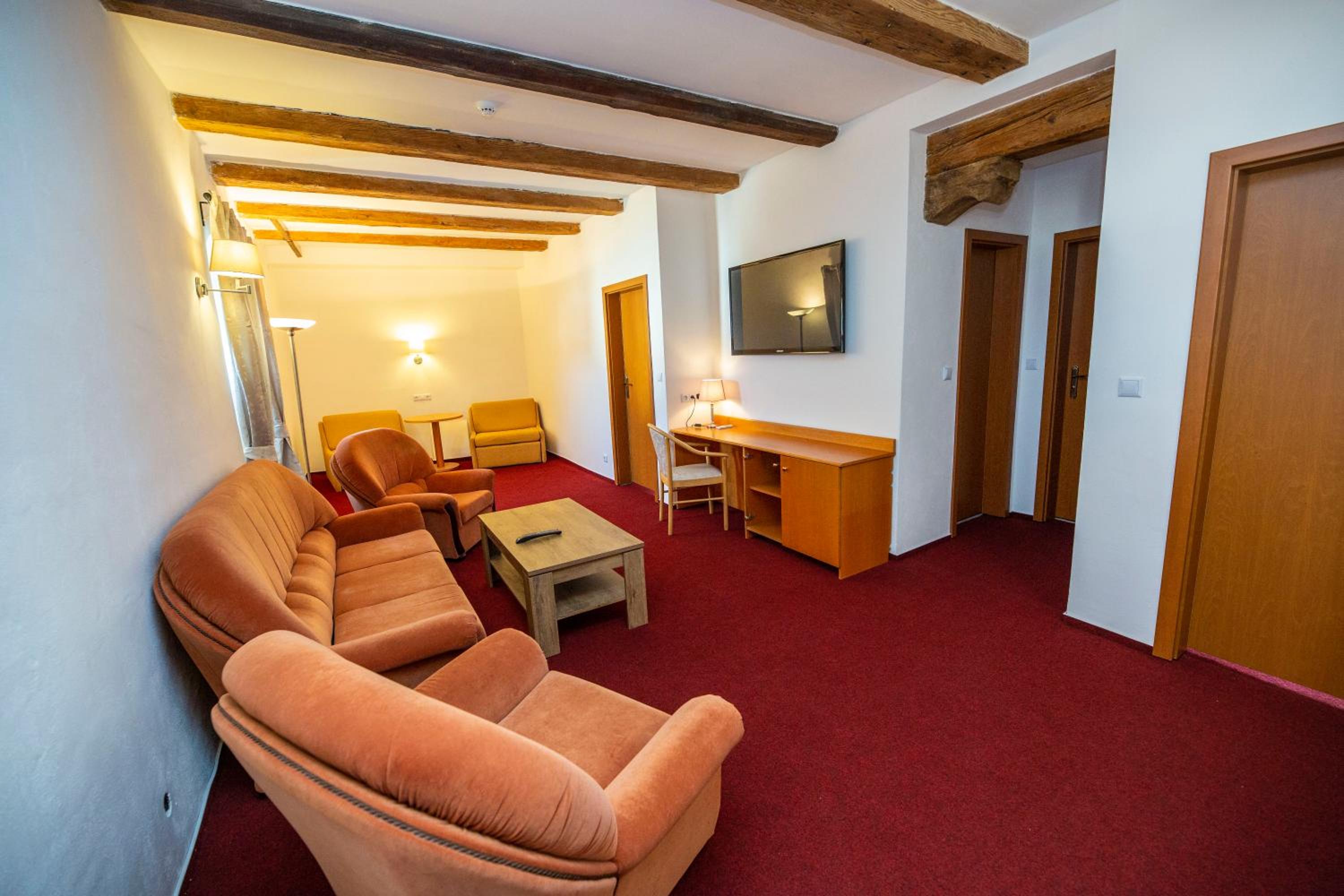 Prostorný obývací pokoj, příjemně prostředí, hezké wellness, milá obsluha.