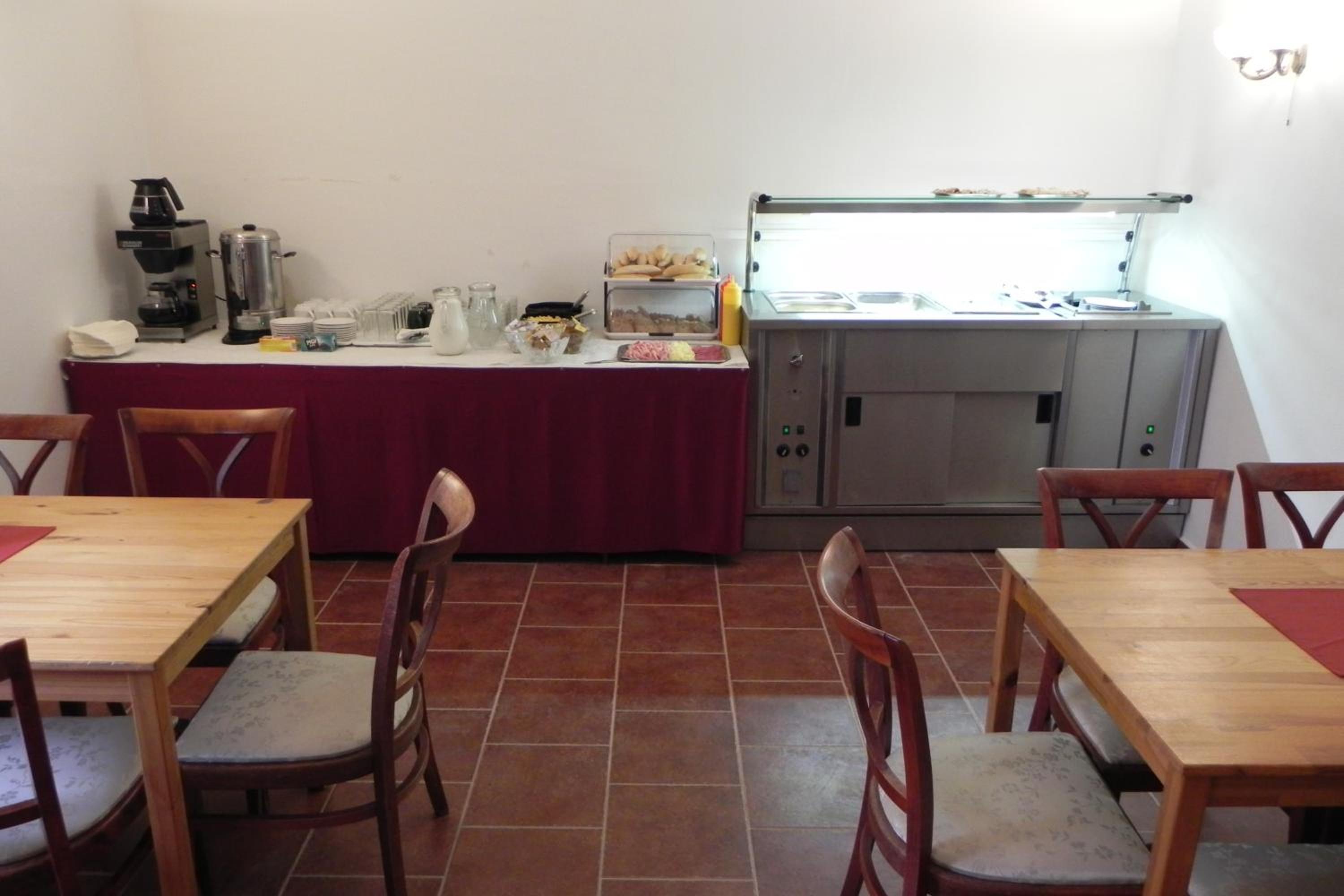 Prostor určený na snídaně by si zasloužil opravit stěny a vymalovat