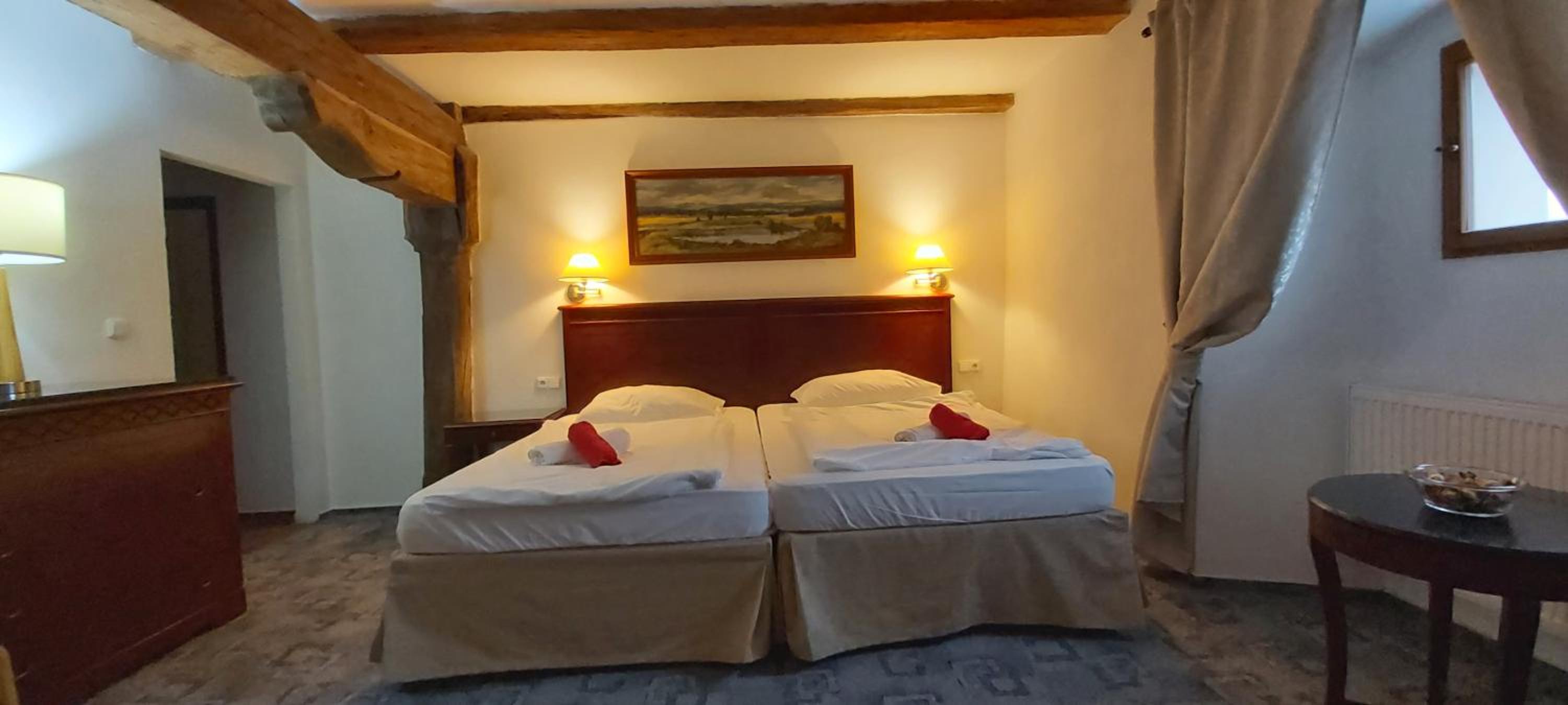 Štýlovo zariadena izba, reštaurácia, prvý pocit veľmi fajn..