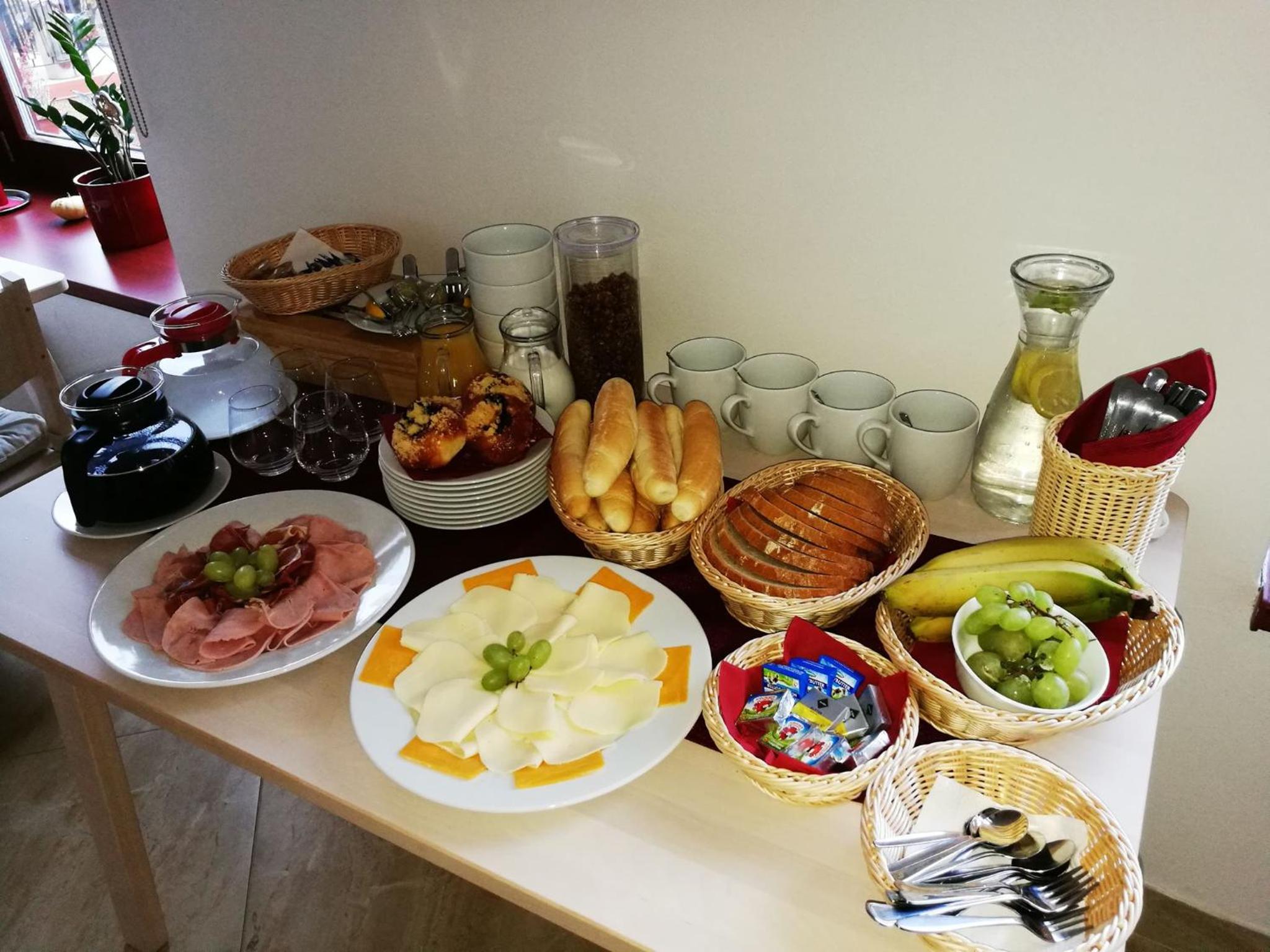 Snídaně v podstatě na míru, klasika švédský stůl, teplá snidaně na přání. Personál skvělý, paní nam dokonce očistila auto od sněhu, který napadl v noci.