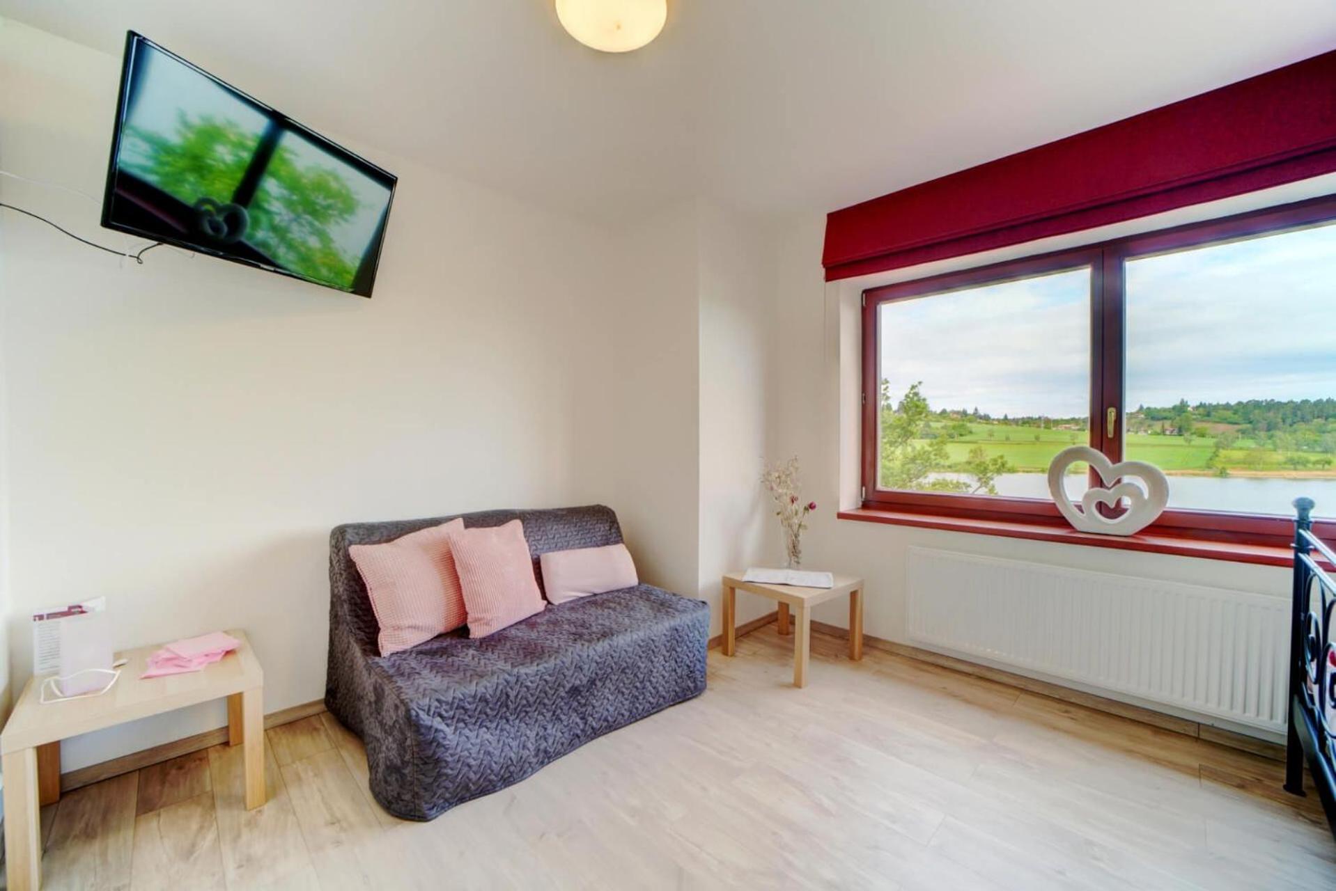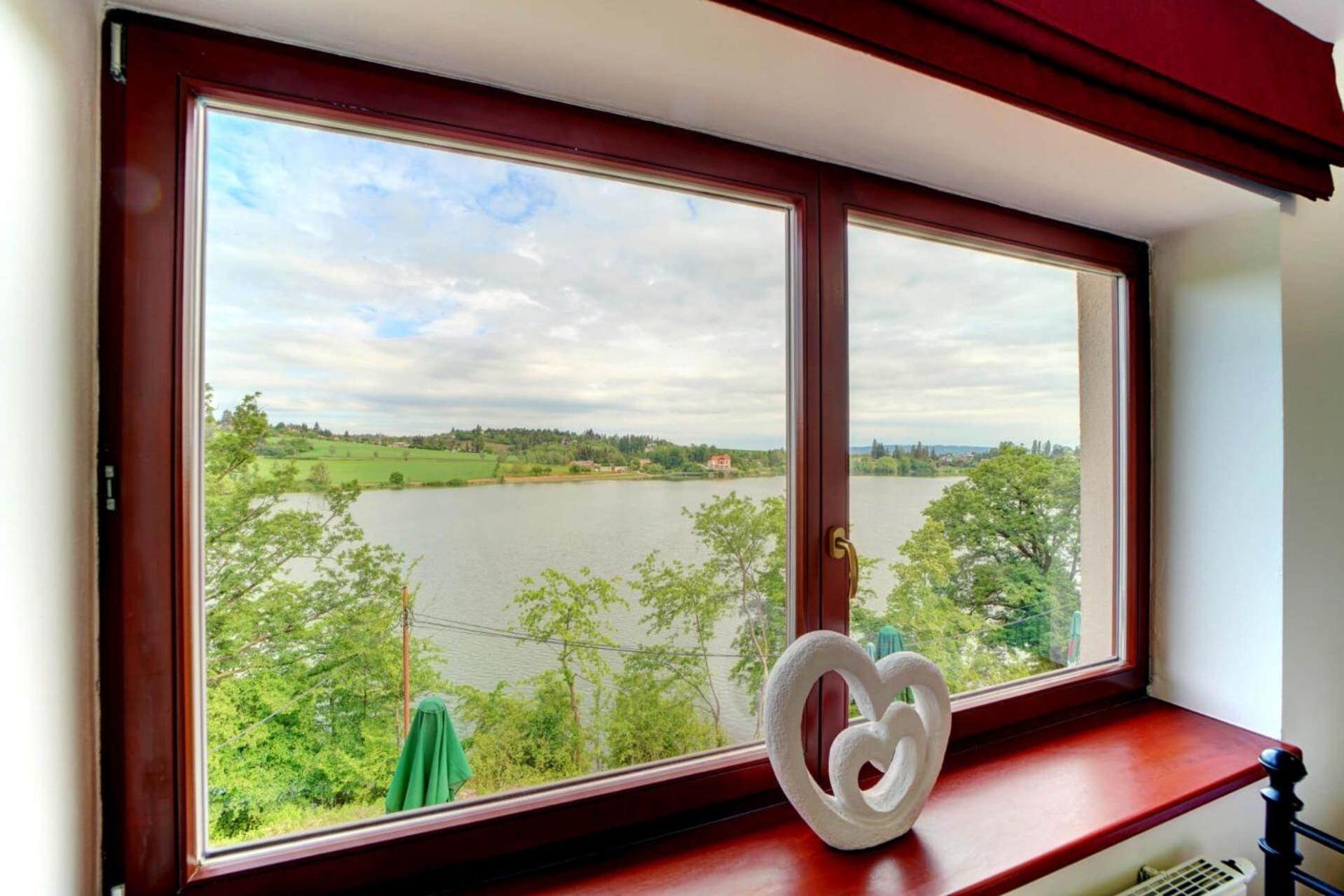 Z okna krásný výhled na přehradu.