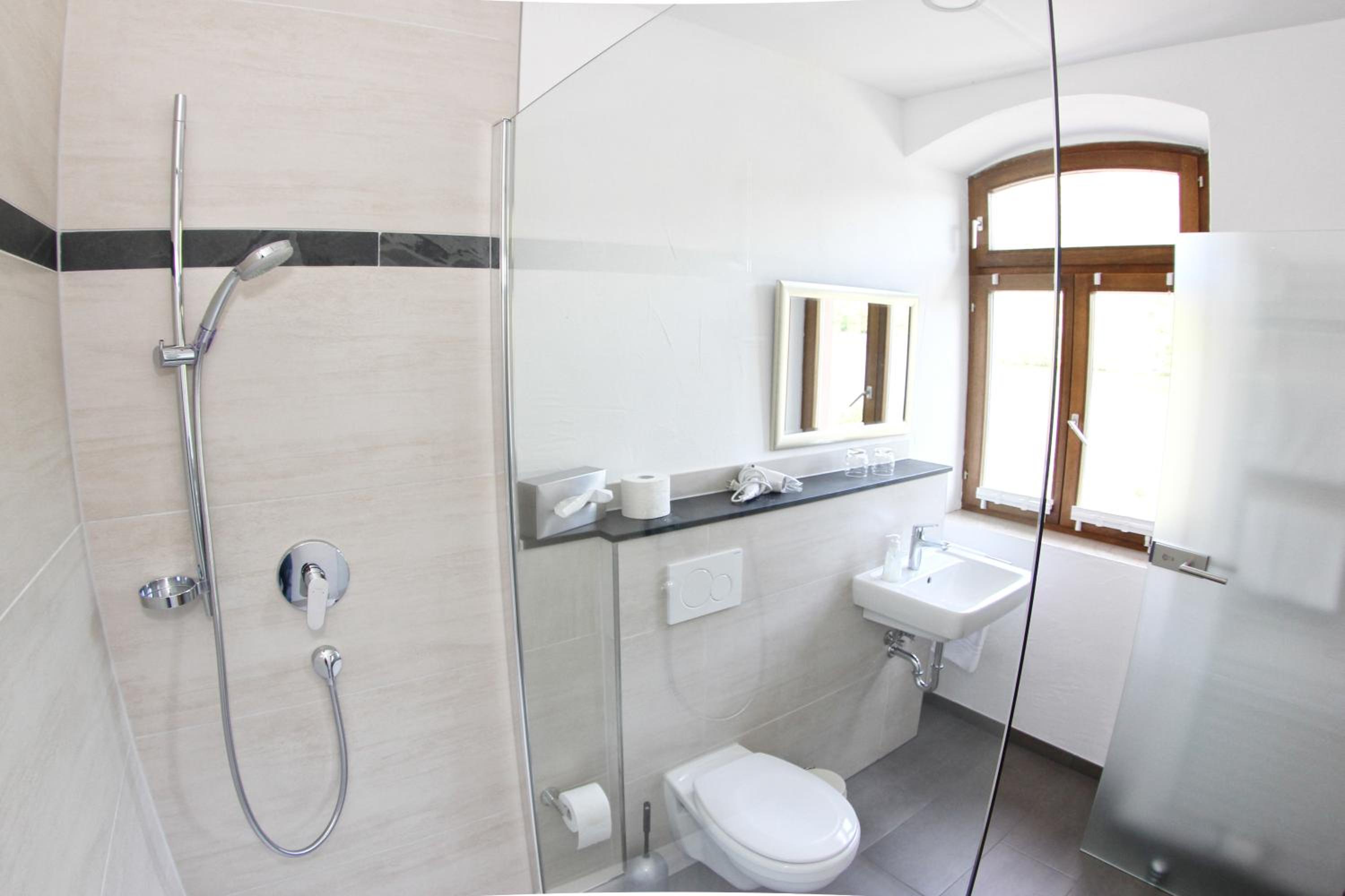 Die Zimmer sind mit guten Betten und einem ganz neuem modernen Badezimmer ausgestattet.