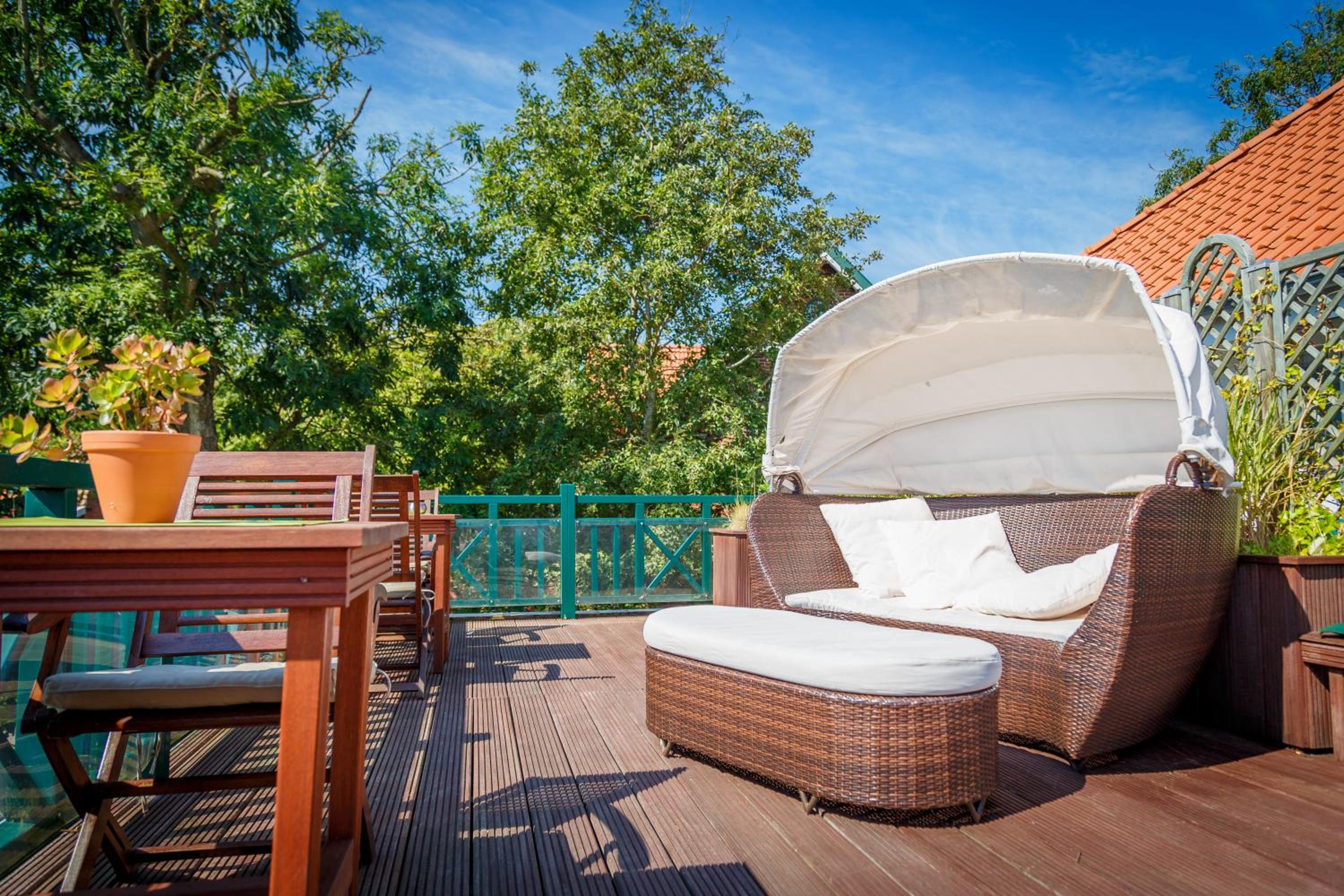Charming Garden and Rooftop Terrace: Enjoy a peaceful stay surrounded by nature at Künstlerherberge's charming garden and rooftop terrace with sun loungers.