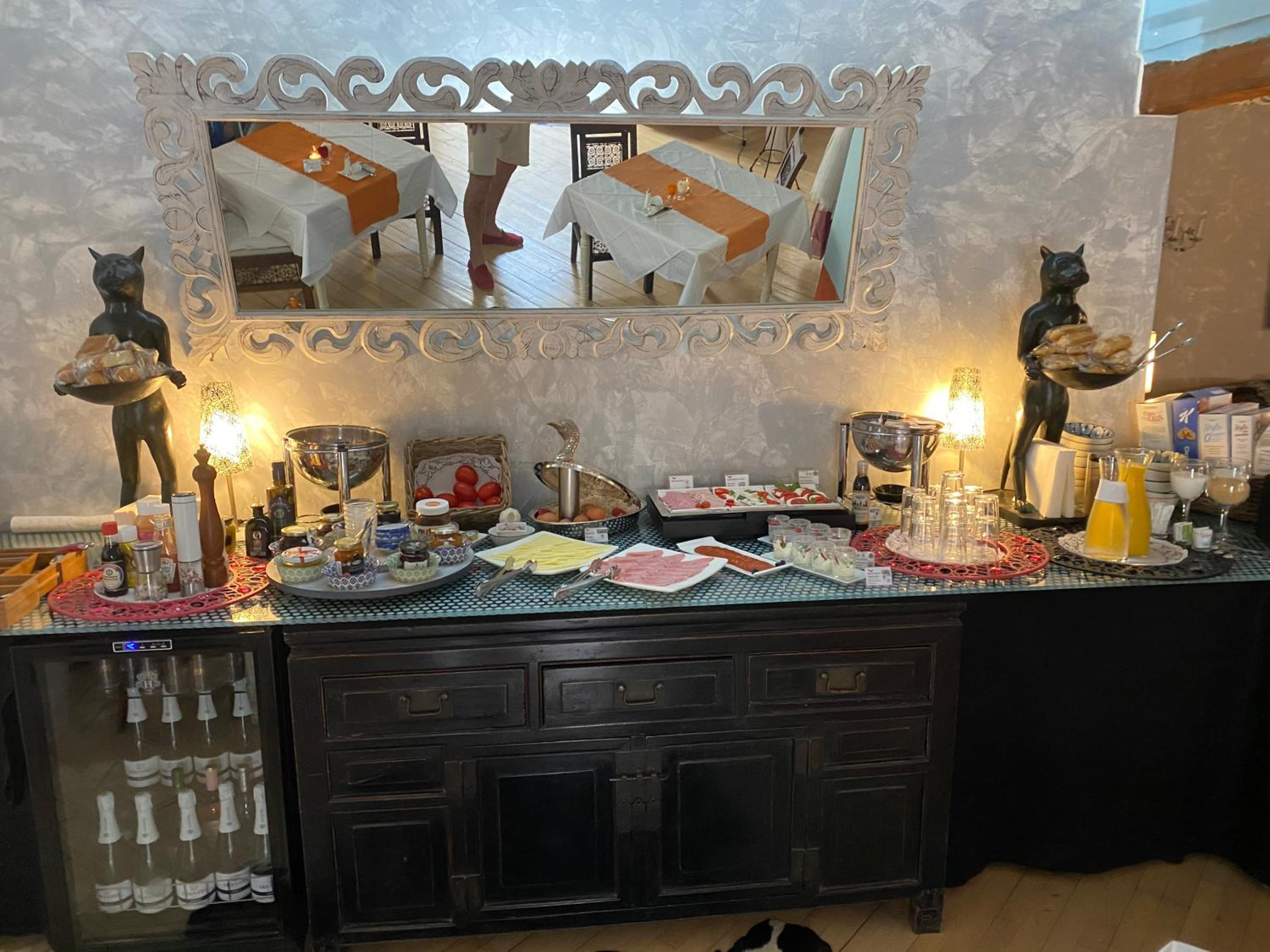 El desayuno buffet era increíble, con una gran variedad de productos frescos y caseros elaborados a diario. Todo colocado con gran esmero y detalle, y música de ópera de fondo.