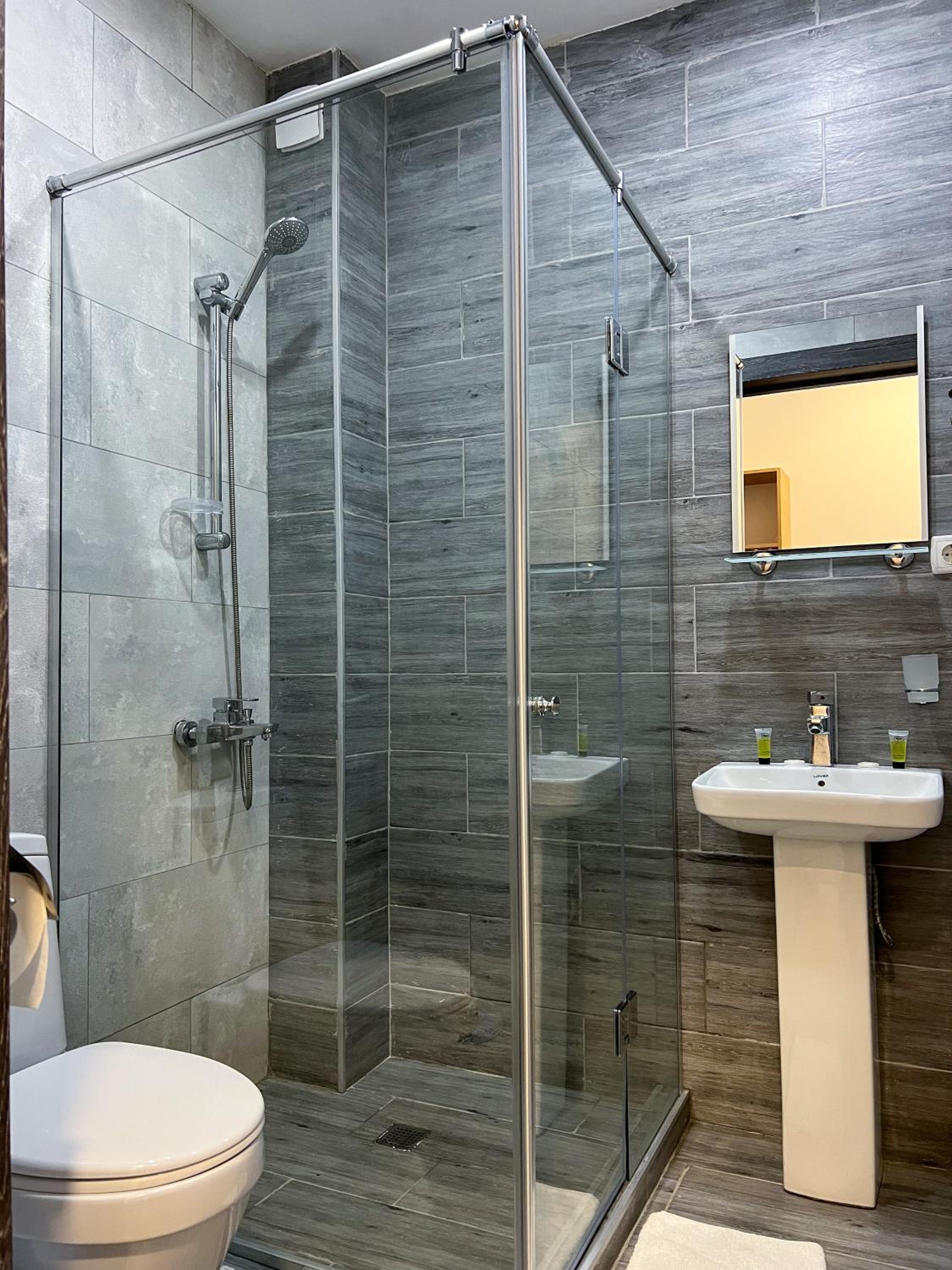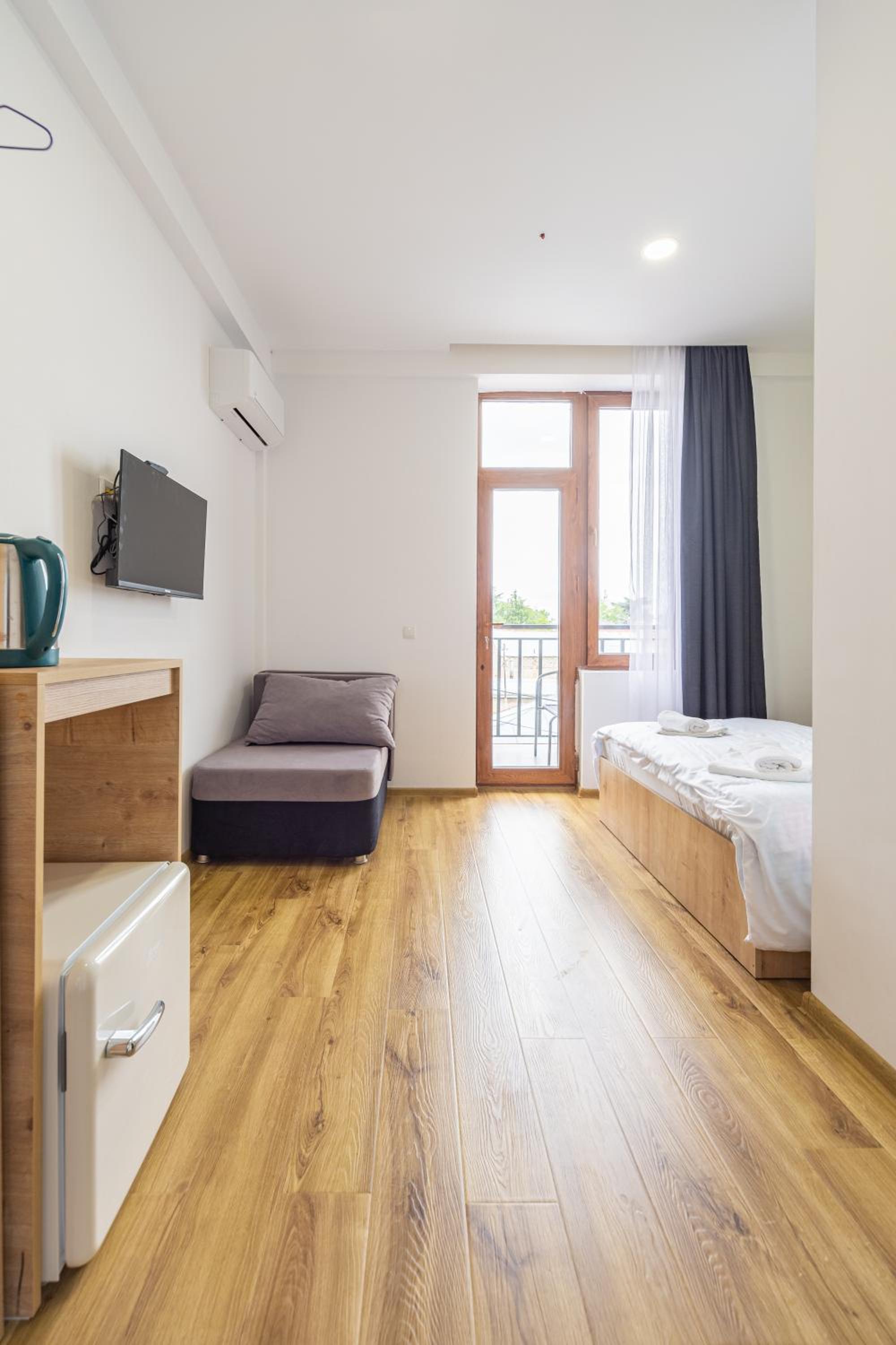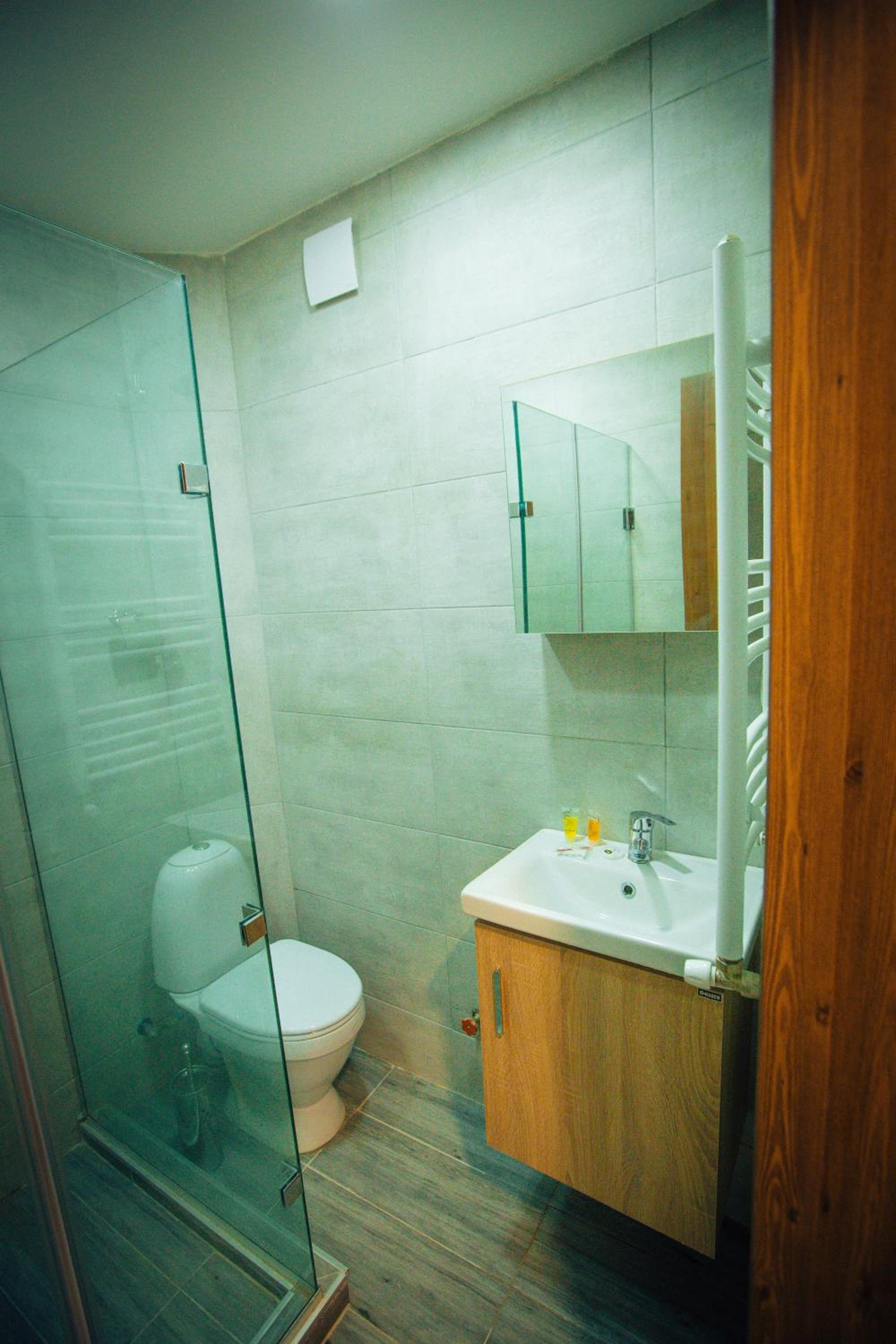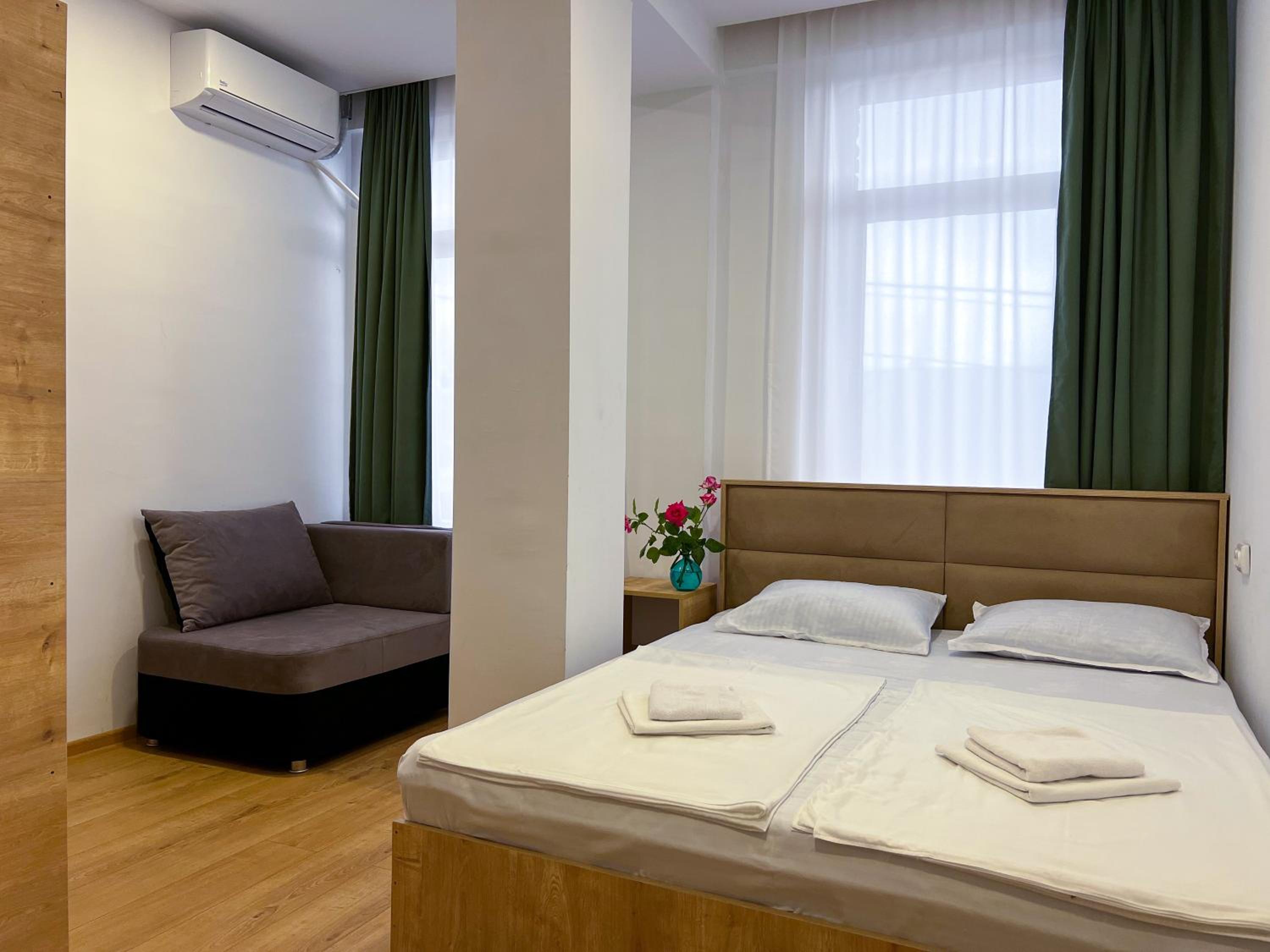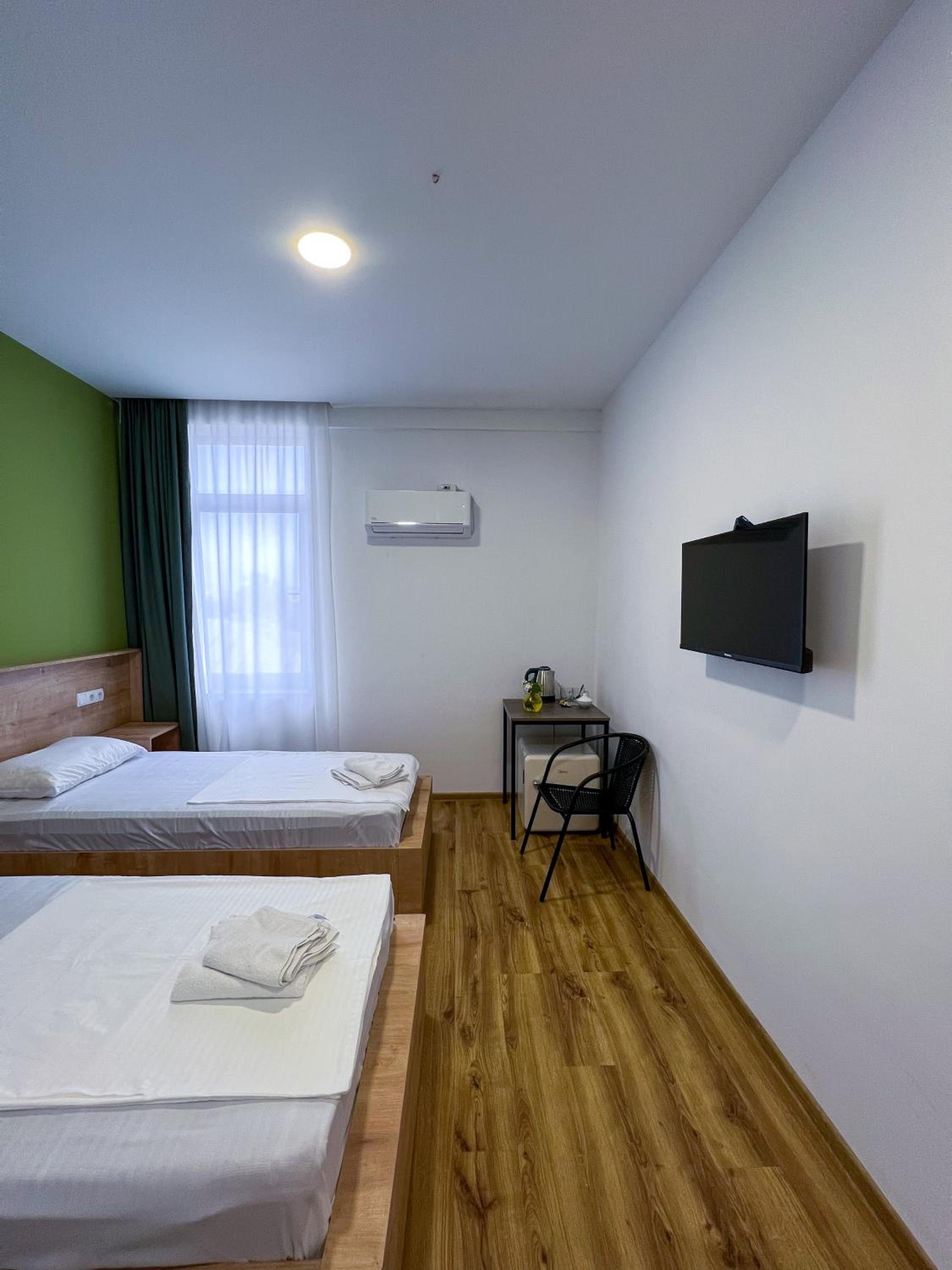 Аккуратный номер, красивый вид из окна на город и горы, замечательная девушка на ресепшене и радушный прием