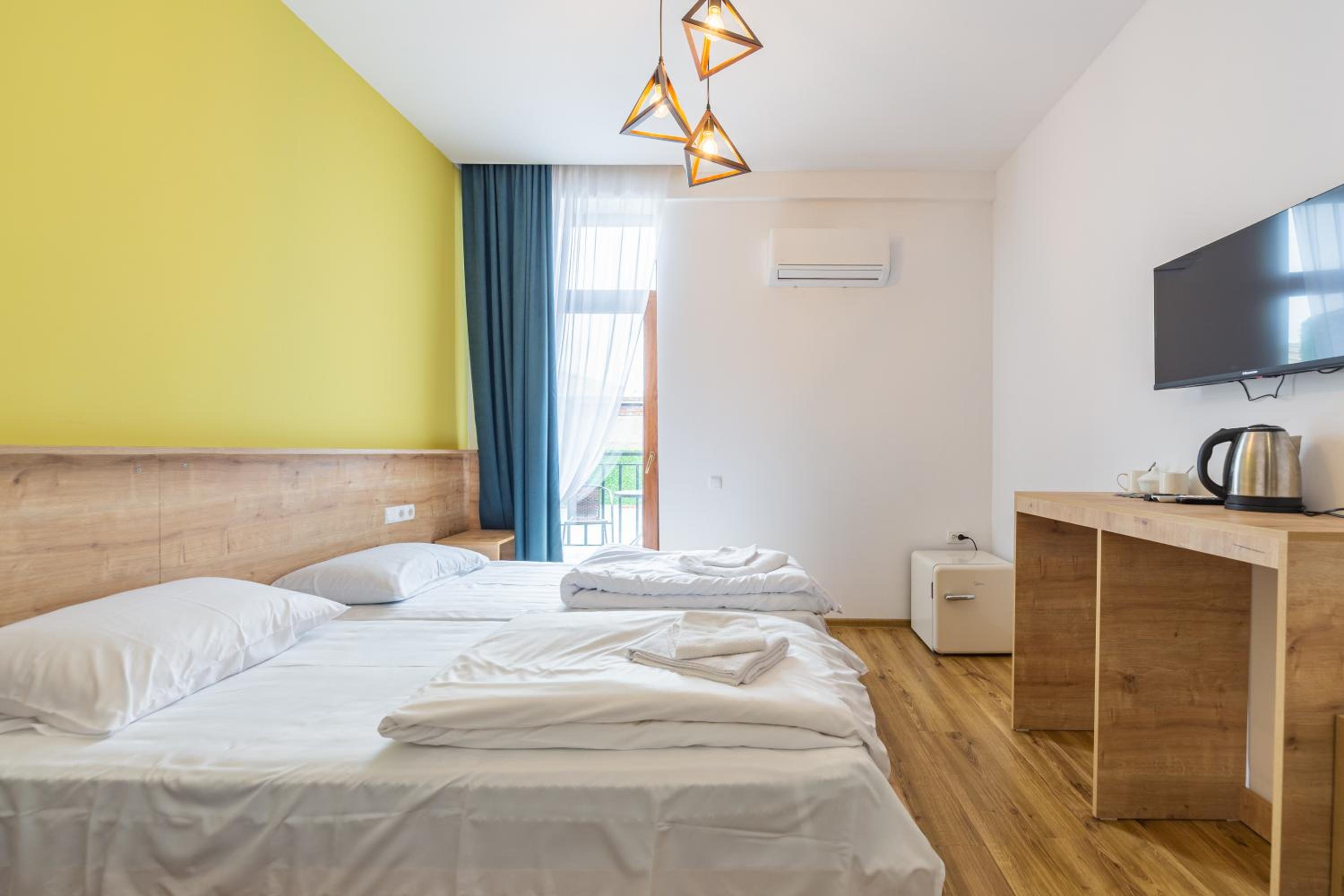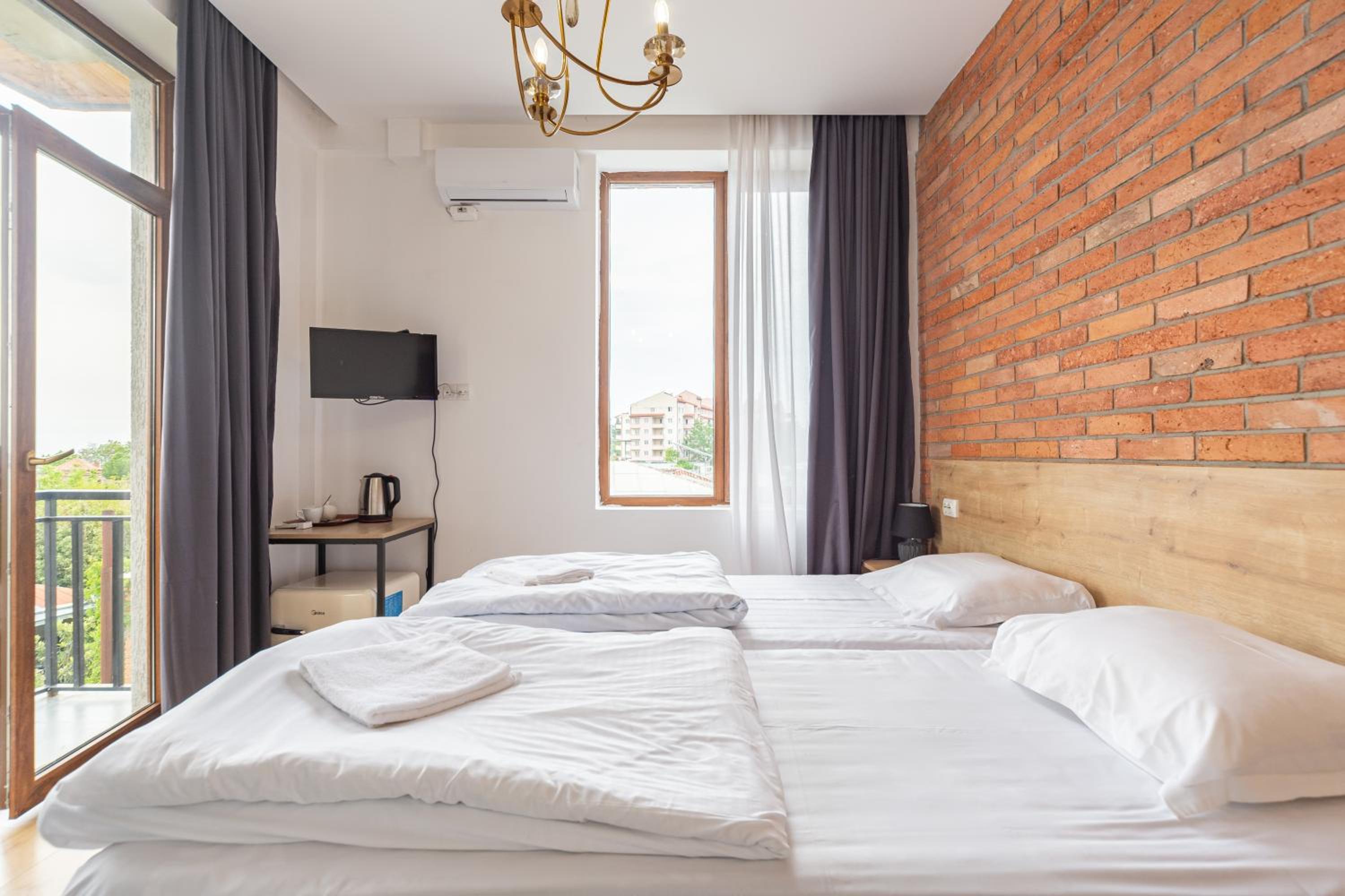 Located in Telavi, Hotel mia Telavi offers a serene retreat with modern amenities and a historic touch. Comfort and Convenience can be found in every room, equipped with air conditioning, flat-screen TV, and free WiFi. Guests can unwind in the garden or on the terrace, and explore nearby attractions like King Erekle II Palace and Gremi Citadel. Exceptional Service awaits with 24-hour front desk assistance and room service. Whether you're visiting the Ilia Chavchavadze State Museum or simply relaxing in the shared lounge, Hotel mia Telavi promises a memorable stay. Book now to experience the perfect blend of comfort and culture.