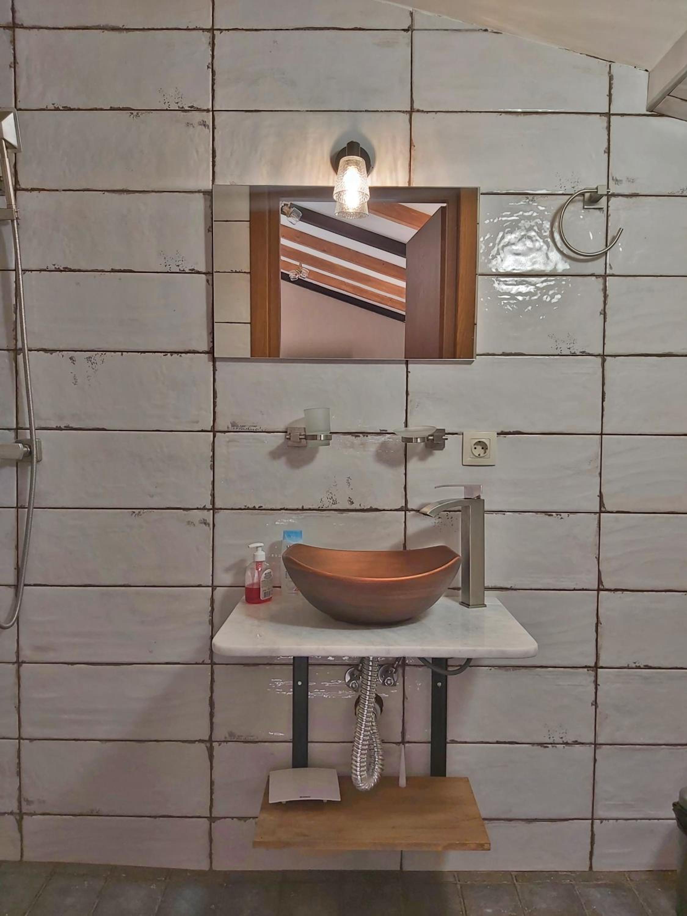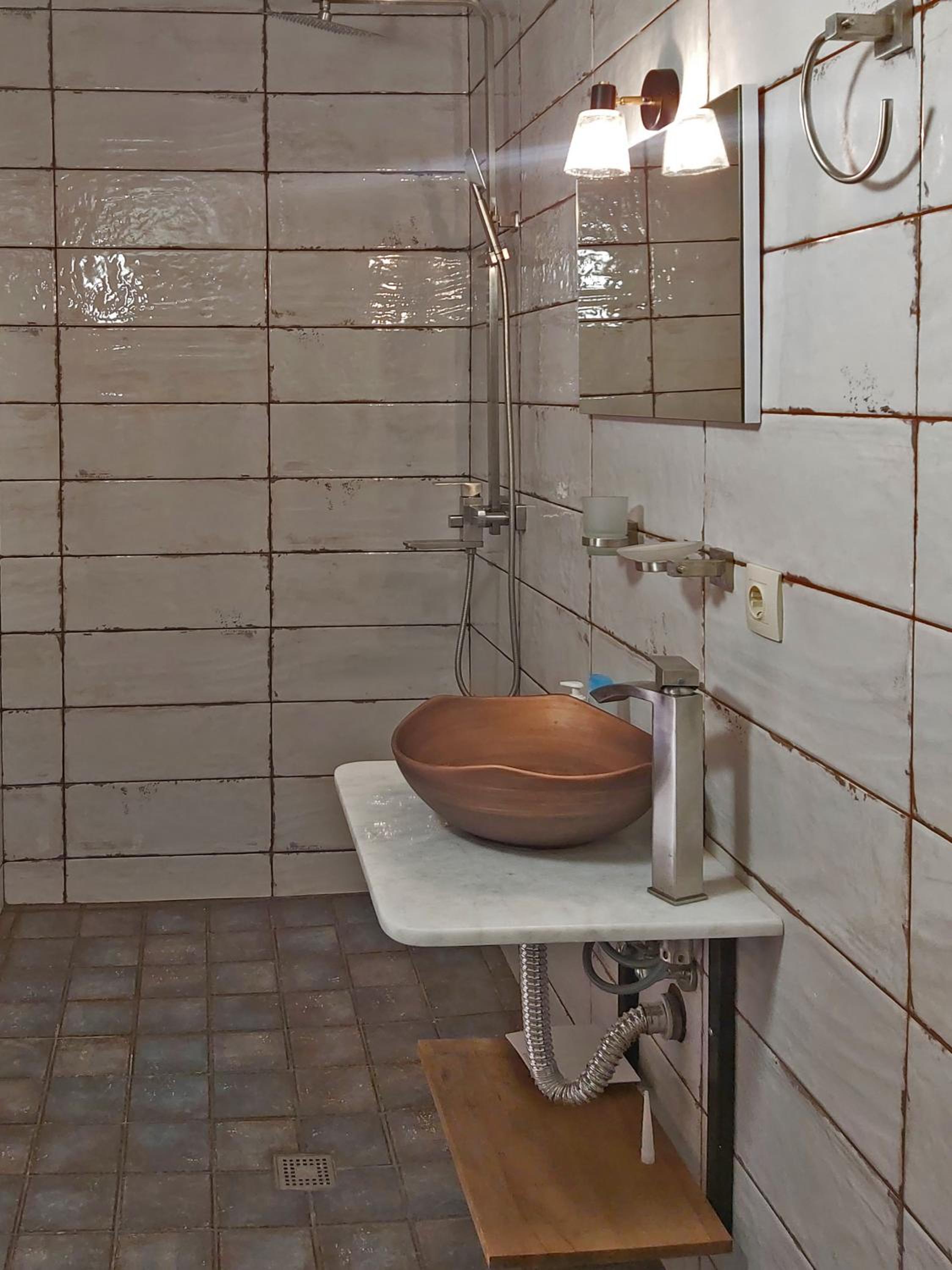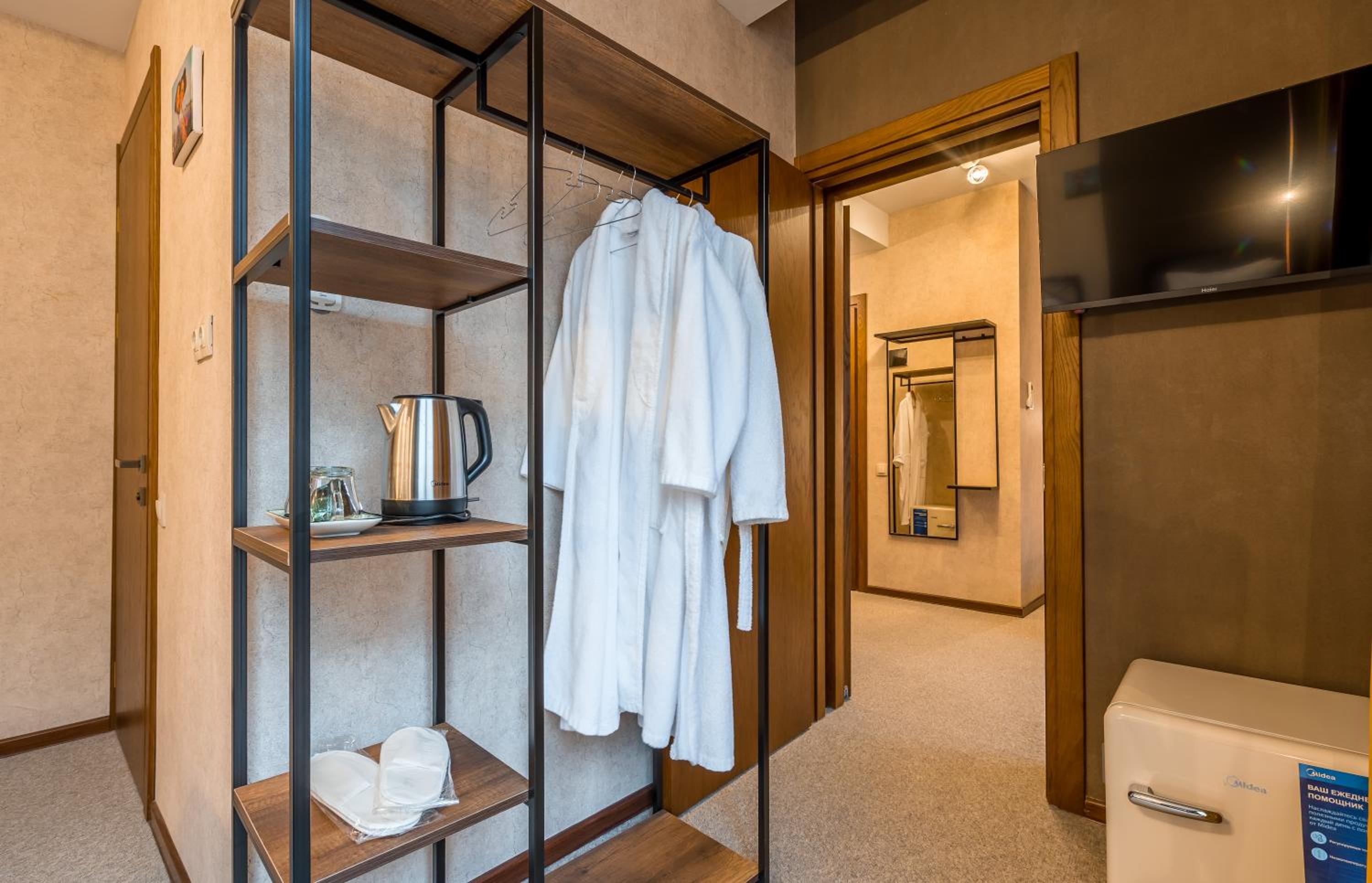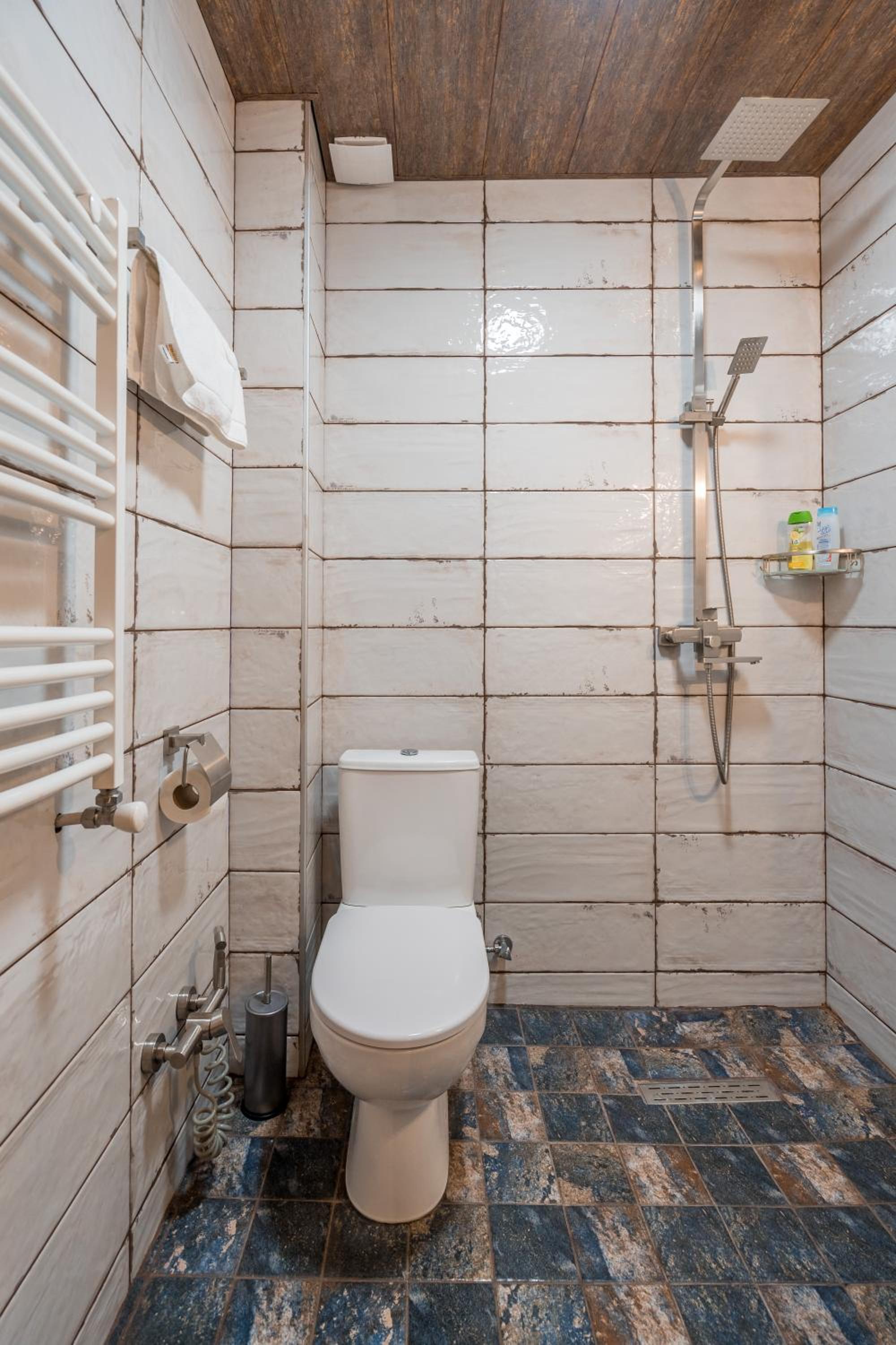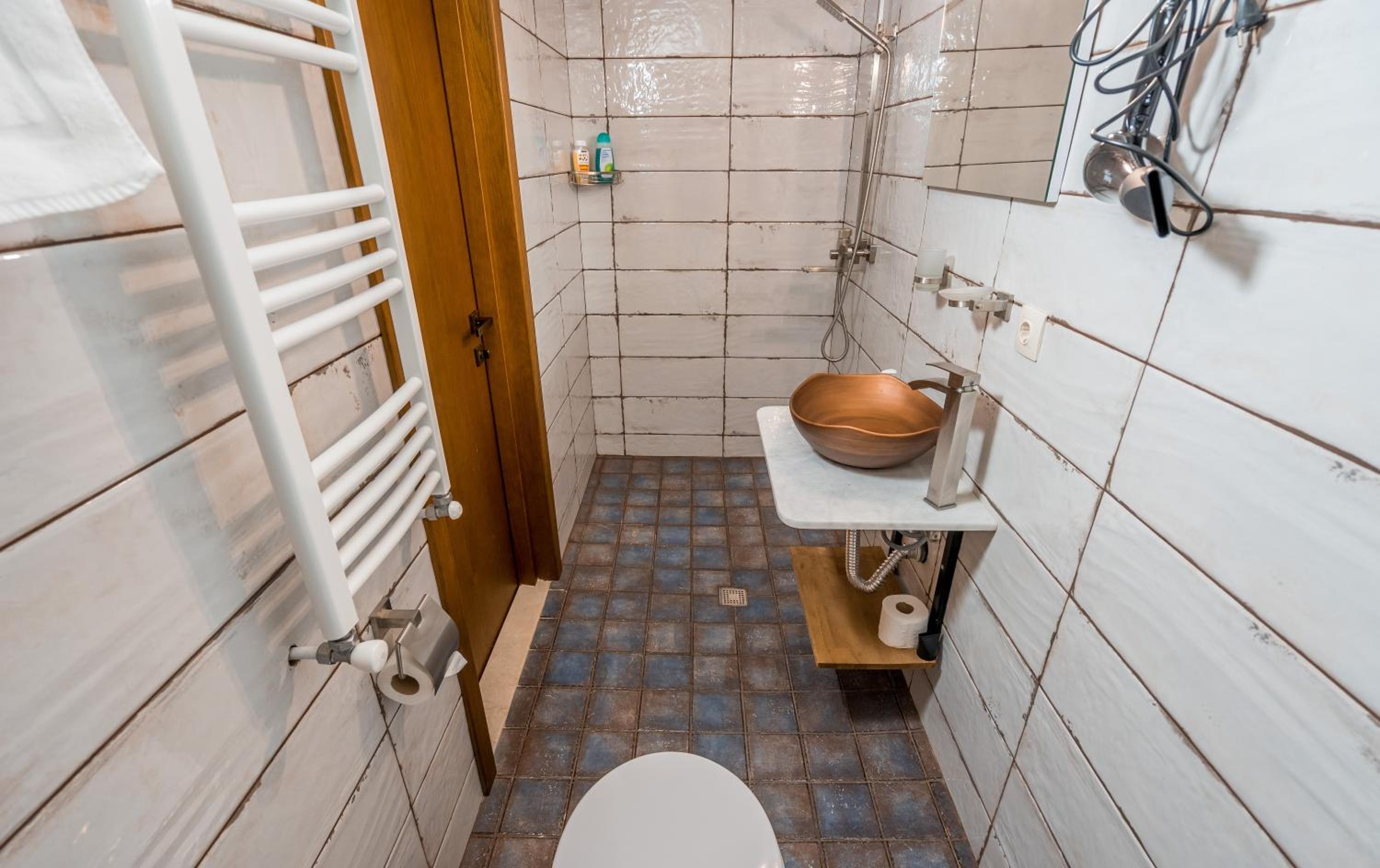 Единственный минус - это странное решение душевой кабины без какого либо ограждения. После душа весь санузел в воде. Берите резиновые шлепки. Потом в туалет ходть скользко и мокро