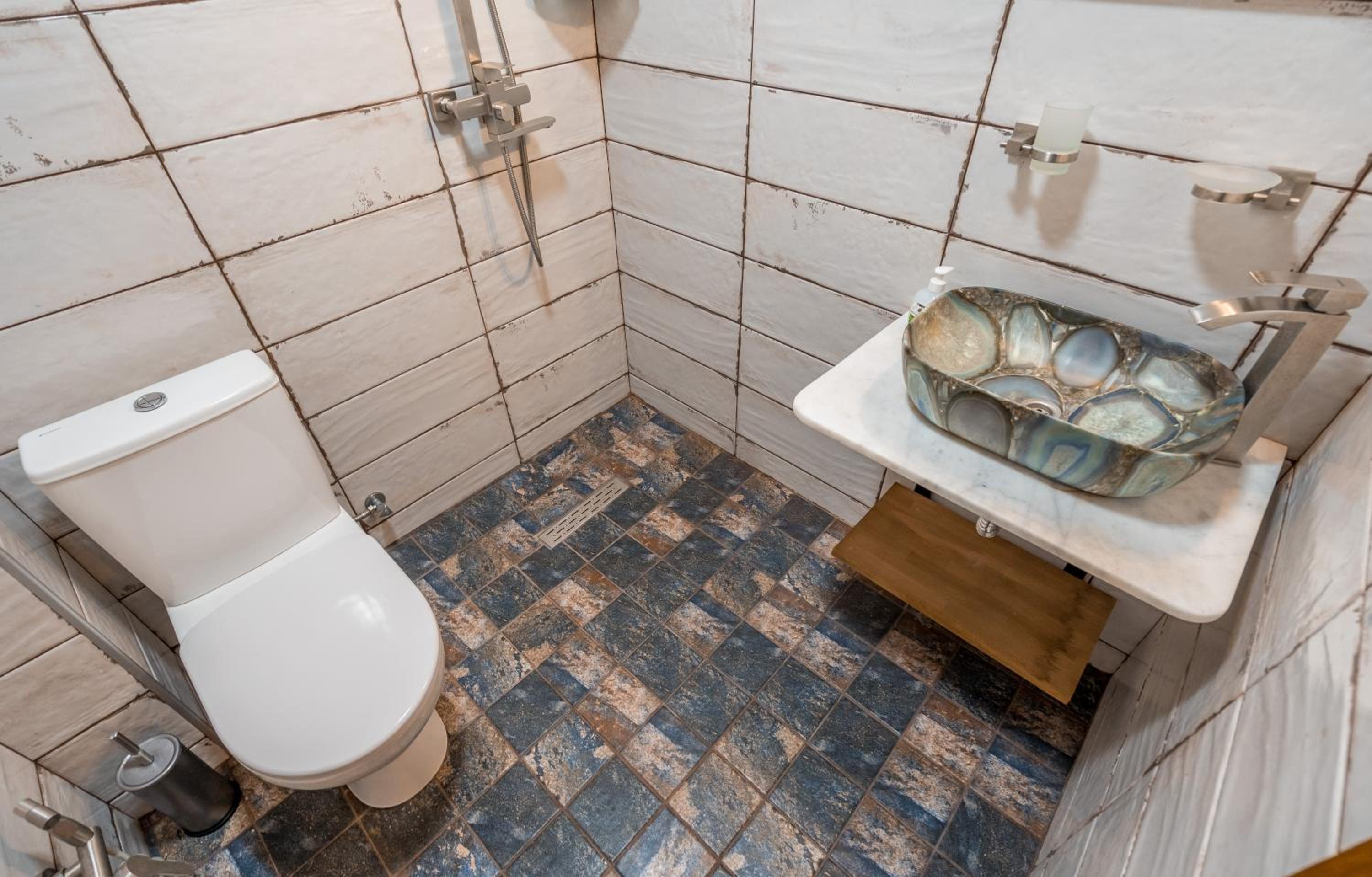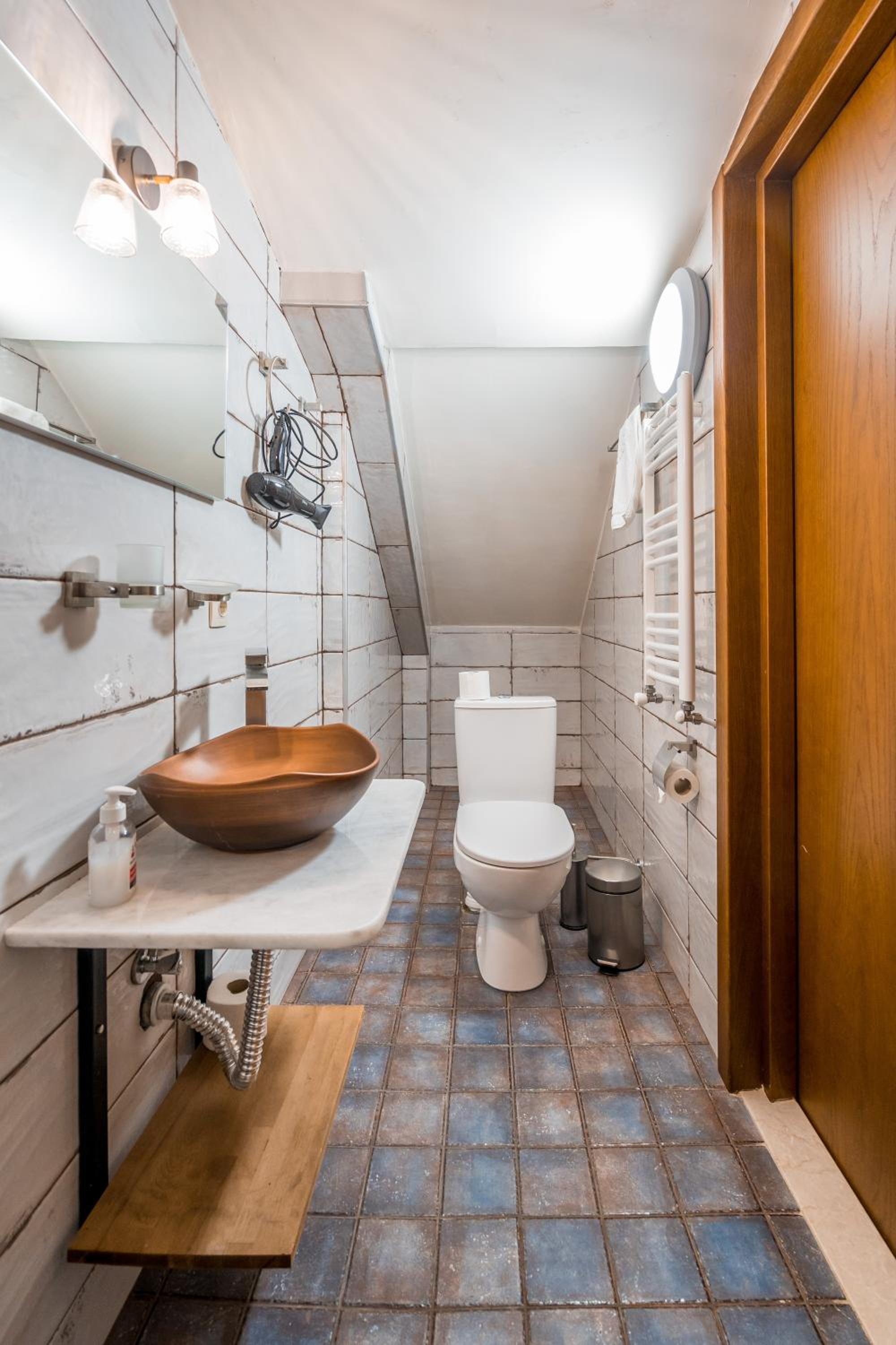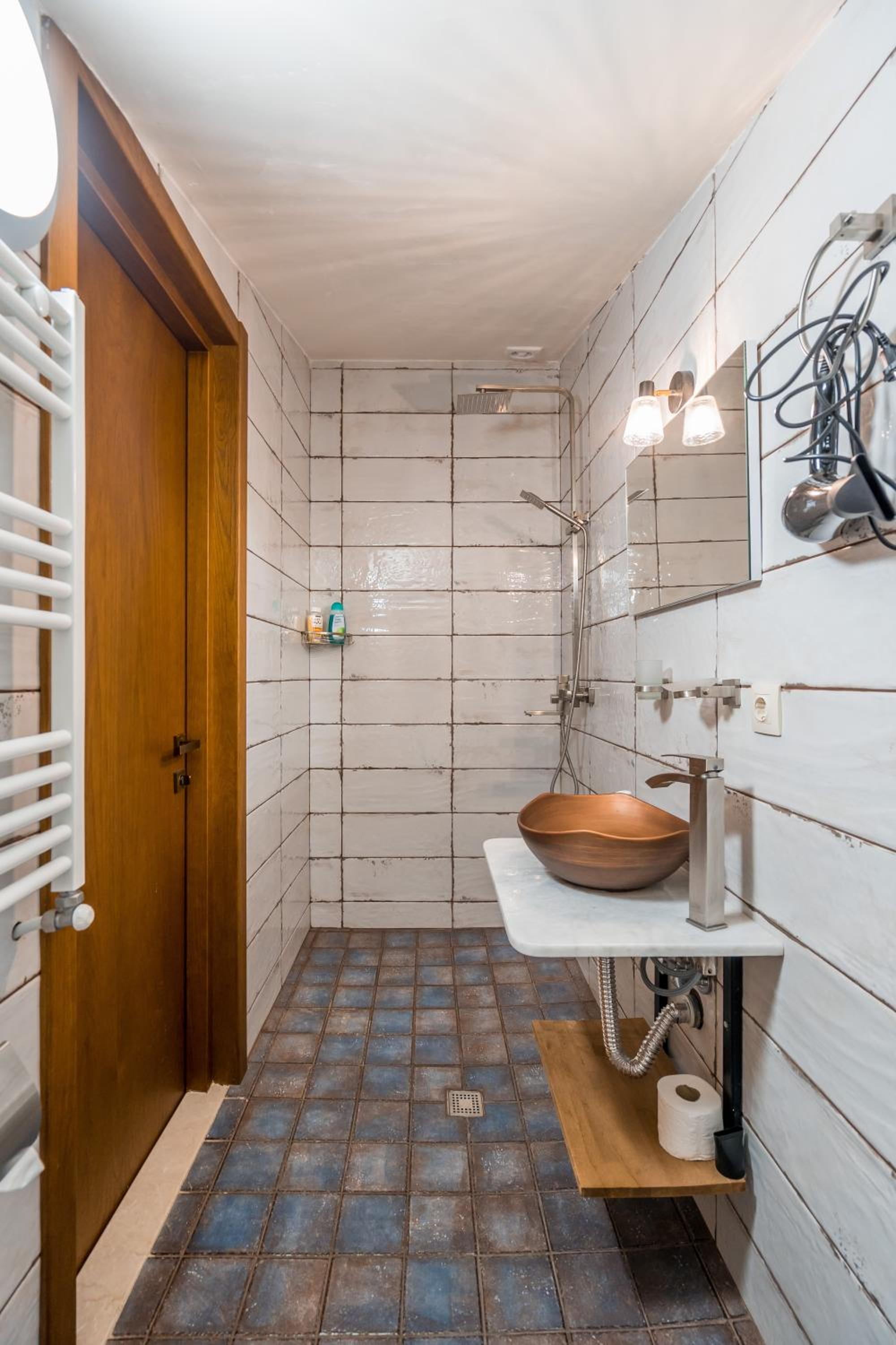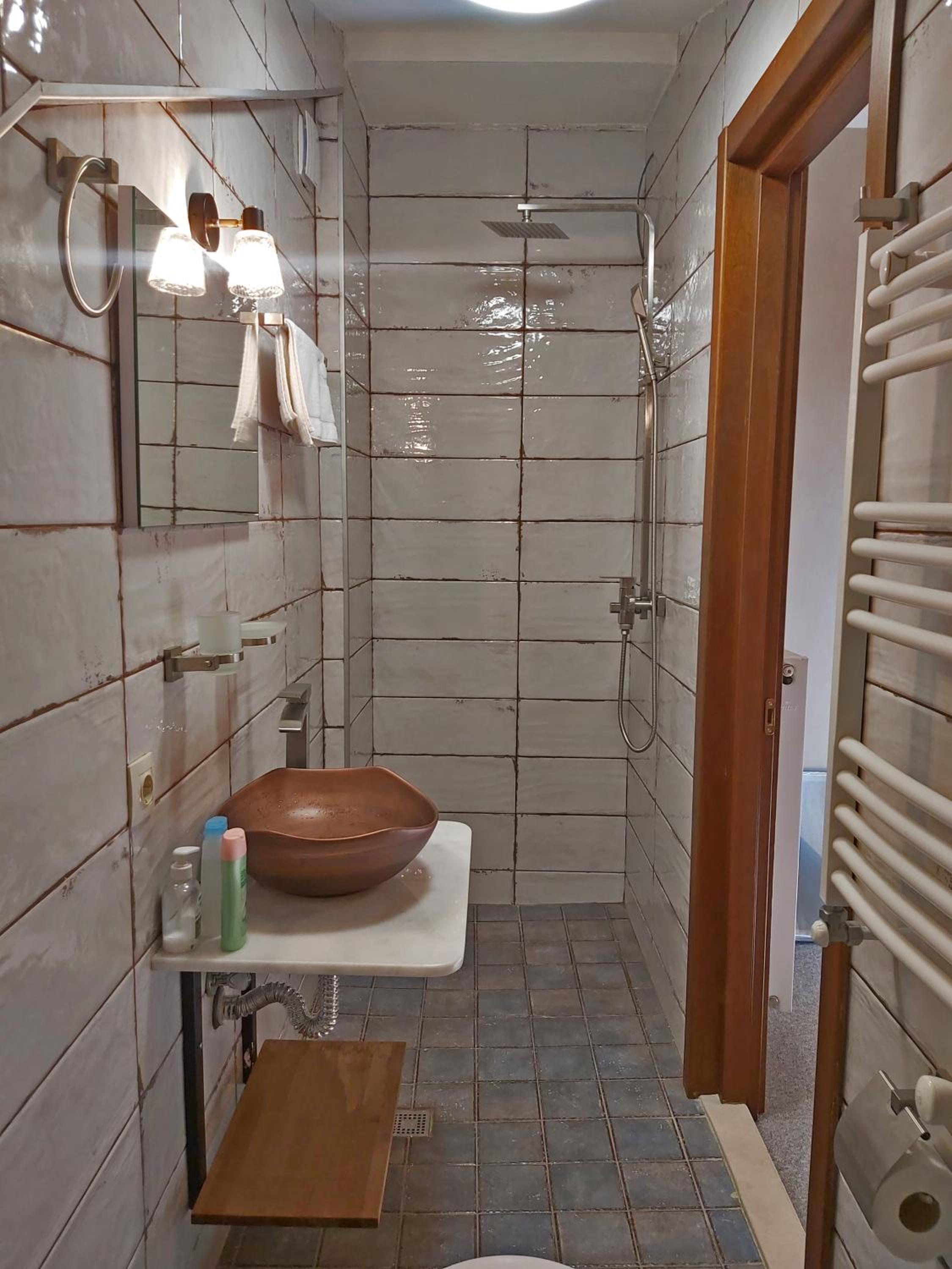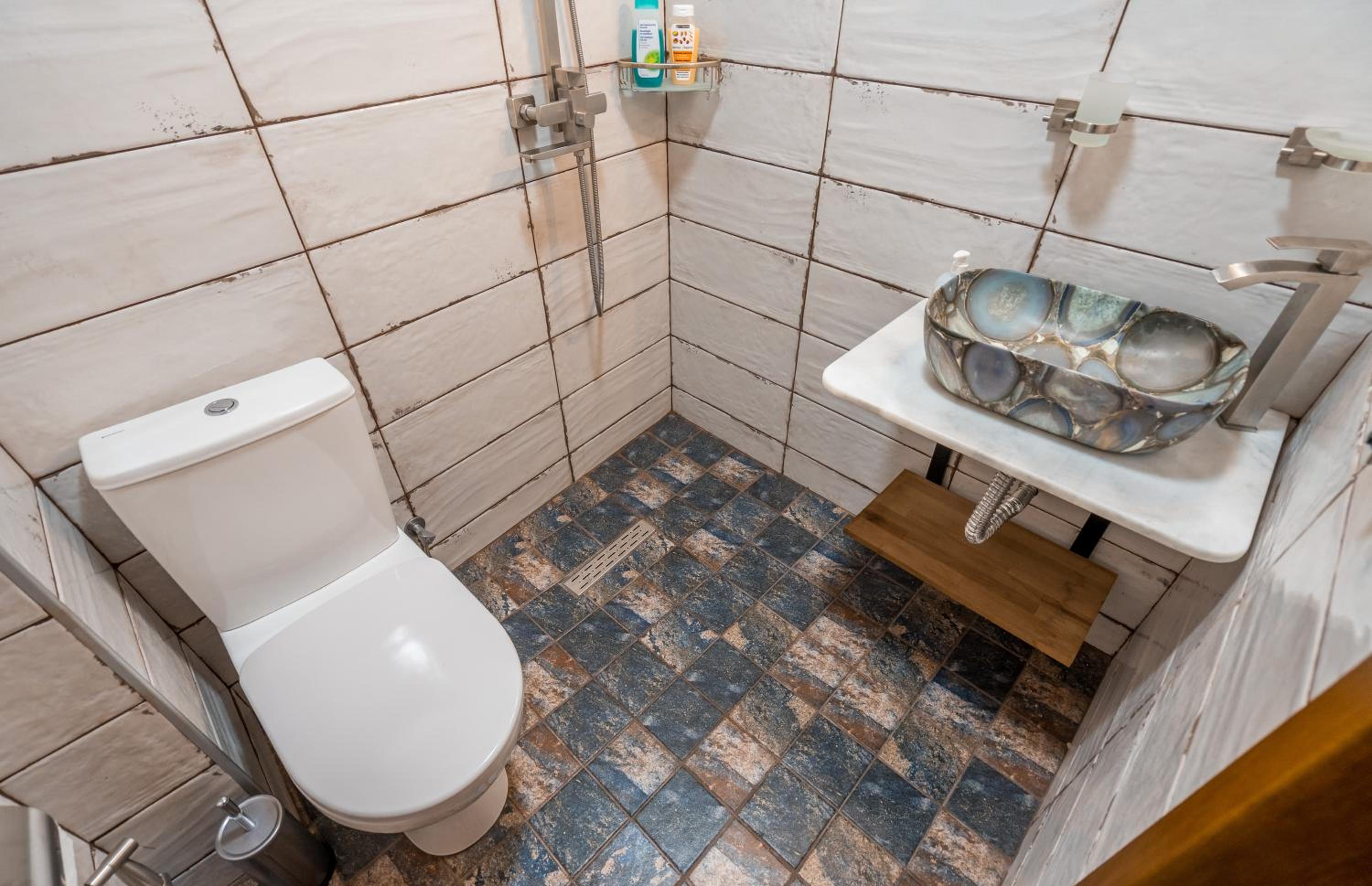 Единственный минус - это странное решение душевой кабины без какого либо ограждения. После душа весь санузел в воде. Берите резиновые шлепки. Потом в туалет ходть скользко и мокро