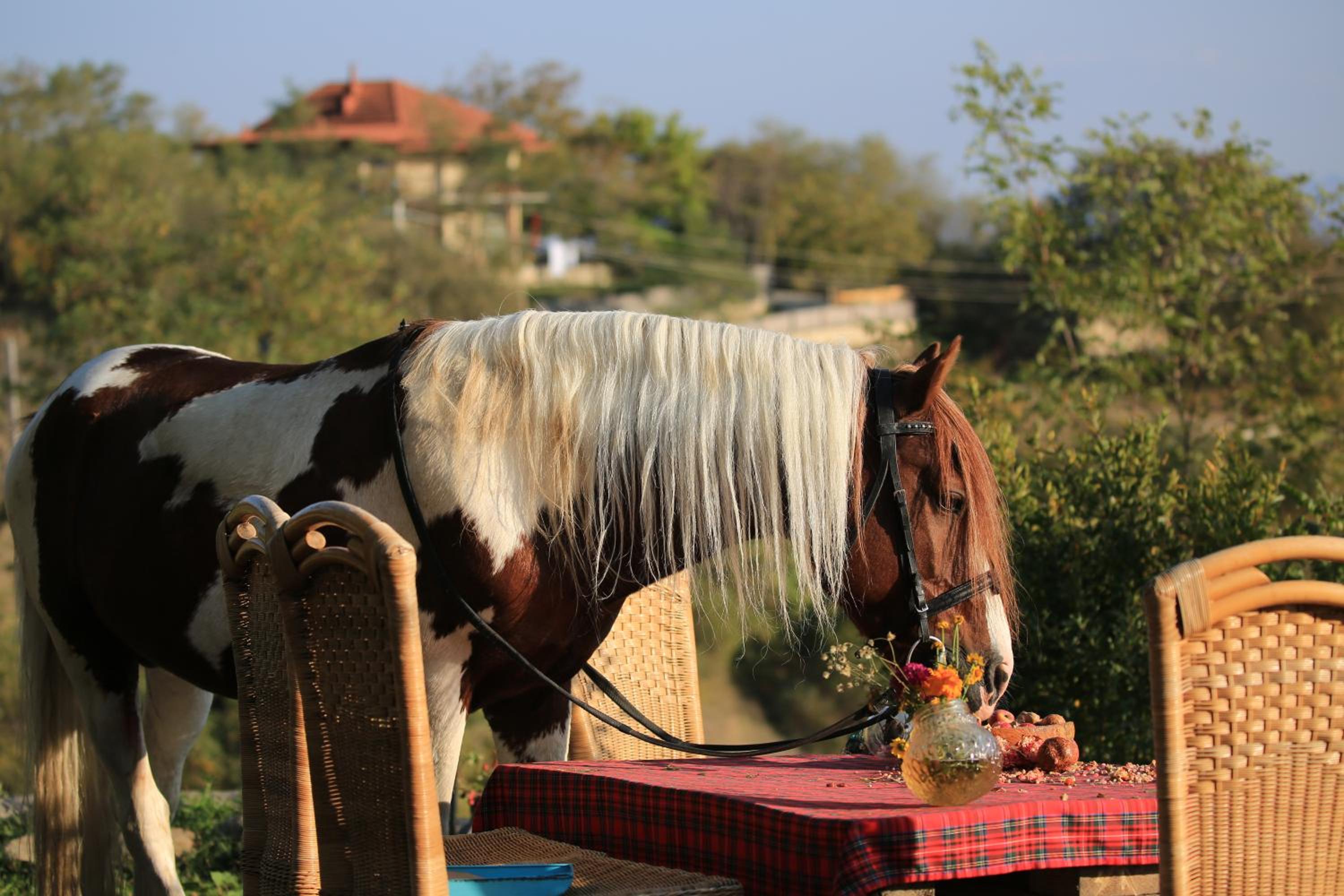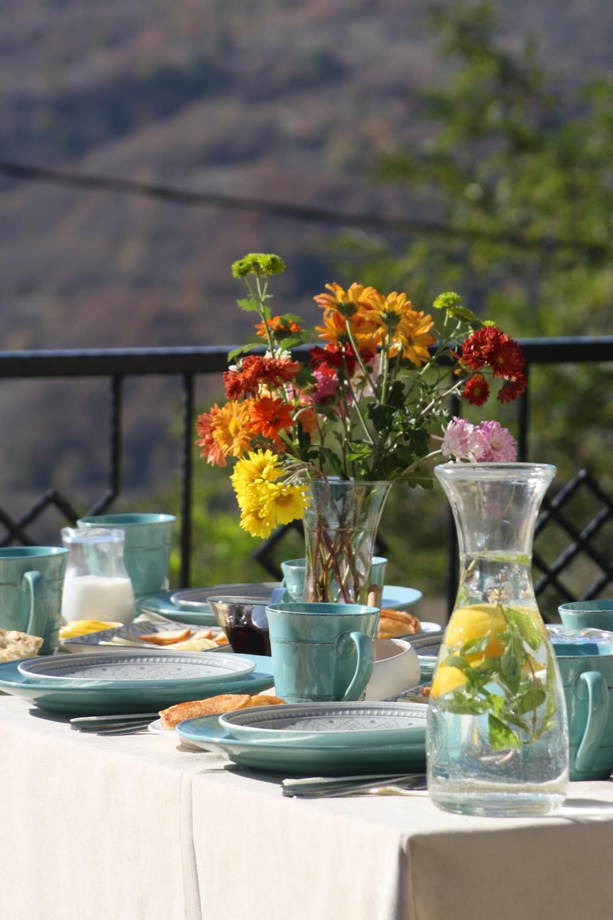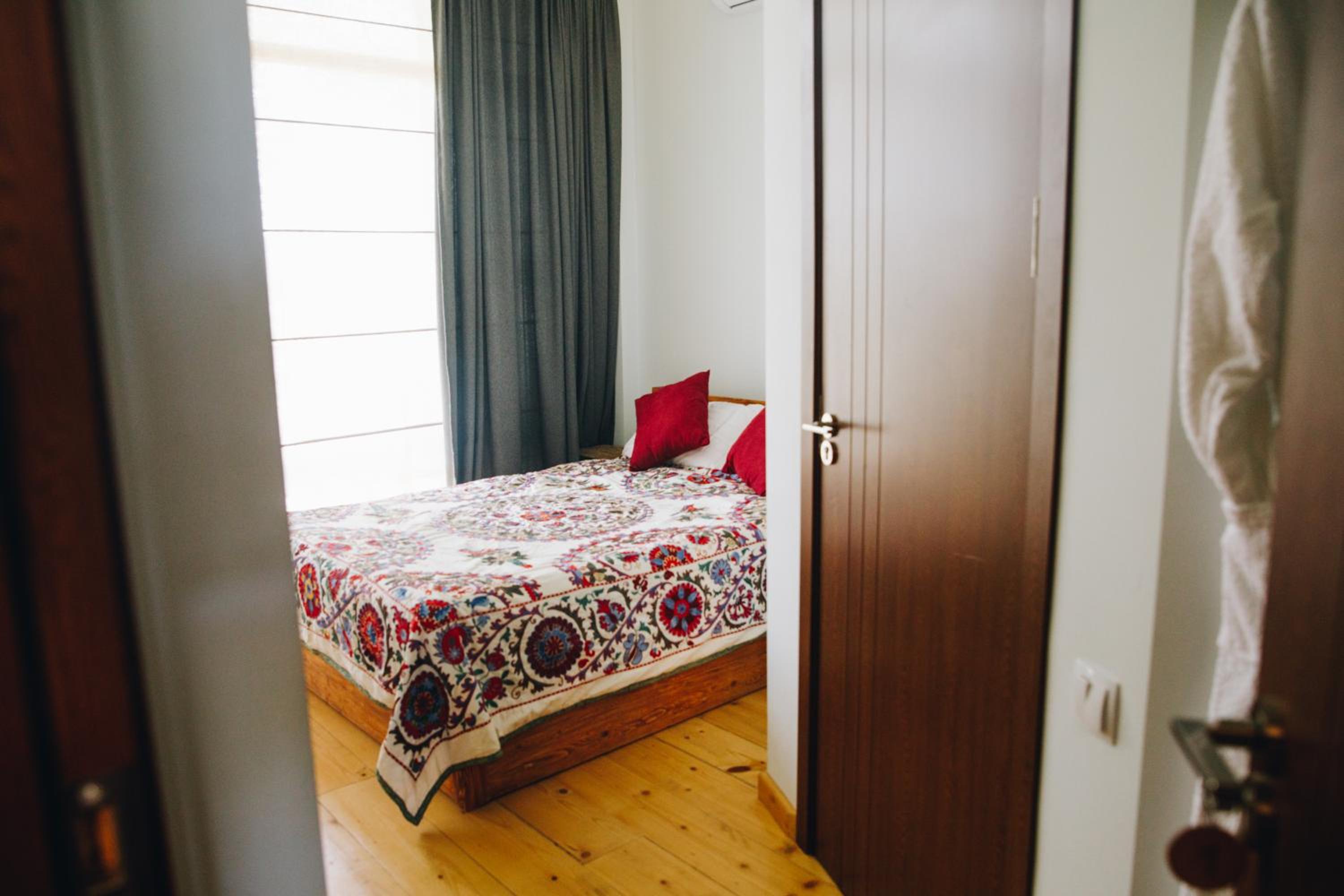Gorgeous ranch on a hillside with friendly horses & dogs, an on-site brewery and restaurant. Short drive into Singhnaghi. Stunning views. Beautiful, clean room with a balcony looking over the view.