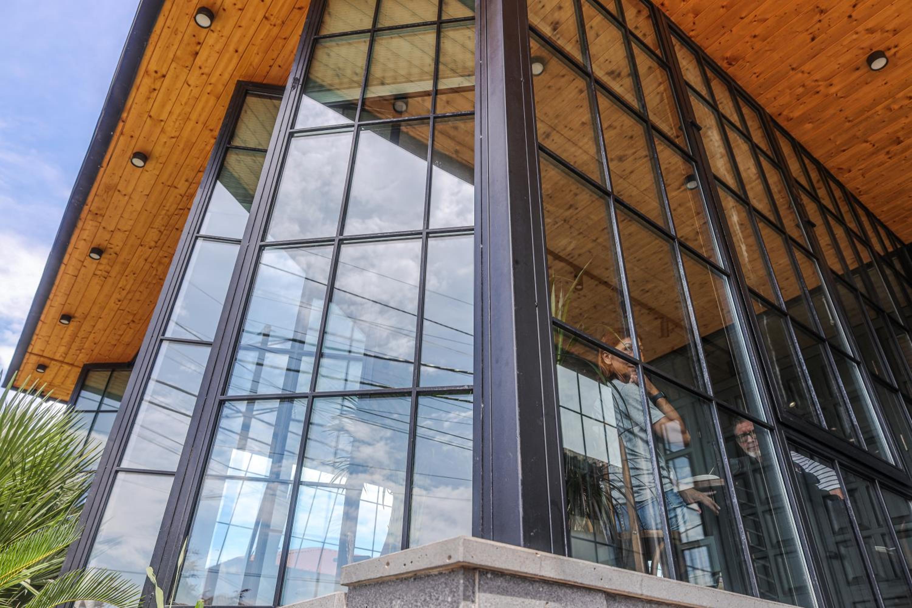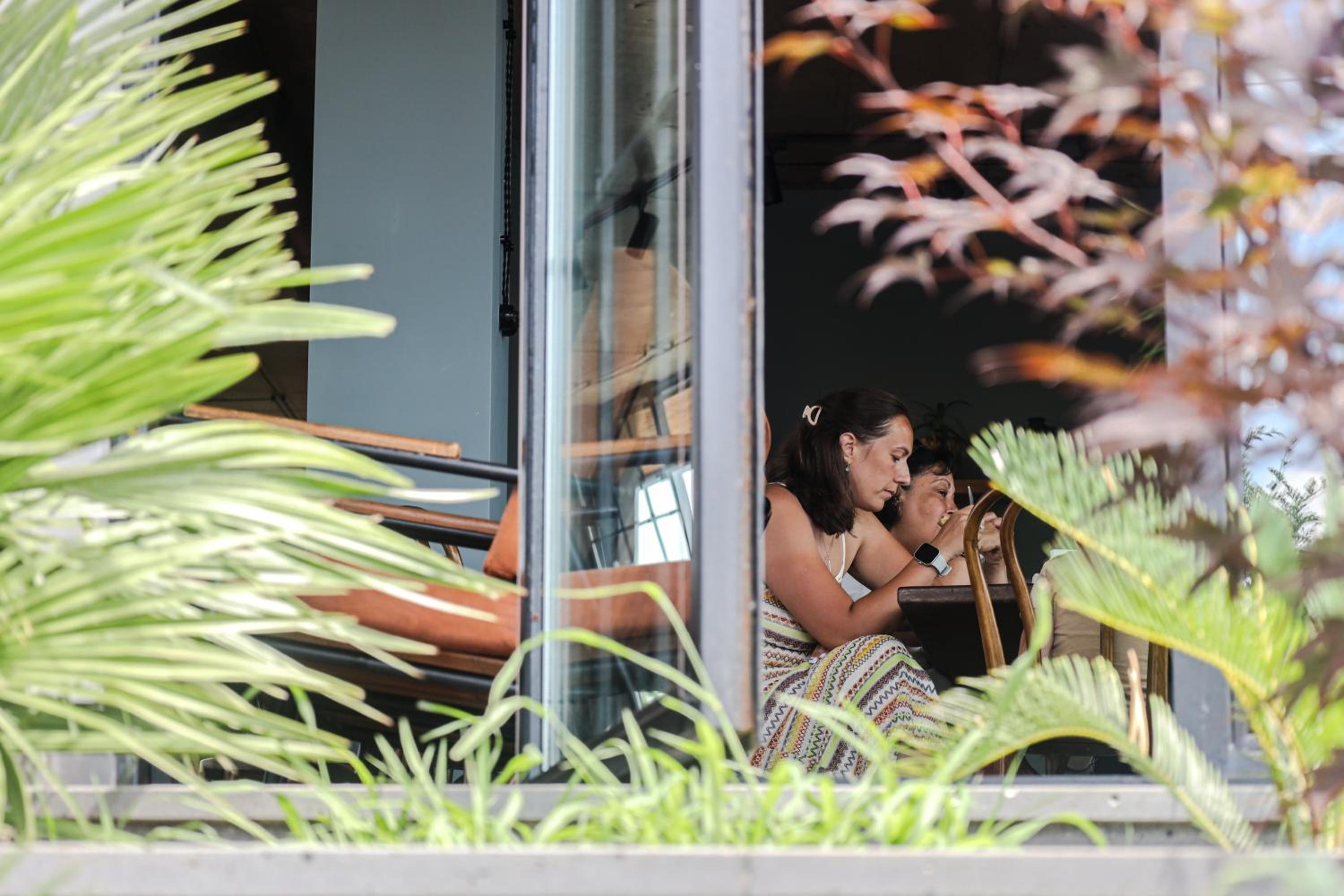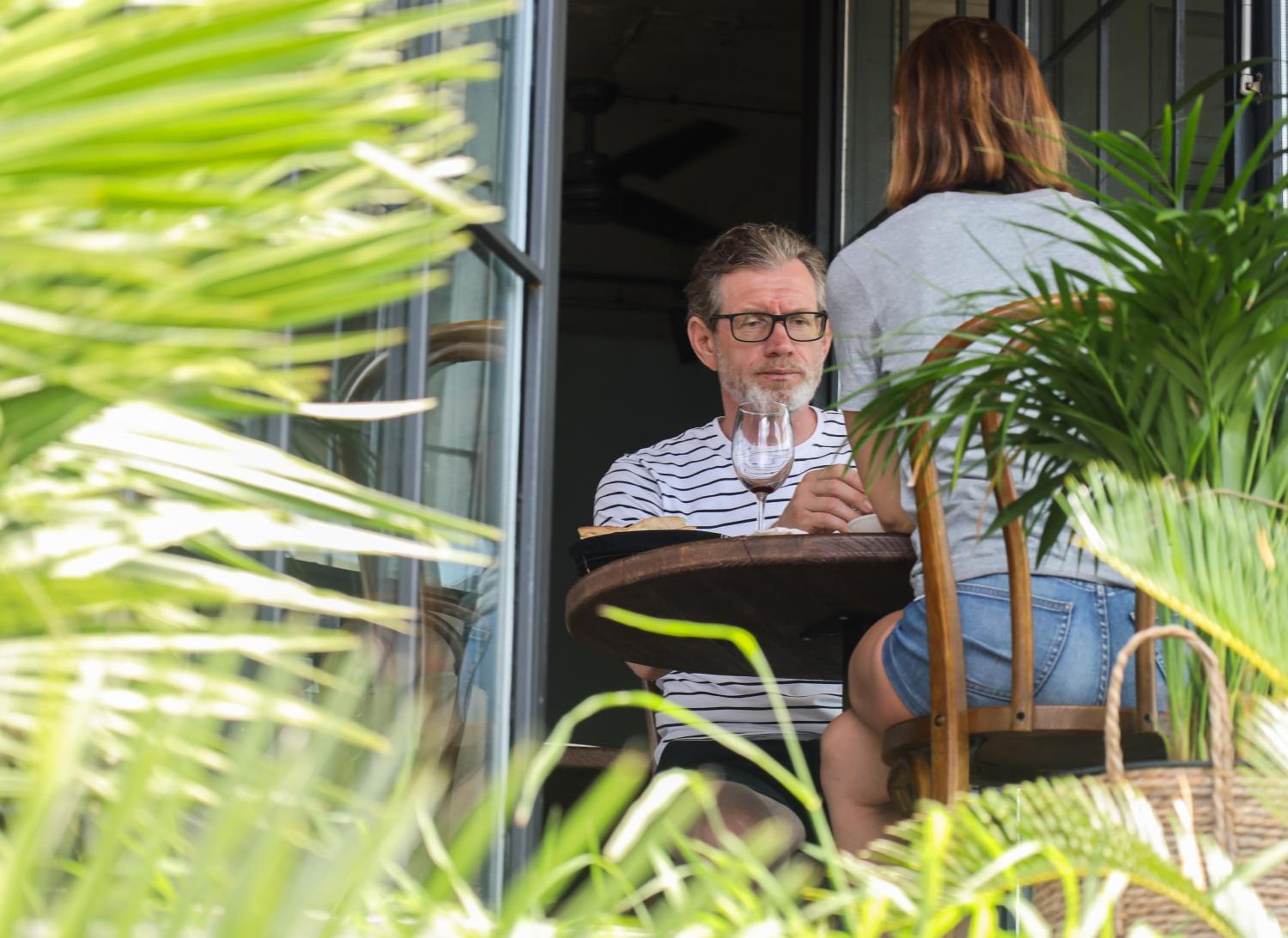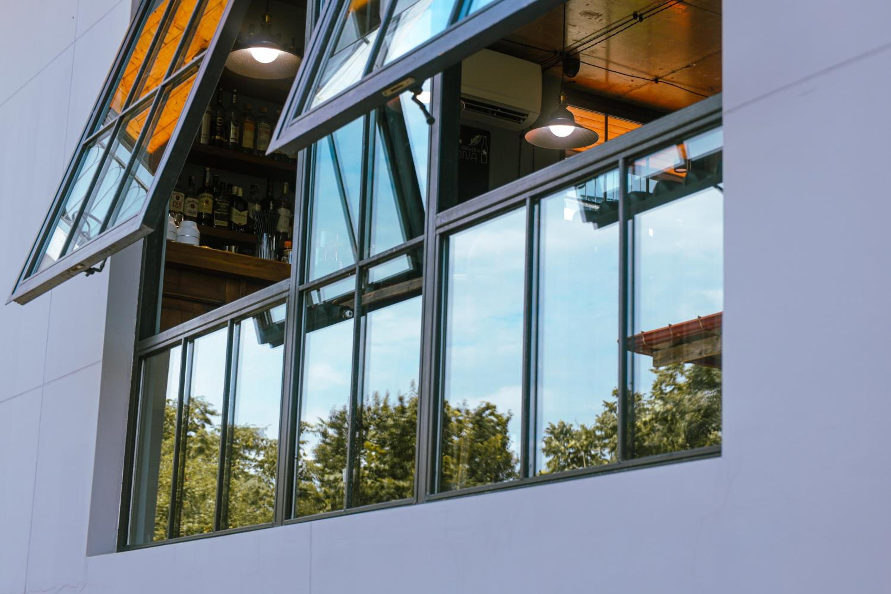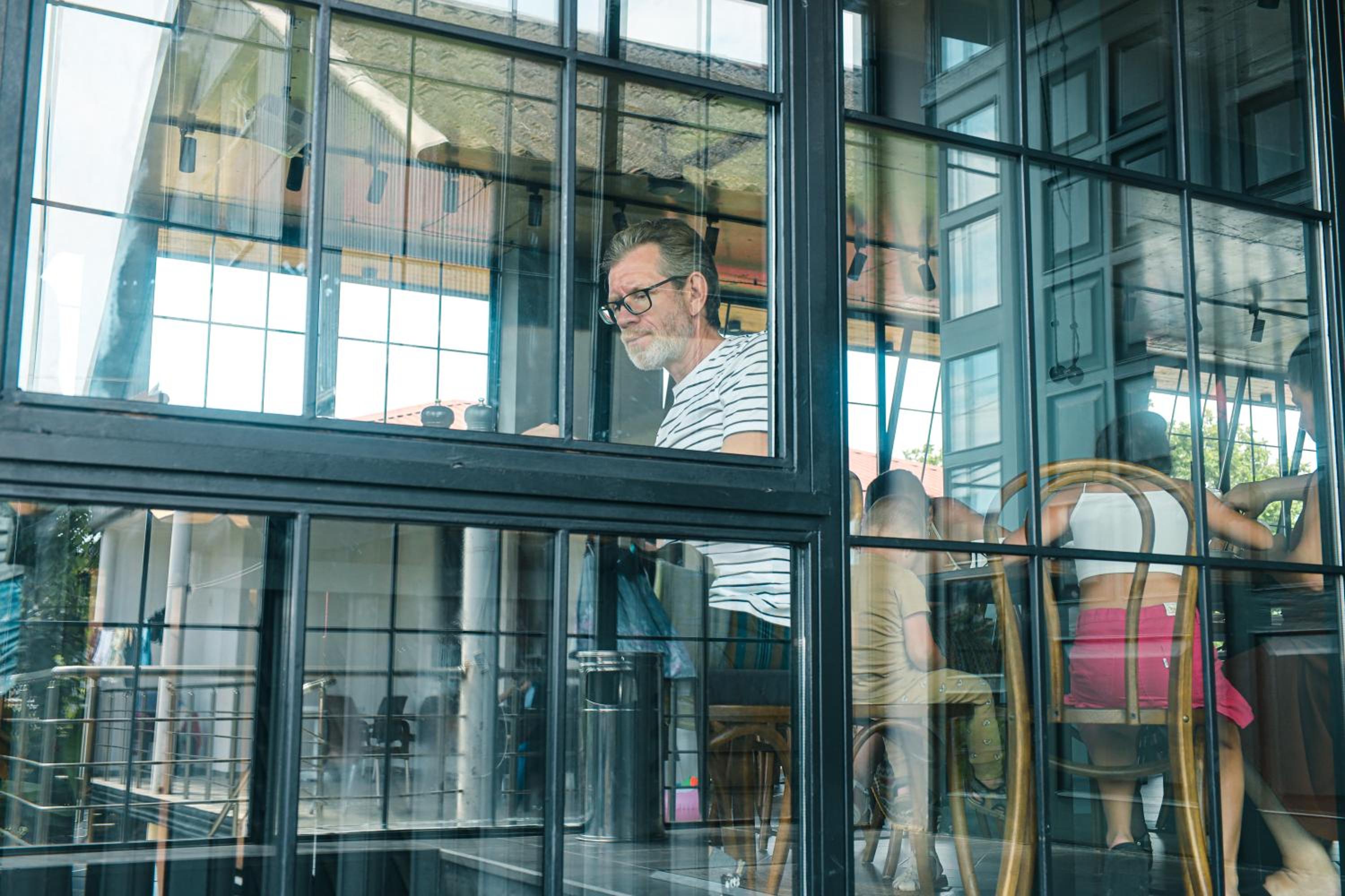 The window (balcony) overlooks the window of the restaurant. A bit not very hospitable staff, but that's ok )
