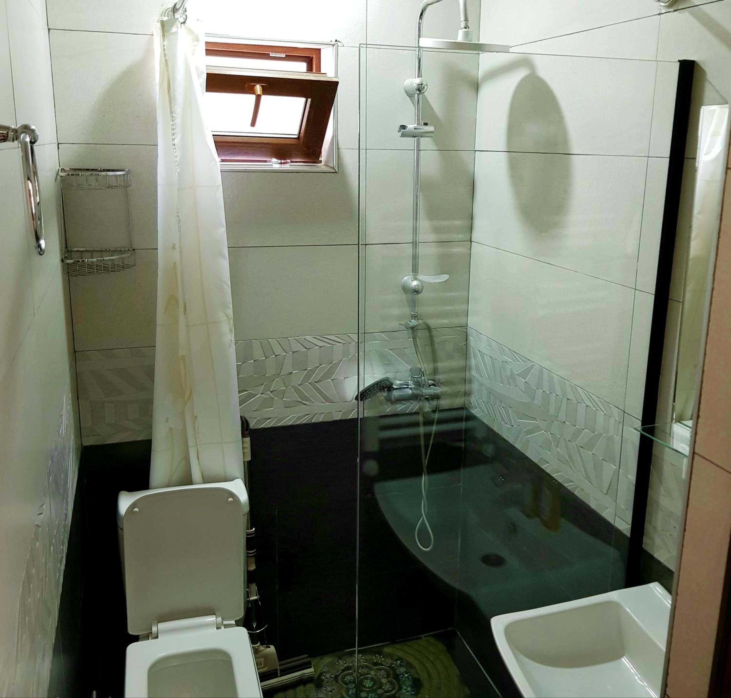 De douche ie erg klein. Het huis is heel gehorig. Het buitenaanzicht geeft wat verwarring, want het huis is nog niet af.