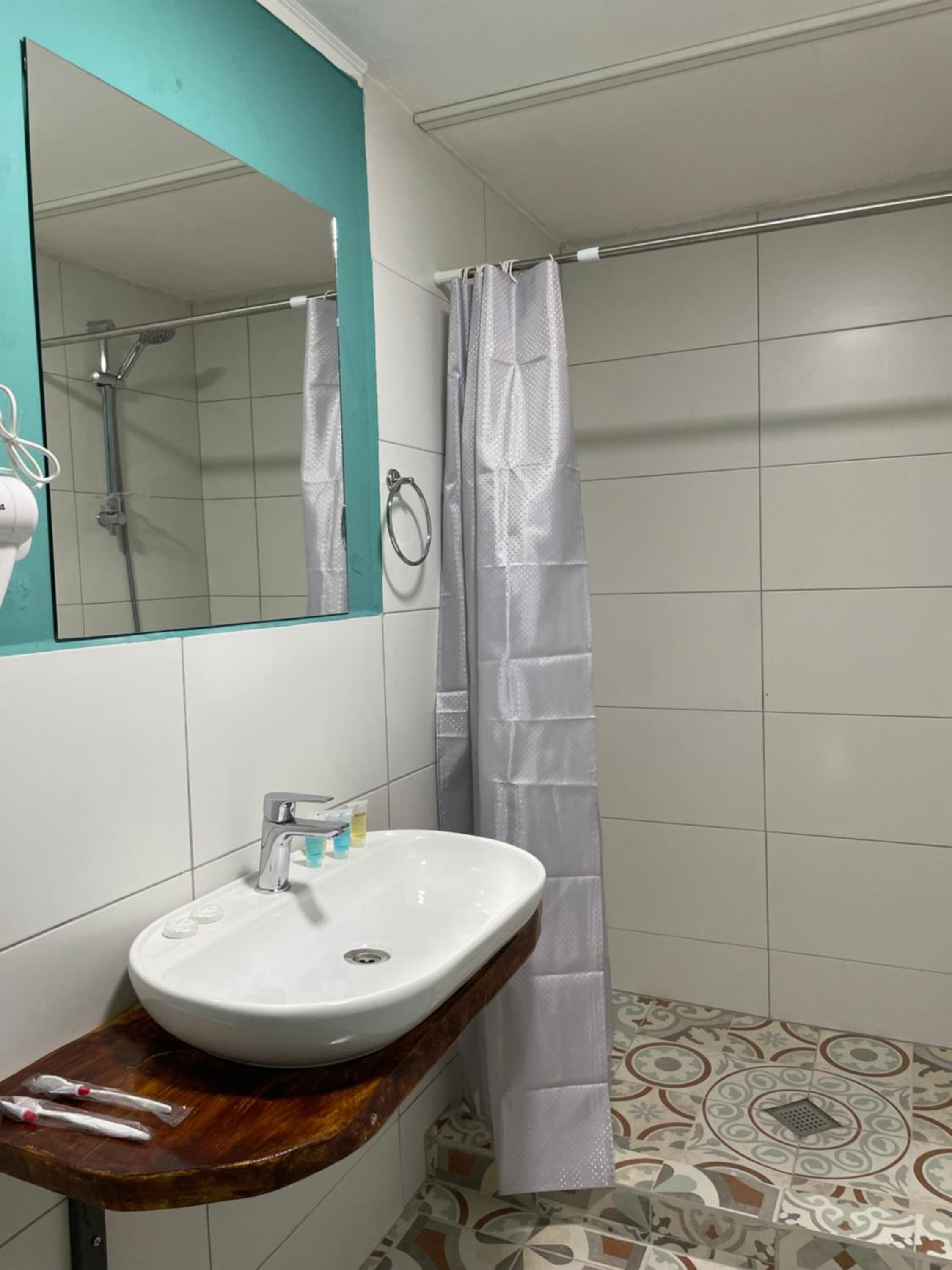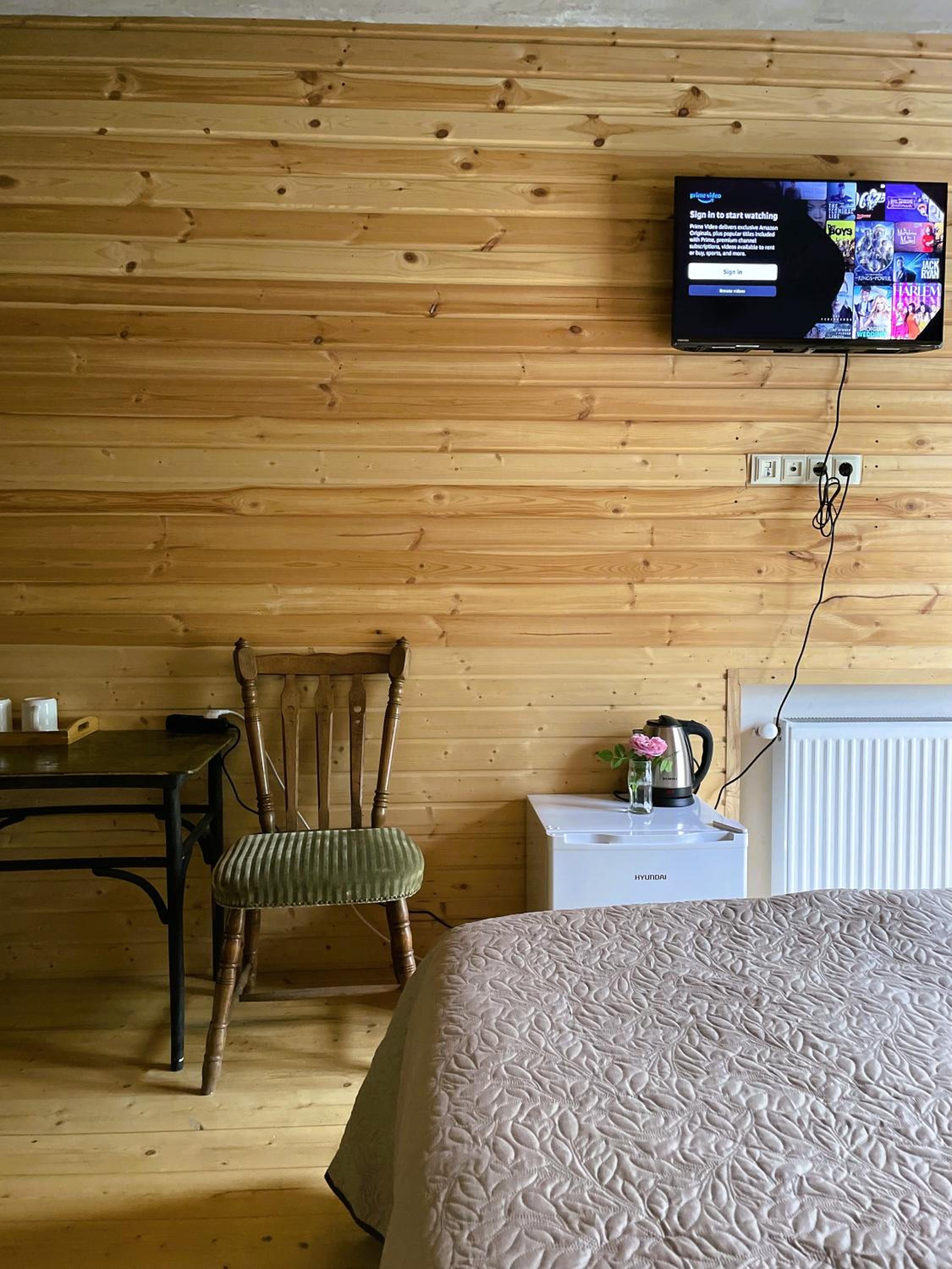 В номере тепло, есть батарея. Было все необходимое для проживания - гигиенический набор, комплект полотенец, холодильник, чайник, чашки. Также есть небольшой балкончик с красивым видом на горы. В душевой есть шторка - это большой плюс, чтобы вся ванная не была залита водой.