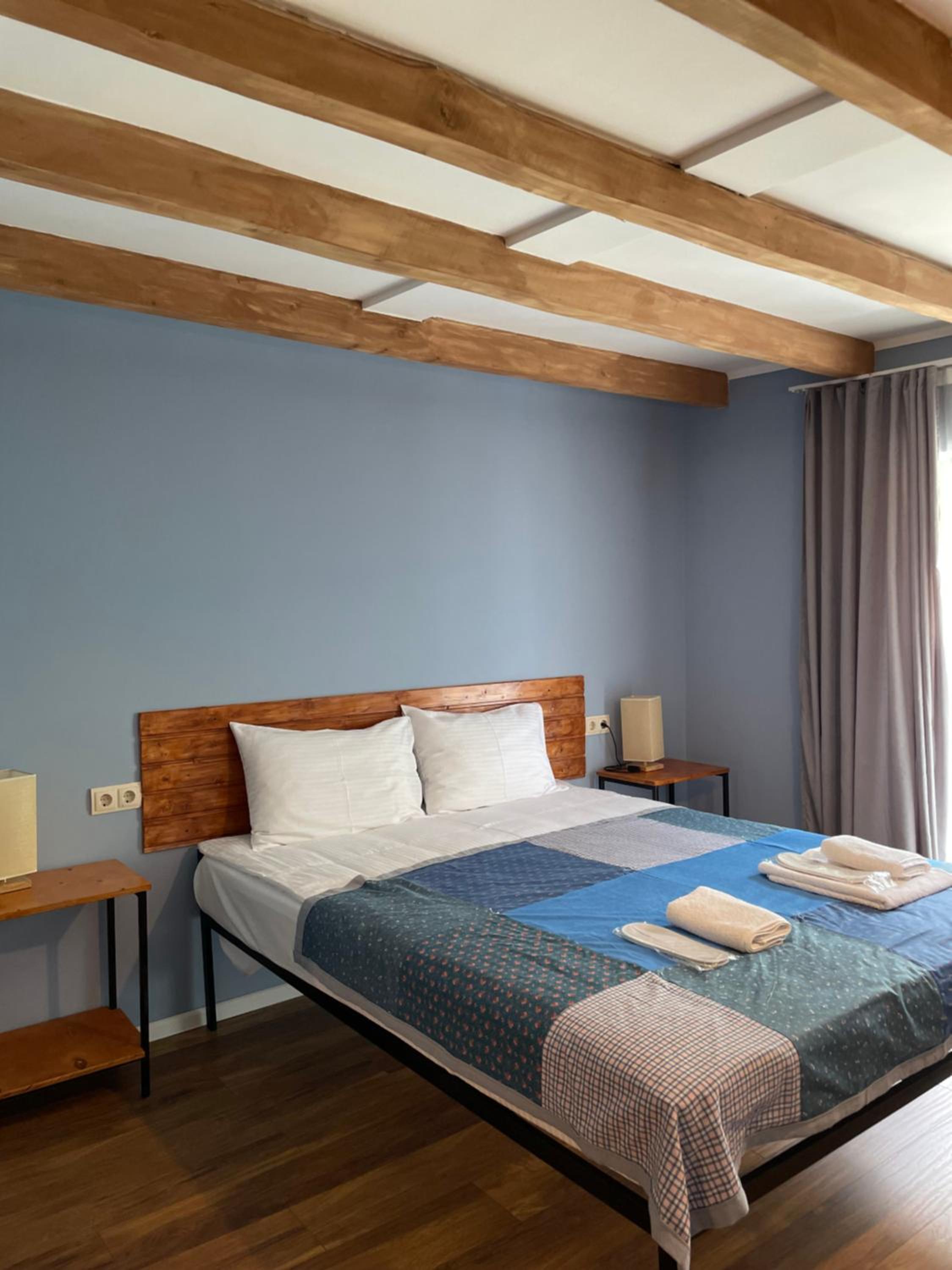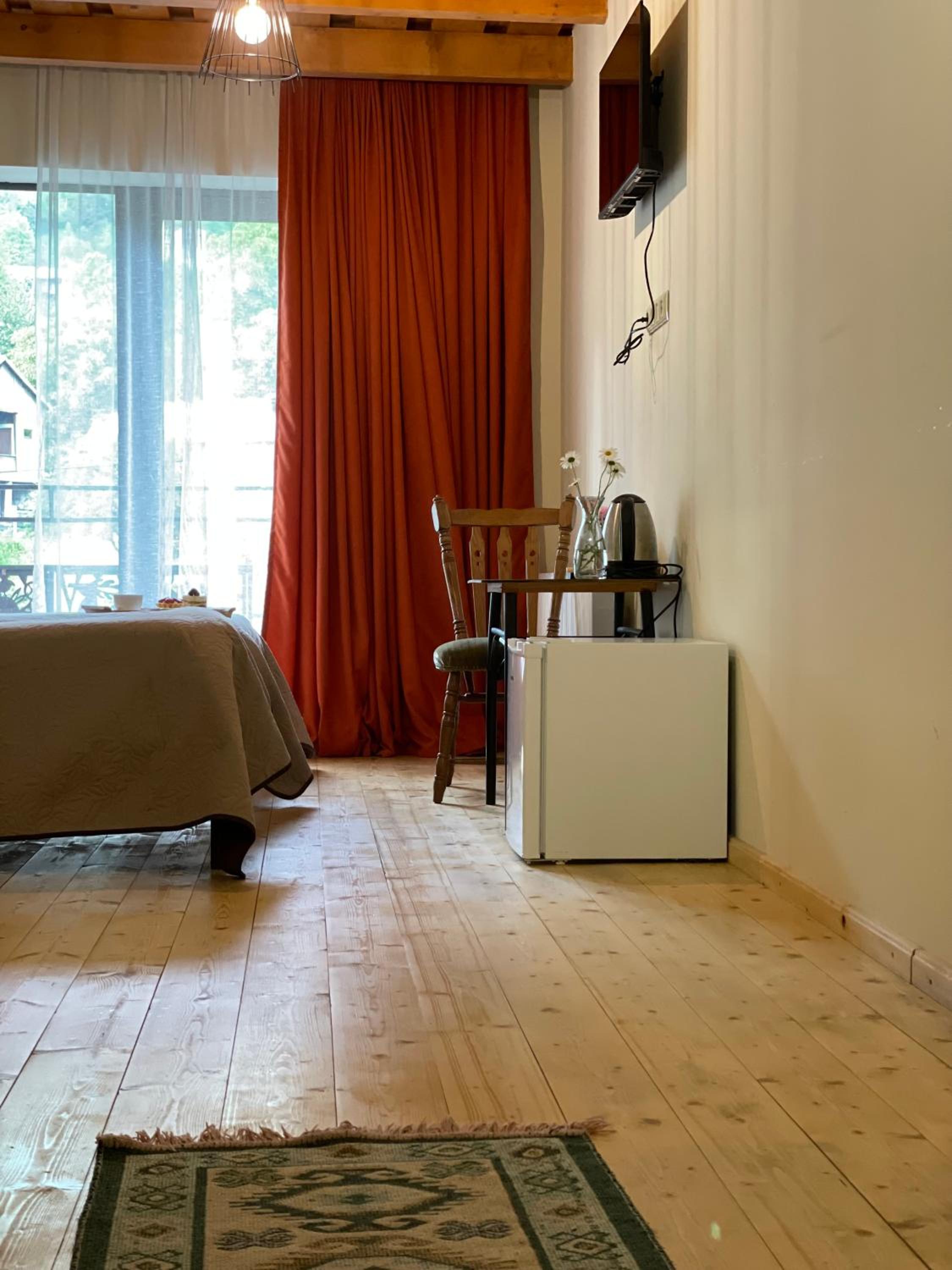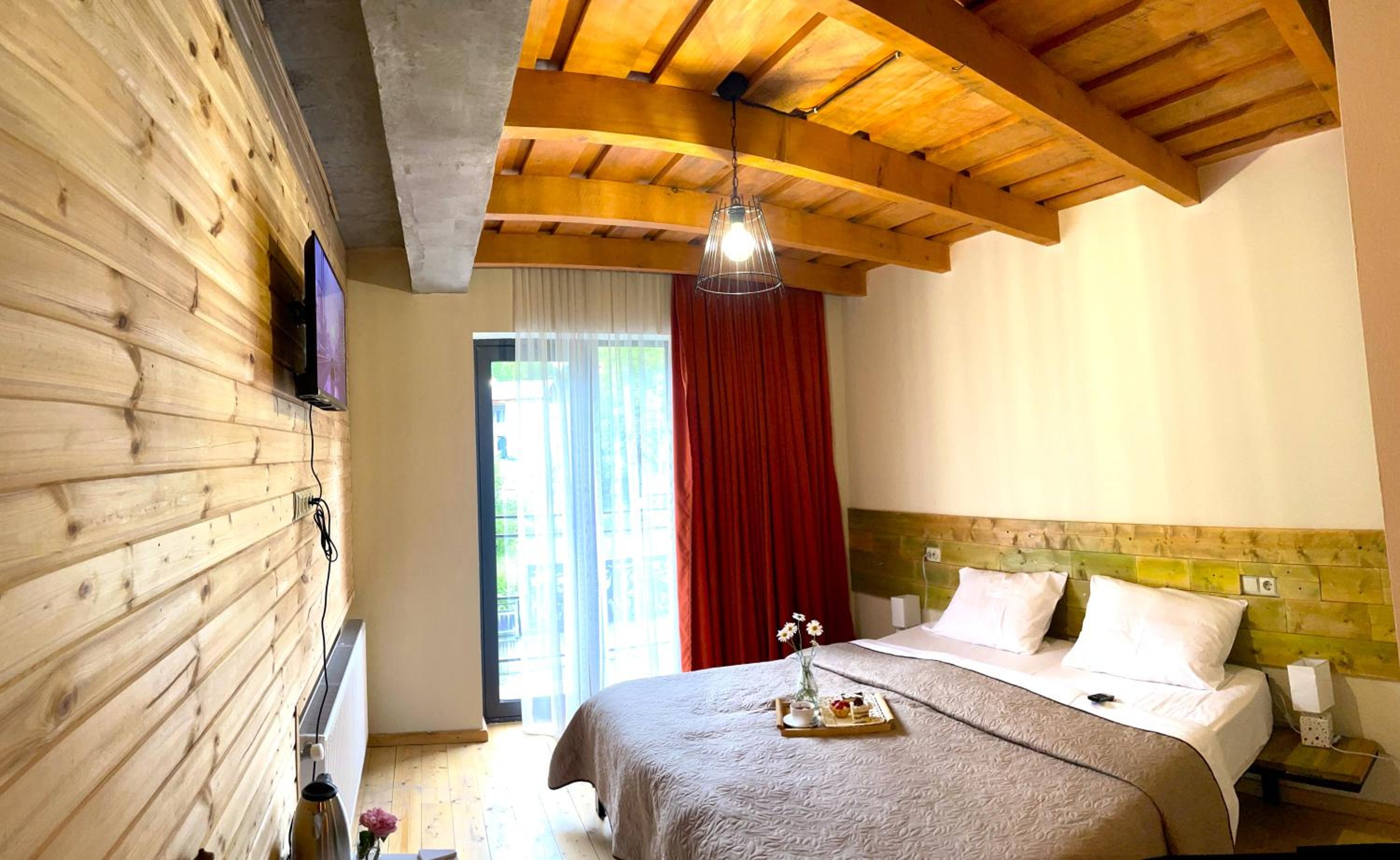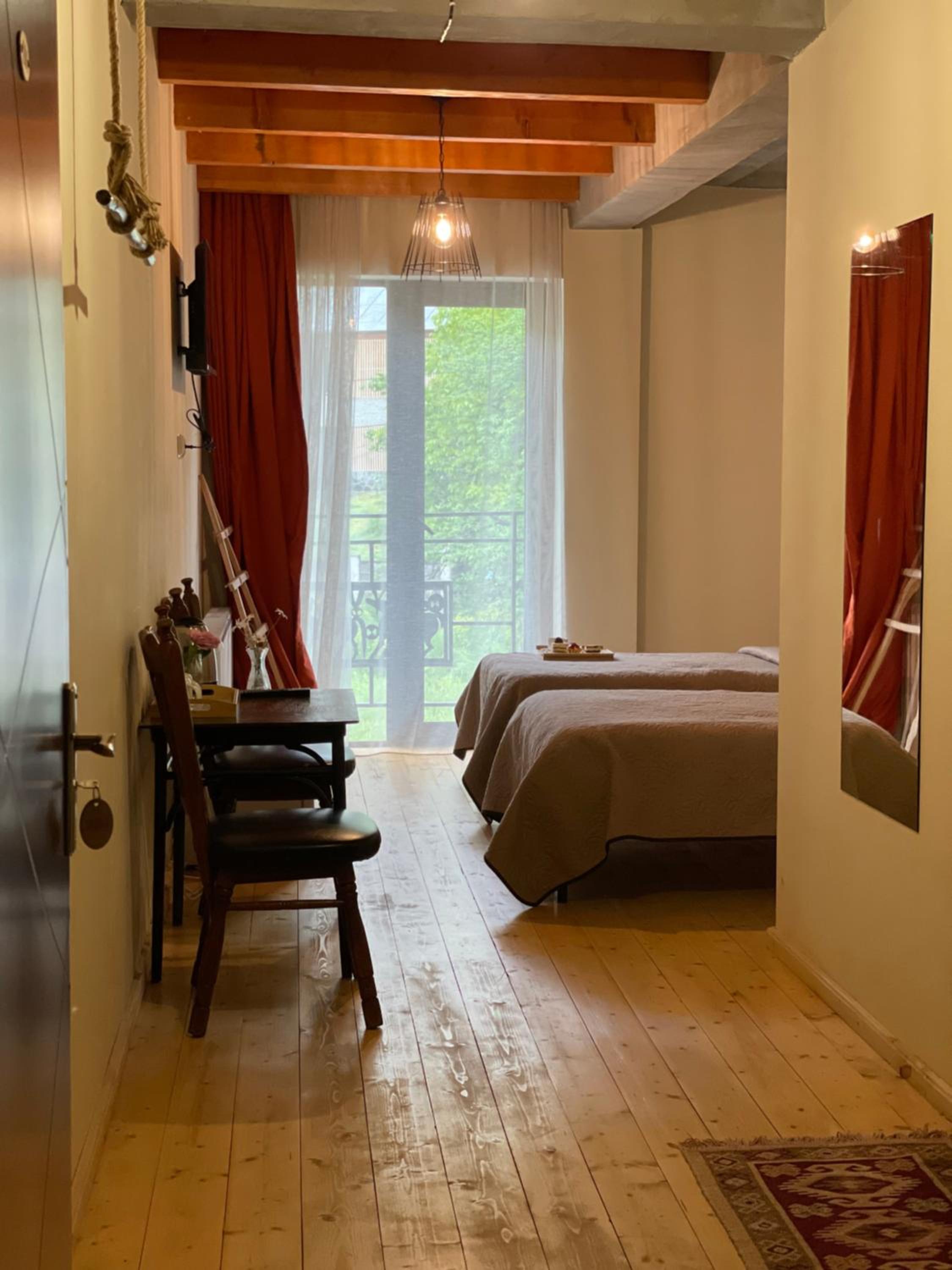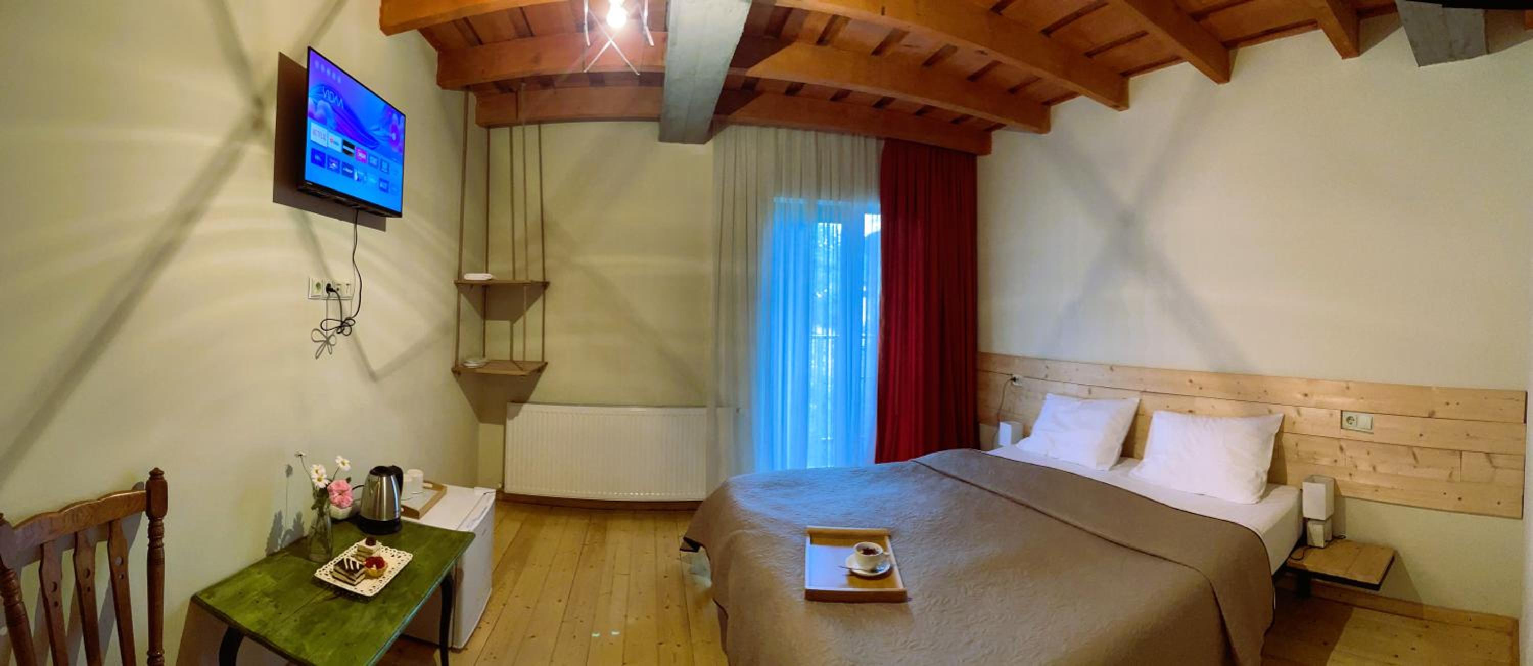 The hotel is perfectly located on the main street of Mestia, just a short walk from everything you need. There’s a bakery on the ground floor, and every time you open your room door, you’re greeted with the delightful aroma of freshly baked cakes. The rooms are very comfortable, and the view is simply stunning—overlooking the forest and iconic Svan towers.