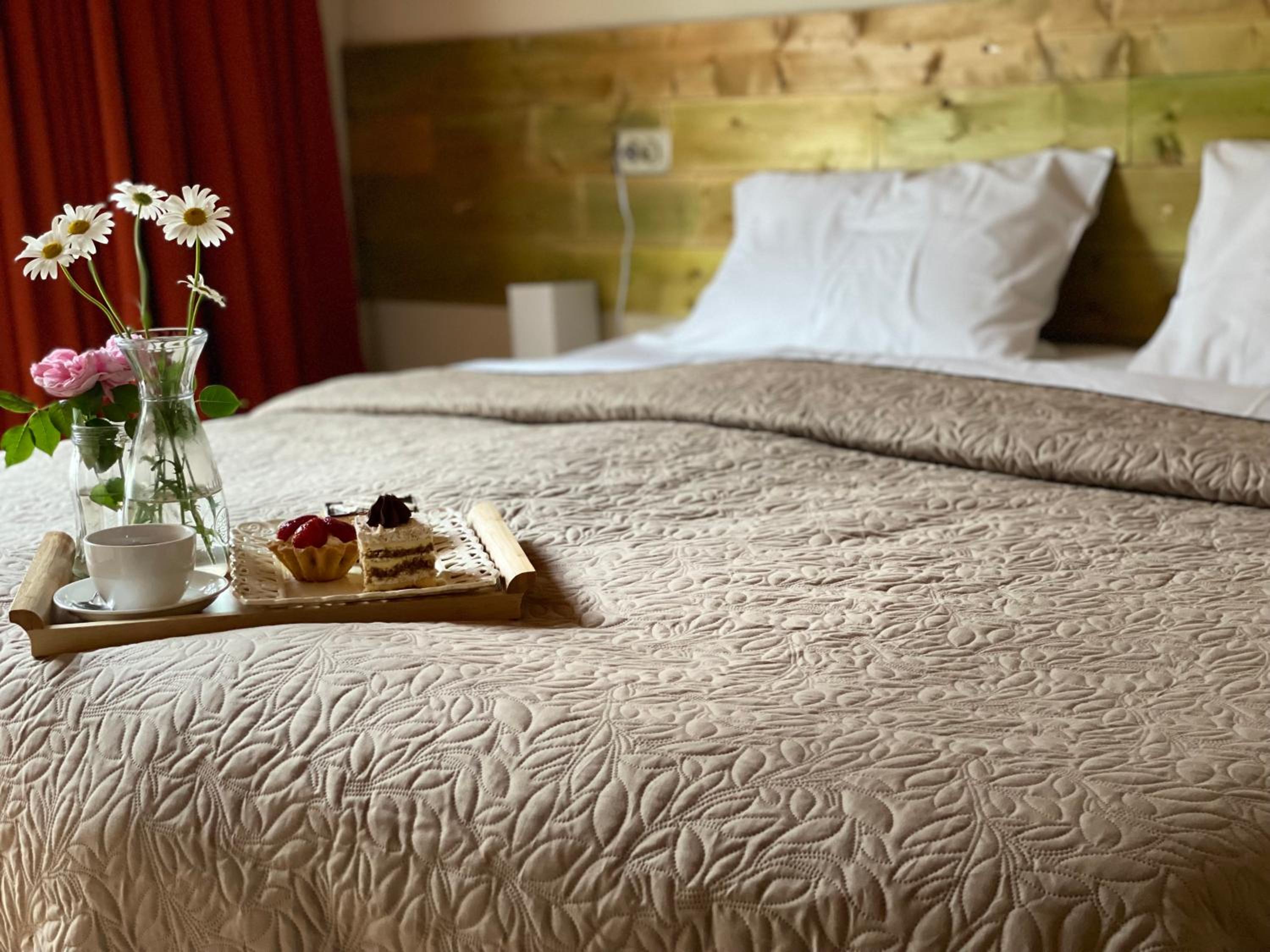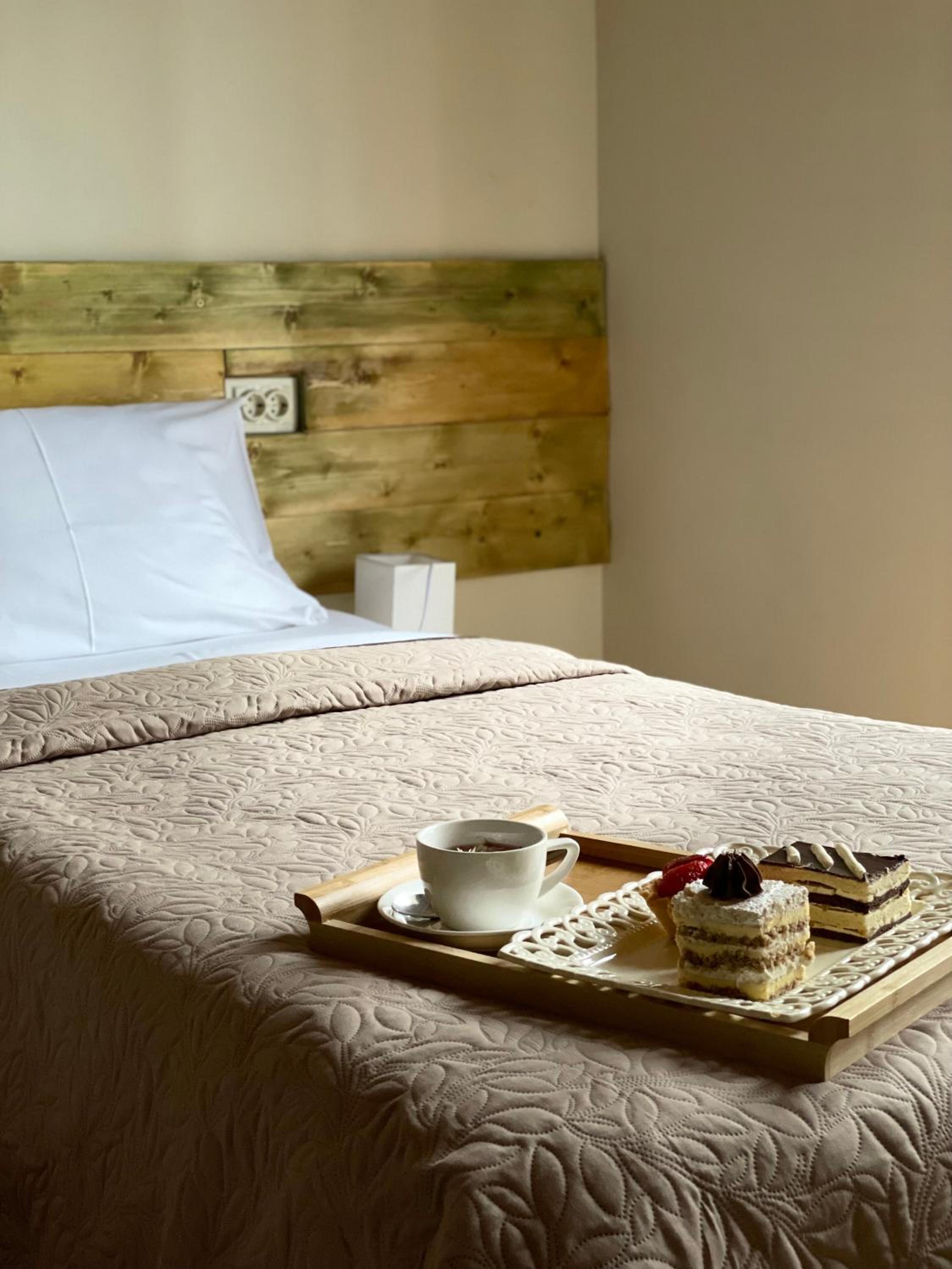 На первом этаже отеля небольшая пекарня с вкусными пирожными, уютное лобби, милые и добрый женщины всегда помогали, спасибо им большое! Маме понадобилось измерить давление - нашли аппарат. Завтраки готовят очень вкусные, звукоизоляция в комнате на хорошем уровне.