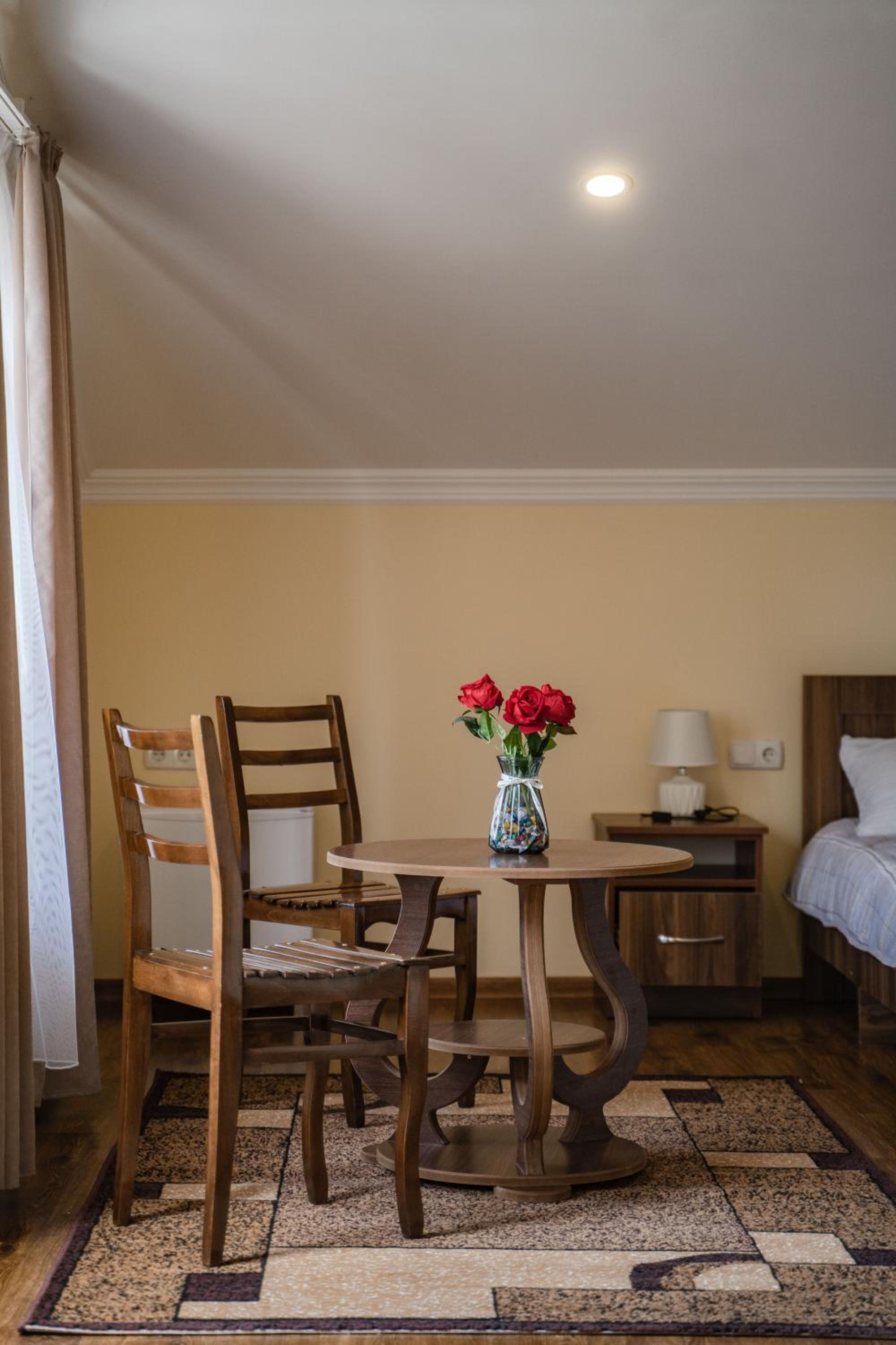 Excellent location of the hotel on a quiet street not far from the center. Perfect cleanliness, comfortable room with a beautiful view of the Alazani Valley . Many thanks to the owners Eteri and her son Alexander for their hospitality. We had a great week-end!