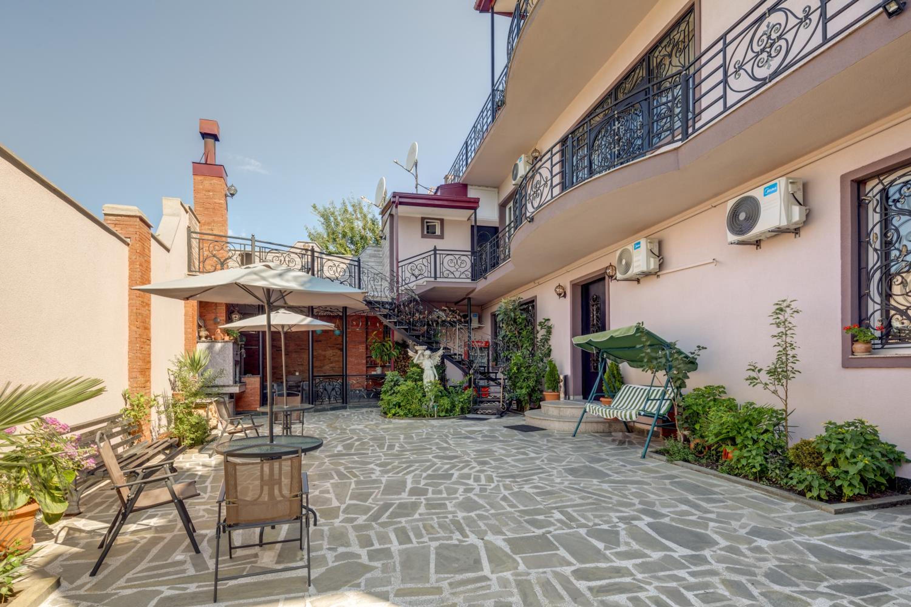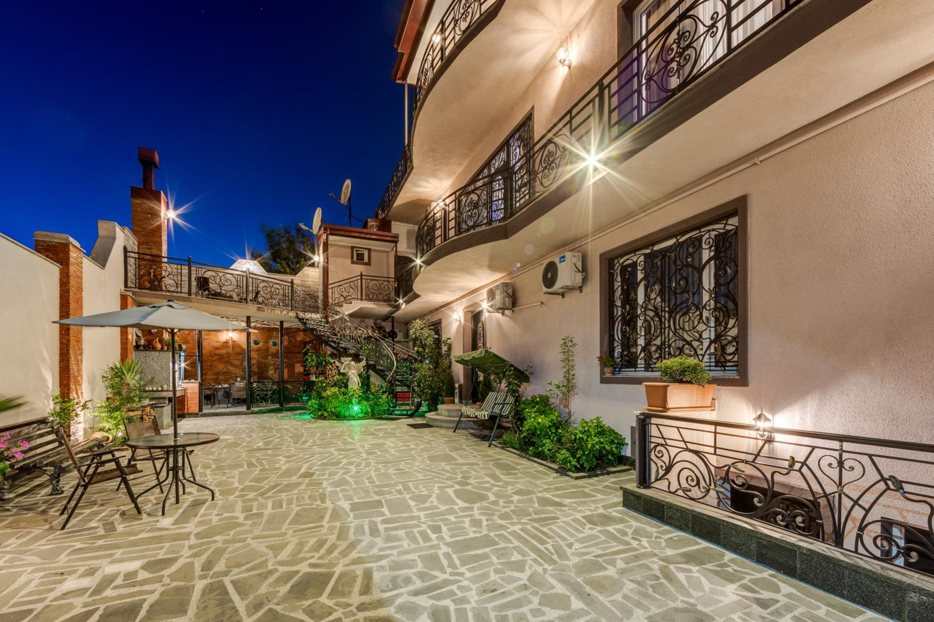 Otelin balkonlu odalarından Sameba Katedrali ve Tiflis şehir manzarası gözüktüğü için özellikle akşamları balkonda vakit geçirmek çok keyifli oluyor. Odalar ve banyo oldukça ferahtı. Taleplerimizi ve sorularımızı otel personeli hızlı ve samimi bir şekilde yanıtladı. Otelin şirin bir bahçesi var. Biz kış ayında gittiğimiz için kullanmadık ama yaz akşamları daha canlı olur.