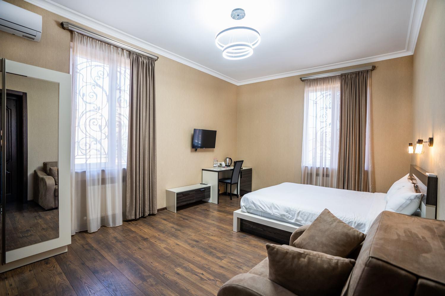 Siberia Hotel, nestled in the heart of Tbilisi City, offers elegant and air-conditioned rooms with modern amenities like flat-screen TVs and private bathrooms. Some rooms even boast a charming balcony with city views.