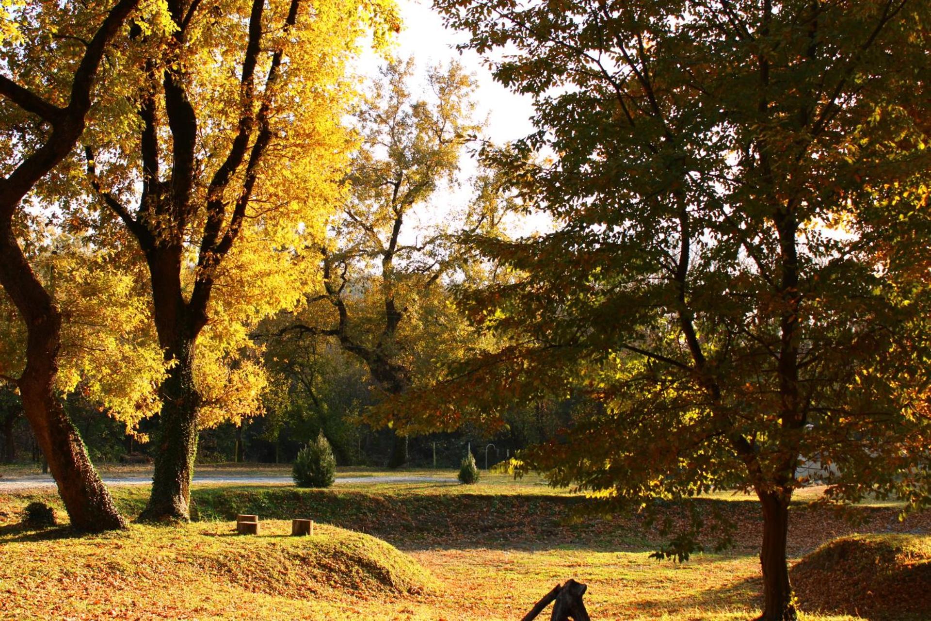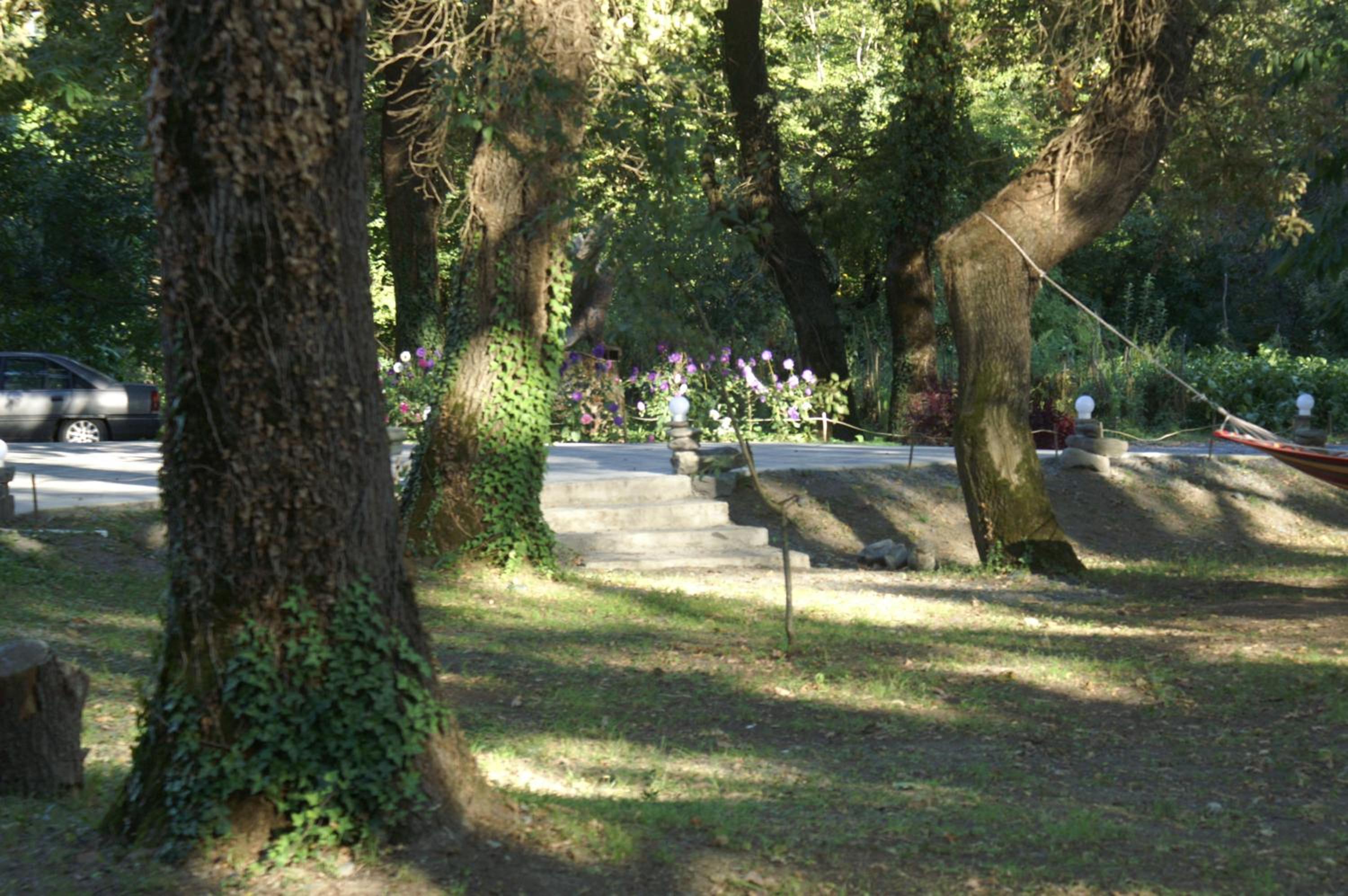 The garden/yard with many big oak trees feels like you are in the forest.