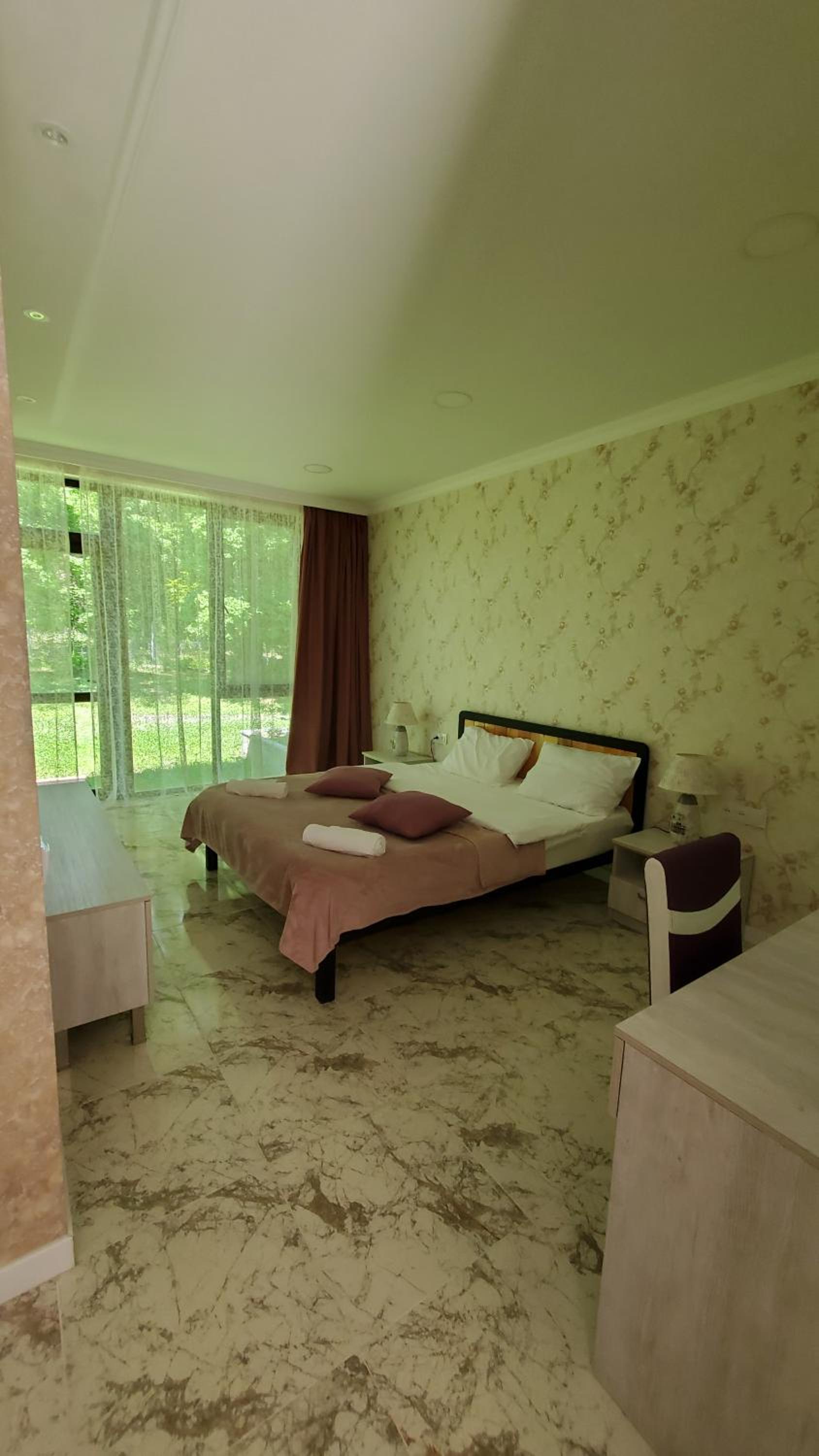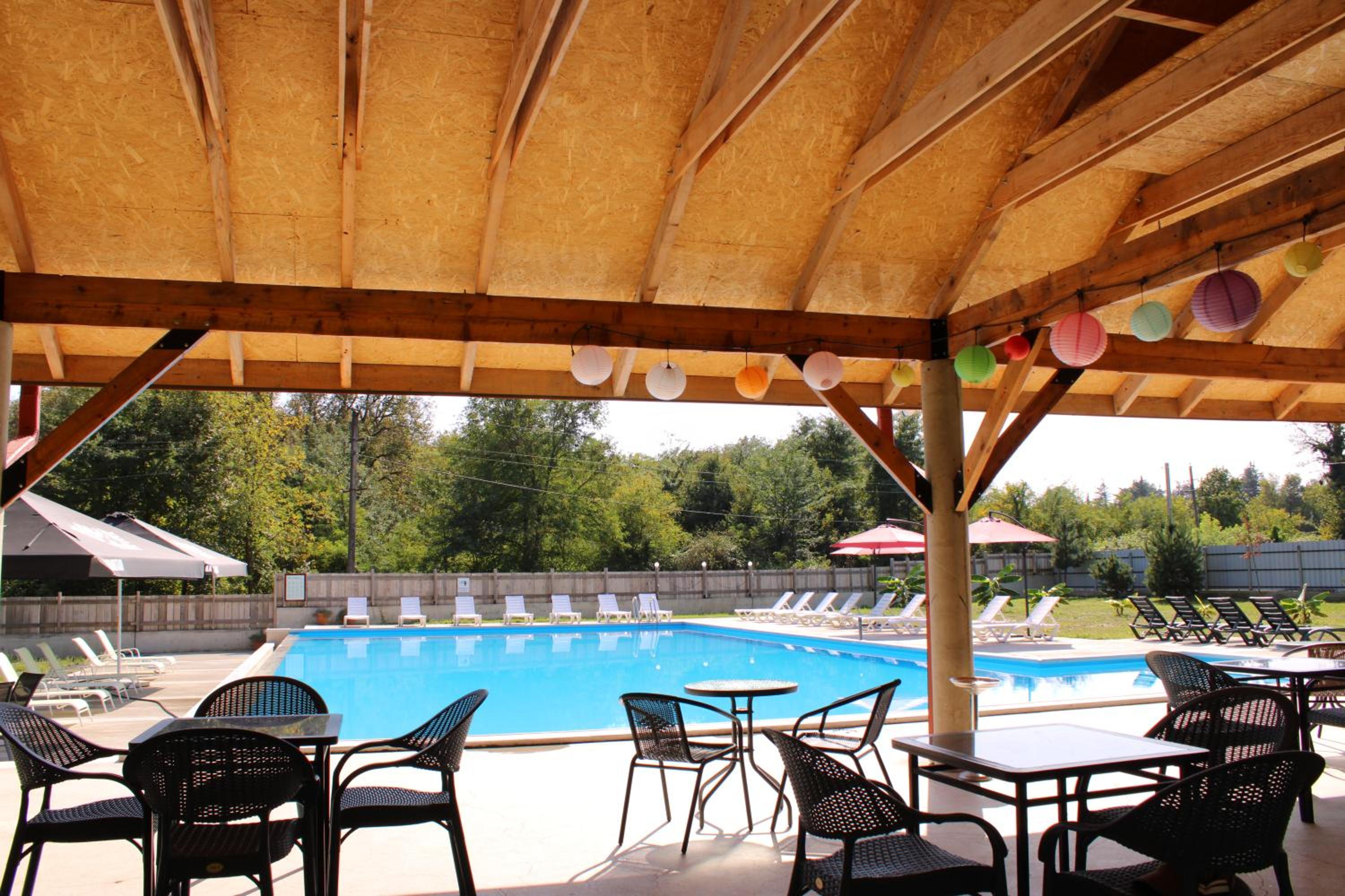 Nestled in Kvareli, just 2.4 km from Ilia Chavchavadze State Museum, Kvareli Oaks offers a perfect blend of comfort and nature. Guests can unwind by the seasonal outdoor pool or explore the lush garden and shared lounge area. The property's terrace provides breathtaking views, while the karaoke and free WiFi ensure endless entertainment options.
