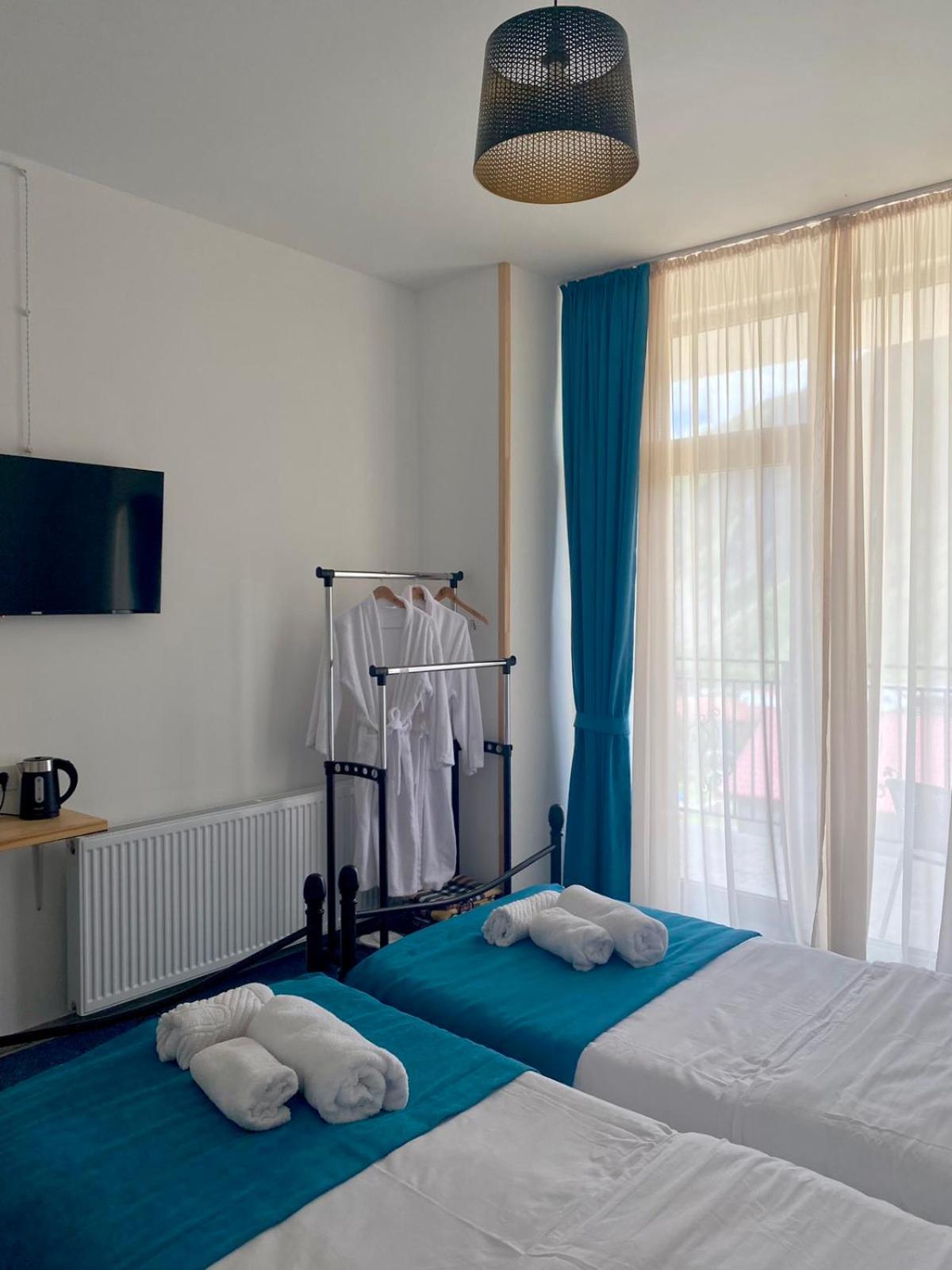 Прекрасный вид из окна, на верхней веранде есть качели - там вообще панорамный вид просто сказка, завораживает) вкусные завтраки, чистый номер, удобное расположение, приветливые хозяева - пошли на встречу и оставили за нами бронь номера даже без предоплаты, так как наши карты там не работают..