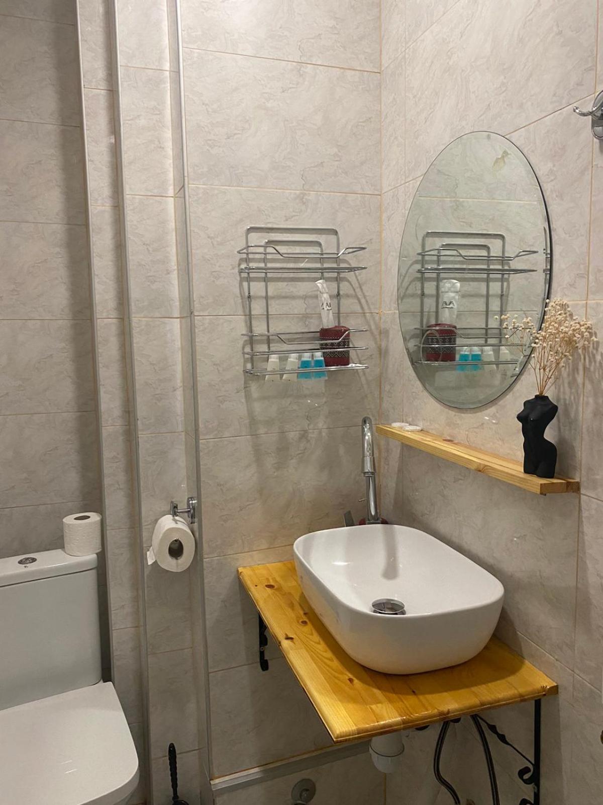 A private bathroom was extremely small with no separate shower cabin, so the water literally fell over toilet, sink and floor. A yacht or camper style.