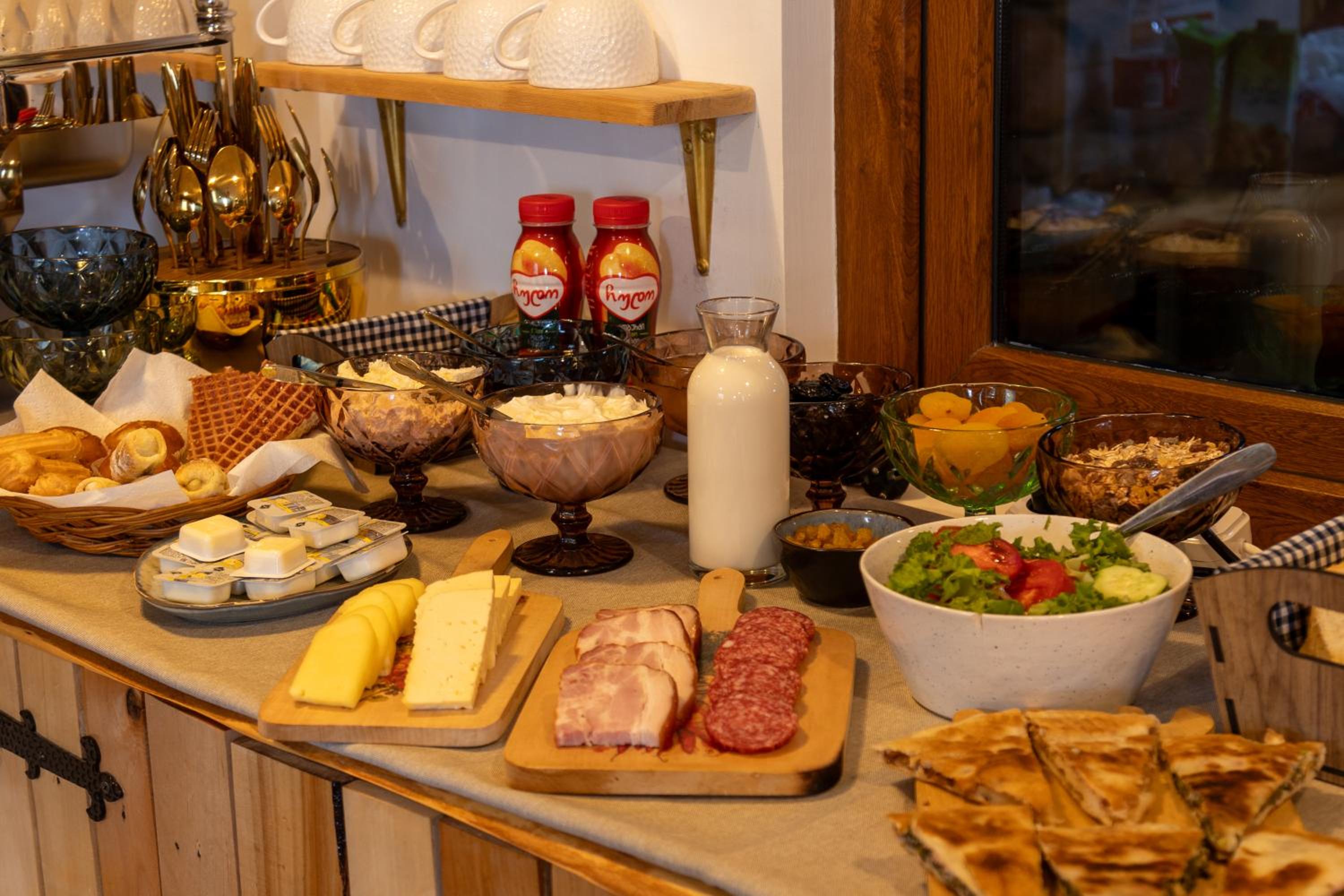 В отличие от вкусных завтраков, ситуация с ужином ровно противоположная…но возможно это нам так не повезло…( лень было идти искать кафе, решили поужинать внизу в ресторане. Заказали оджахури и хинкали…одни из самых простых блюд грузинской кухни…мясо в хинкали все было с прожилками, а оджахури - это что-то с чем-то…пересушенная картошка и абсолютно несъедобное мясо…без овощей, сухо и невкусно. Как можно было испортить такое несложное блюдо - загадка(( В общем, если вдруг решите здесь отужинать - рекомендую сто раз подумать… еще и обиделись на нас за то, что сказали правду по поводу ужина. На следующее утро хозяйка гостиницы даже не поздоровалась с нами и кофе не предложила (в отличие от соседнего столика с иностранцами), что было крайне удивительным…)