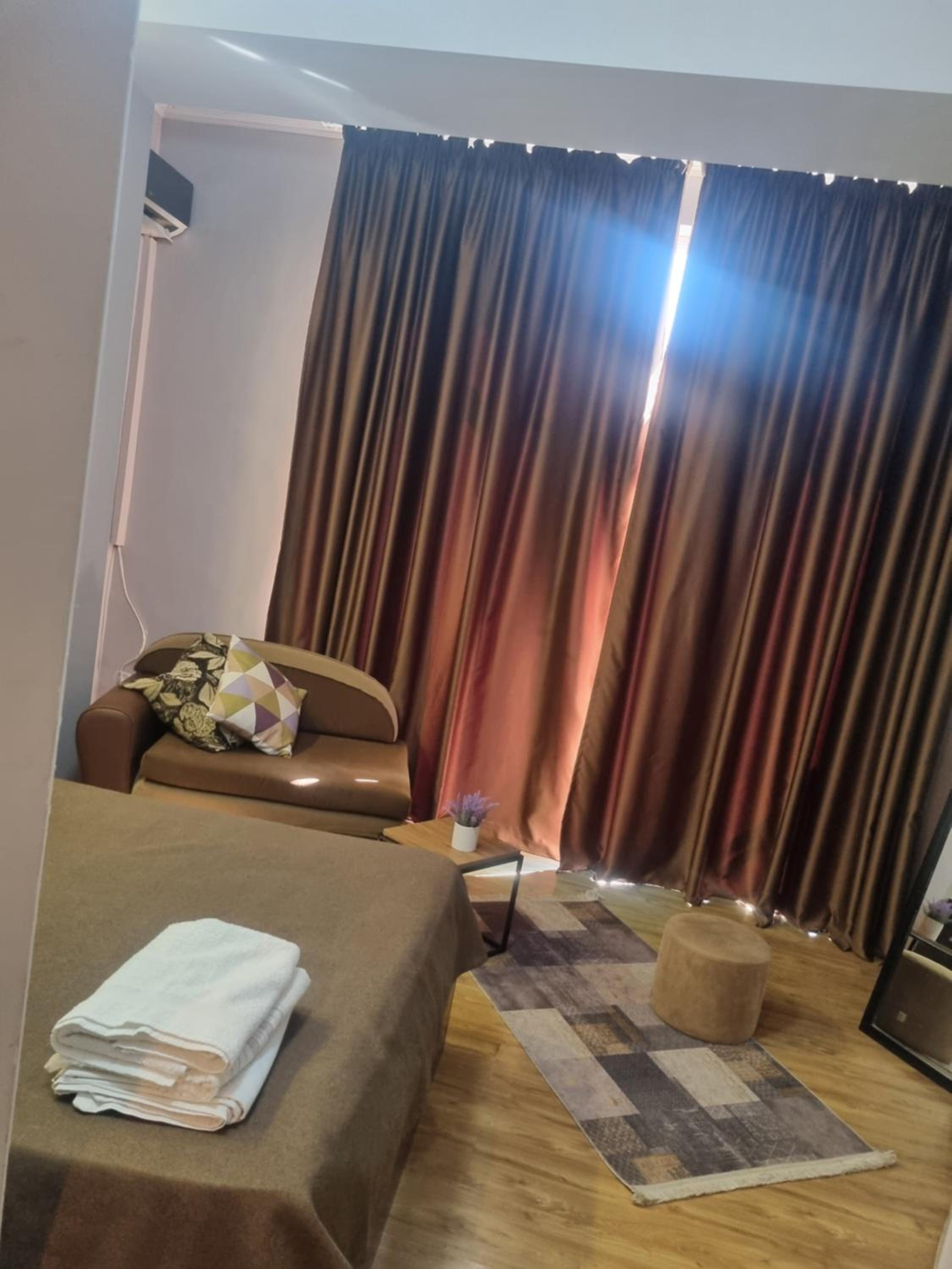 Modern Amenities: Enjoy a comfortable stay with air conditioning, flat-screen TV, and free WiFi in all units. The 24-hour front desk, airport transfers, and room service ensure a hassle-free experience.