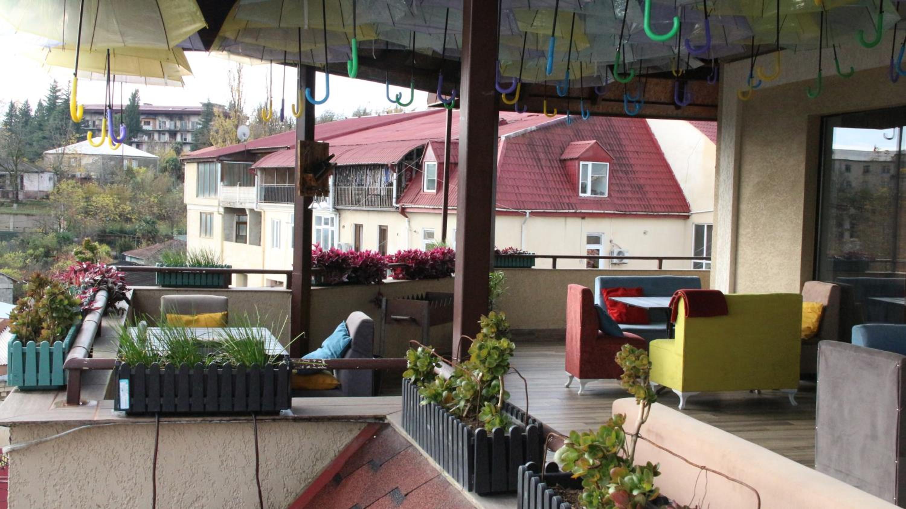 Отель выбрали из за расположения в первую очередь: метров 100 до центрального рынка, столько же до отличного ресторанчика Хинкали хаус (советую: вкусно и очень бюджетно), метров 600 до радоновых бань и в окружении сталинских санаториев, которые сами по себе крутая достопримечательность. А плюс к расположению получили аккуратные номера, гостеприимного хозяина, террасу с кухней, на которой завтракали каждый день.
