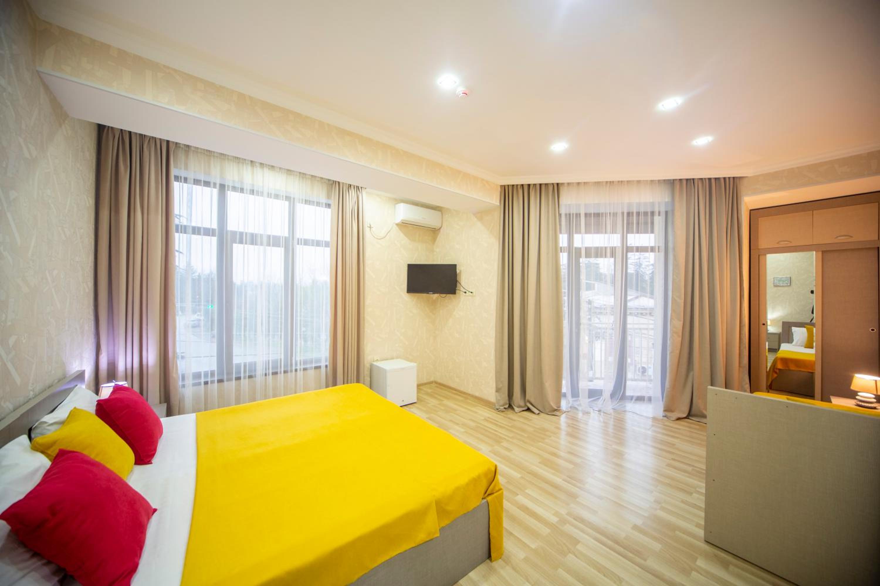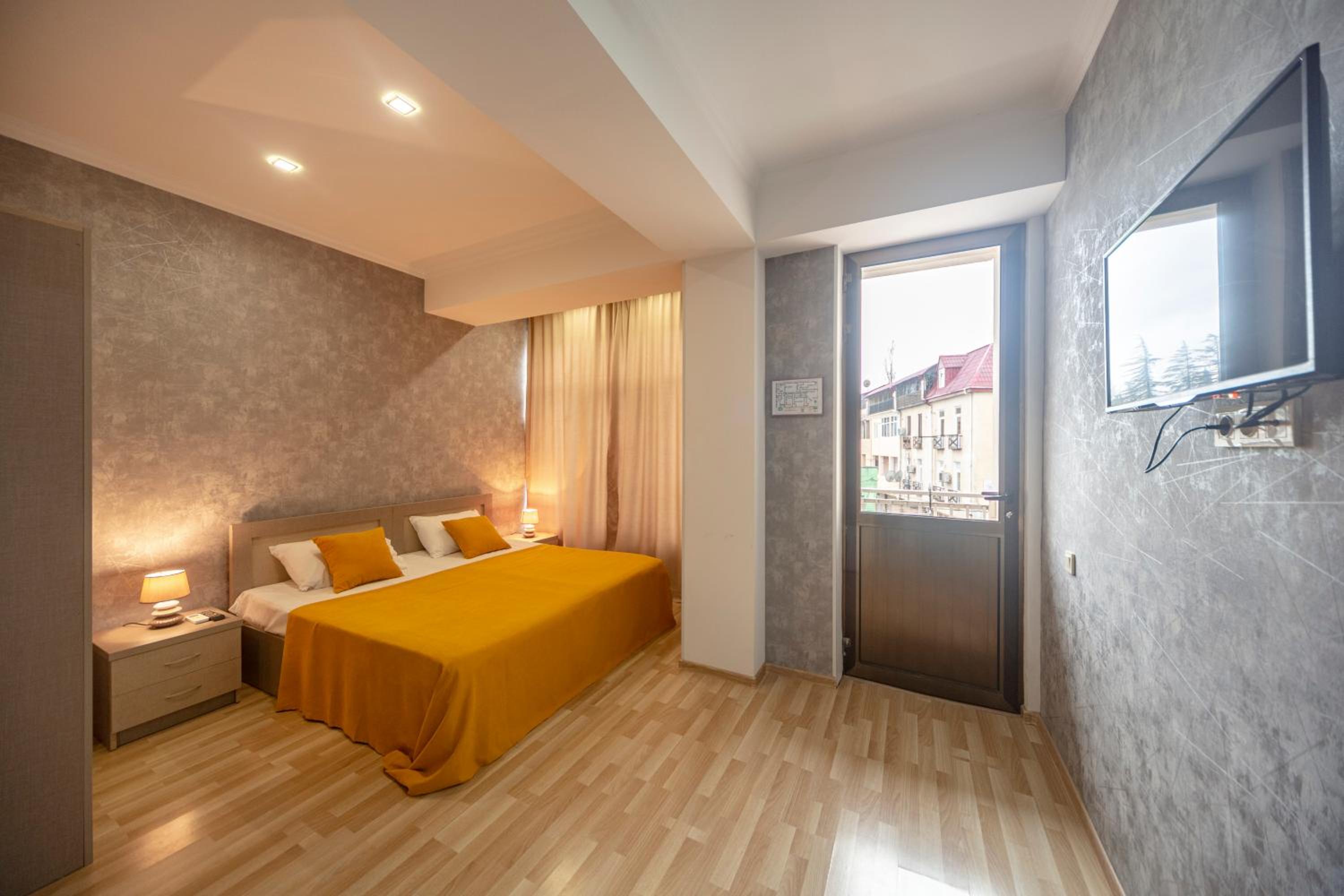 The hotel is located in the heart of Tskaltubo, in an ideal location. The room was clean and cozy, creating a warm and welcoming atmosphere. The owner personally greeted us and made sure we were comfortably settled in. I was extremely satisfied with the service and hospitality. I highly recommend this hotel to anyone visiting the area.