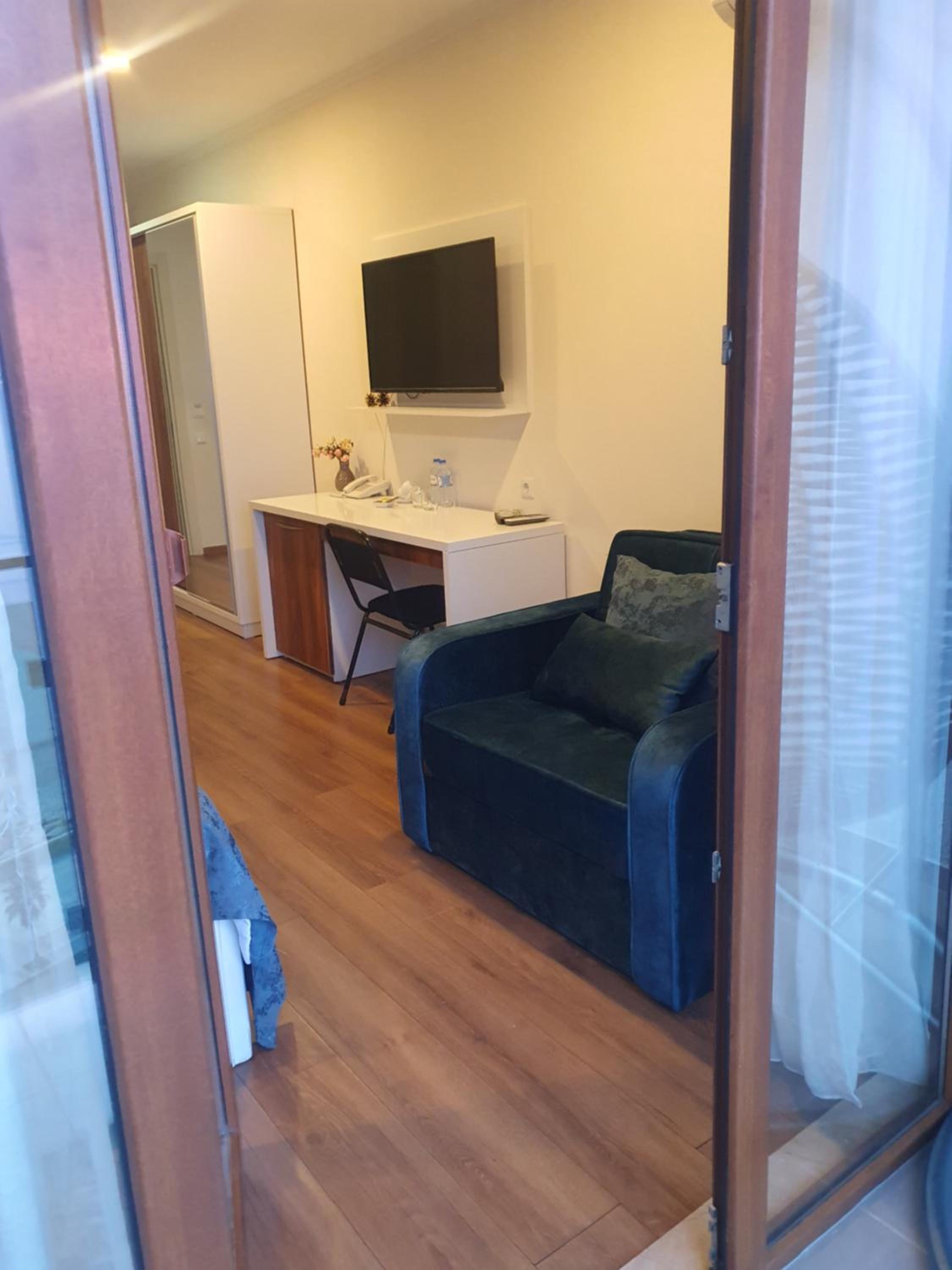 A standard hotel room, though with a direct view of the sea. Everything is clean and tidy. The only thing is that we had to move to another similar room, because someone smoked there before us. 1 minute from the beach, a quiet place far from the center of the noisy promenade. We recommend it.