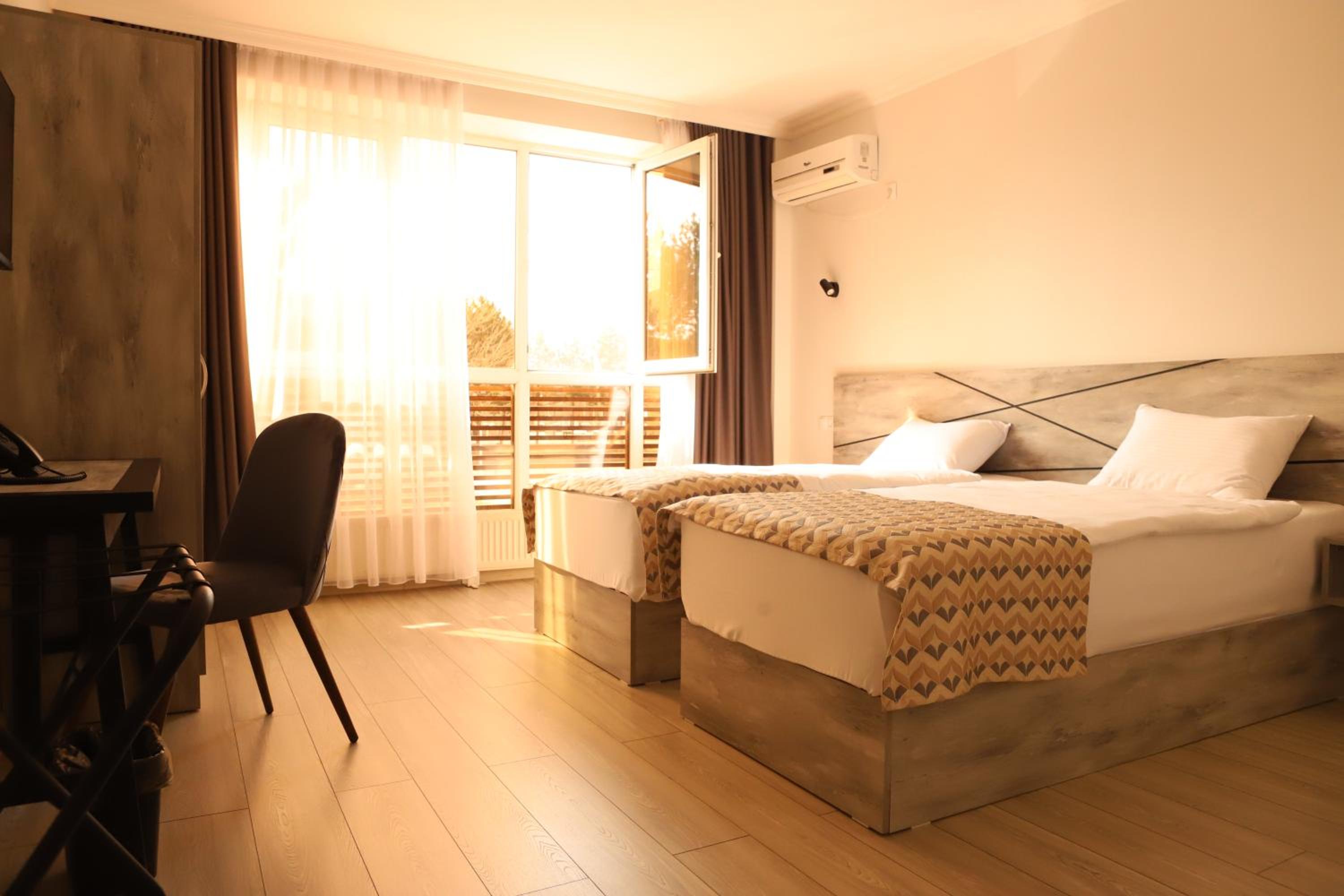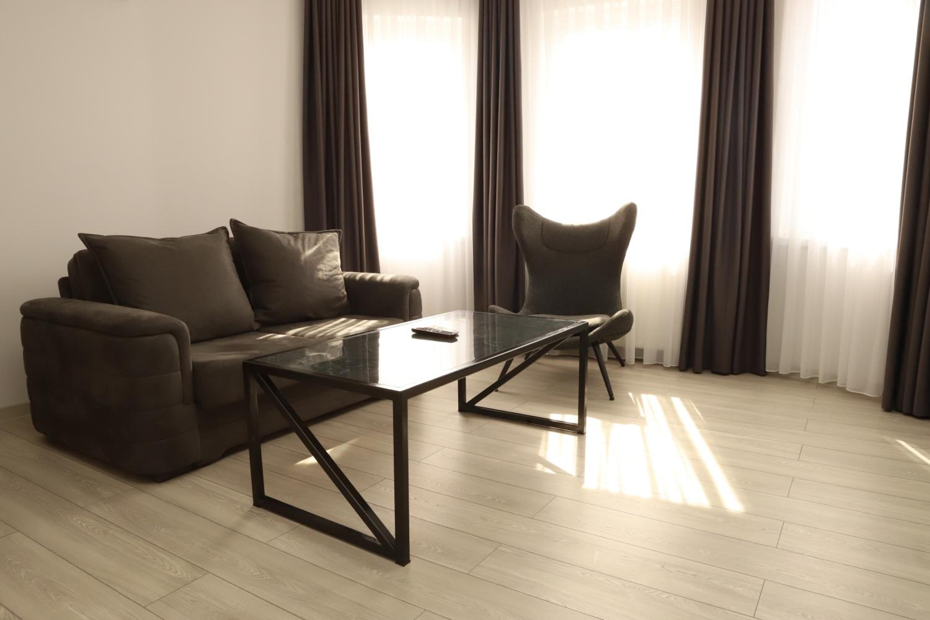 Convenient Amenities: Enjoy in-room facilities such as a kettle, flat-screen TV, and a safety deposit box. Our multilingual staff is available 24/7 to assist you in English, Georgian, and Russian.