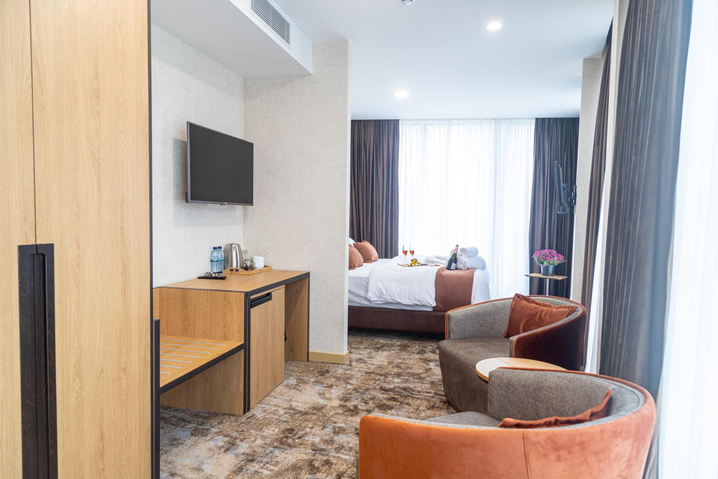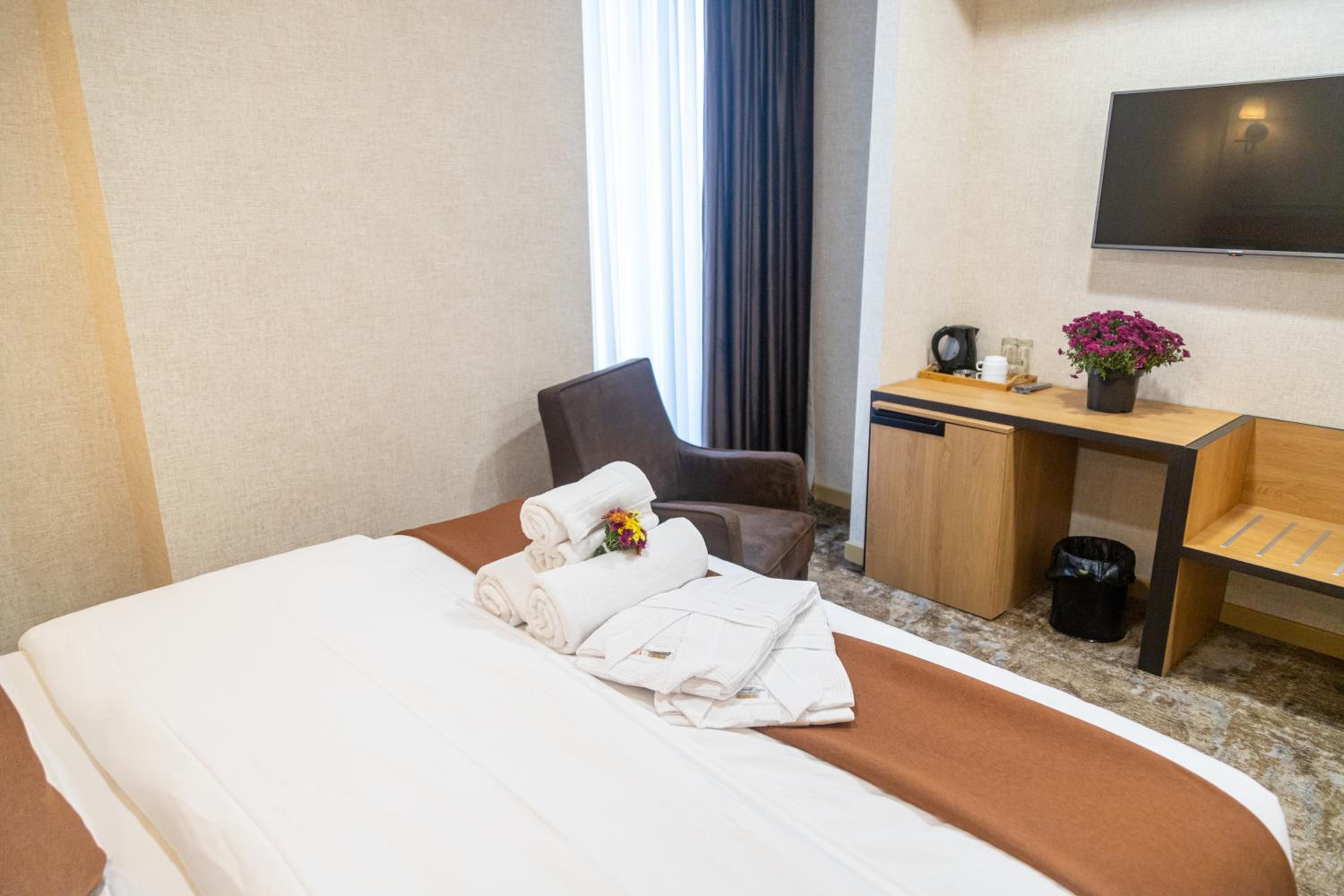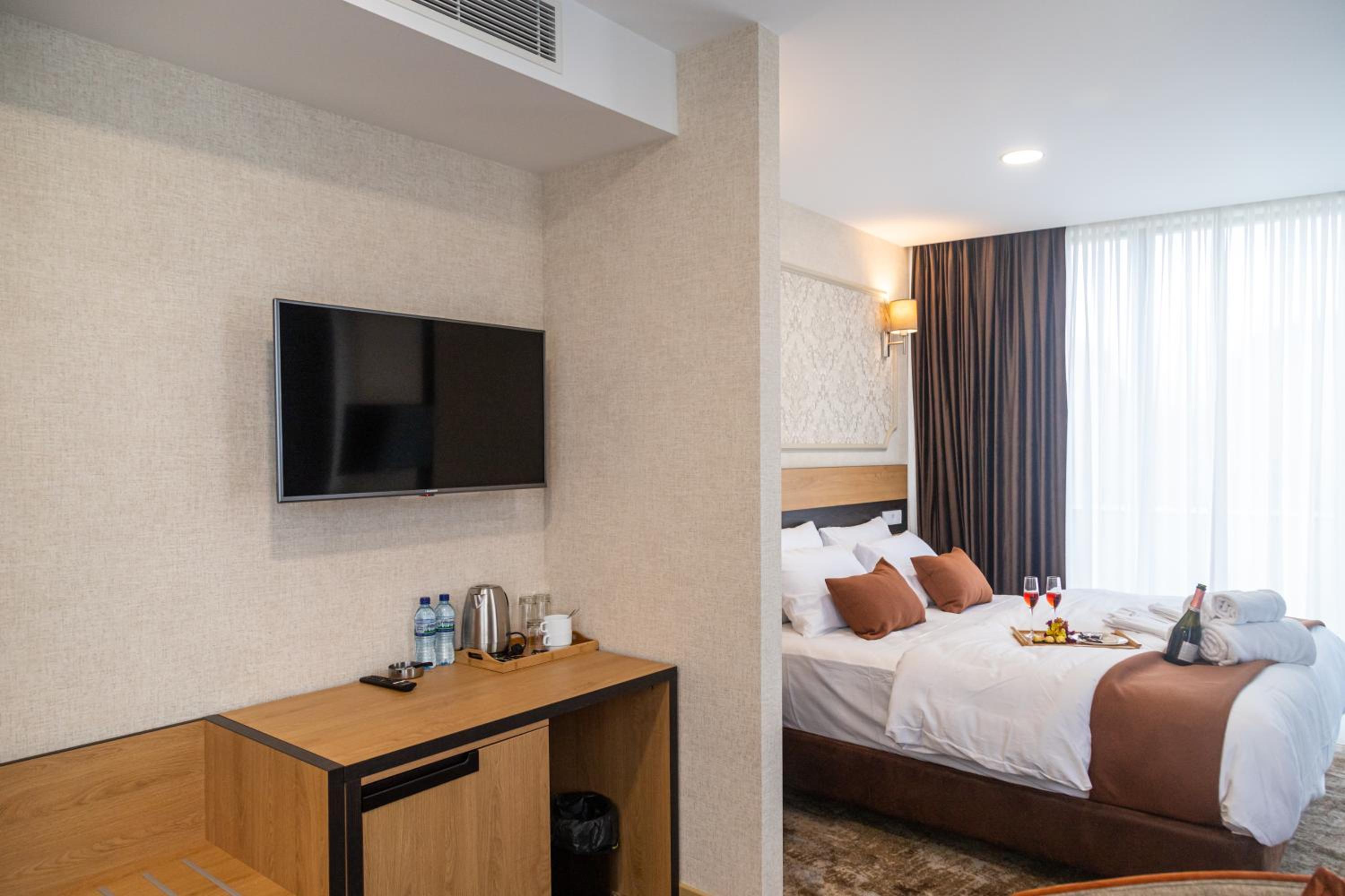 Enjoy seamless service with our 24-hour front desk, free WiFi, and room service. Explore nearby attractions such as Heroes Square and Tbilisi Circus, all within easy reach from our hotel. Book your stay at Hotel Solum Roof Top for an unforgettable experience in Tbilisi City.