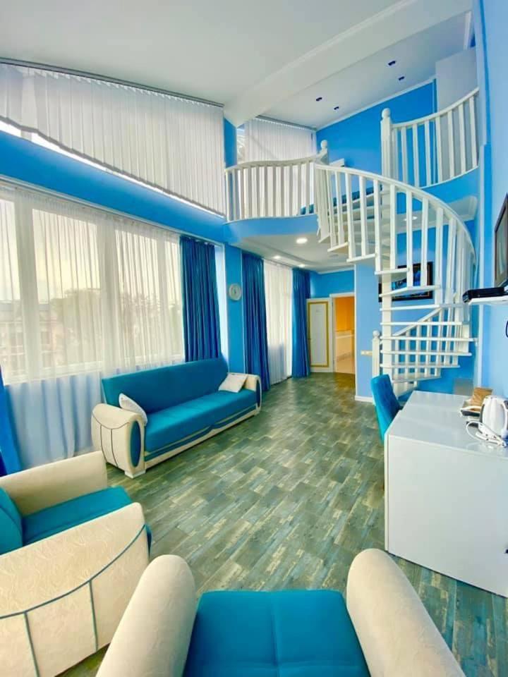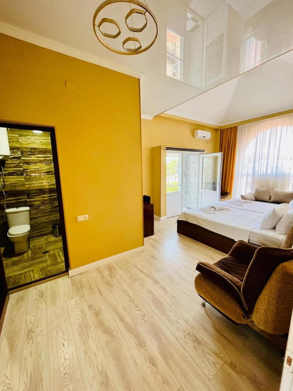 Для гостей предоставляют пляжные полотенца. Вид из люкса просто потрясающий. Отдельный плюс — бесплатный трансфер от вокзала и обратно.