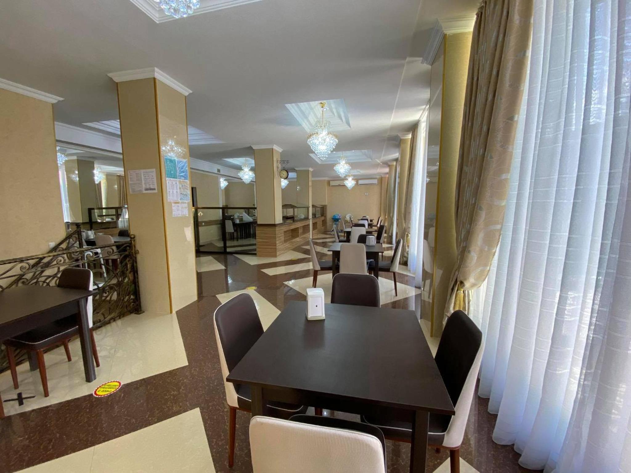 Indulge in Georgian delicacies and European cuisine at the hotel's cafeteria, or unwind by the outdoor pool. For entertainment, enjoy billiards or darts, relax with a massage, or let the little ones have a blast at the children's playground.