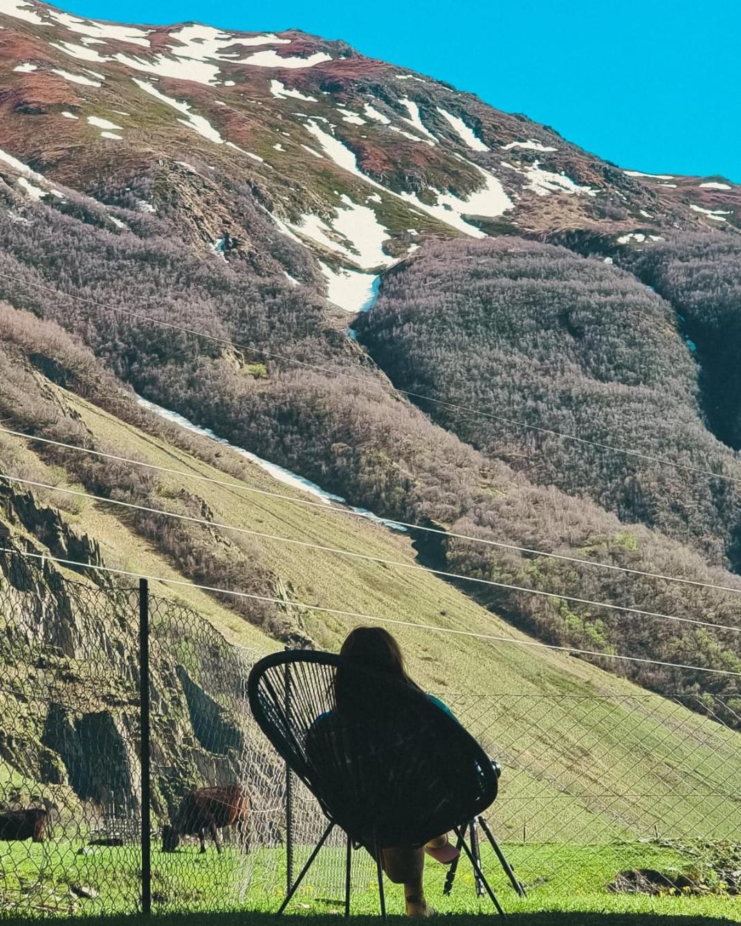 Direct view to the mountains, from both sides. Very friendly and helpful owners, such a gem in Georgia. Clean, fully equipped with everything needed for your stay - stove, kettle, refrigerator, all utensils and so on.