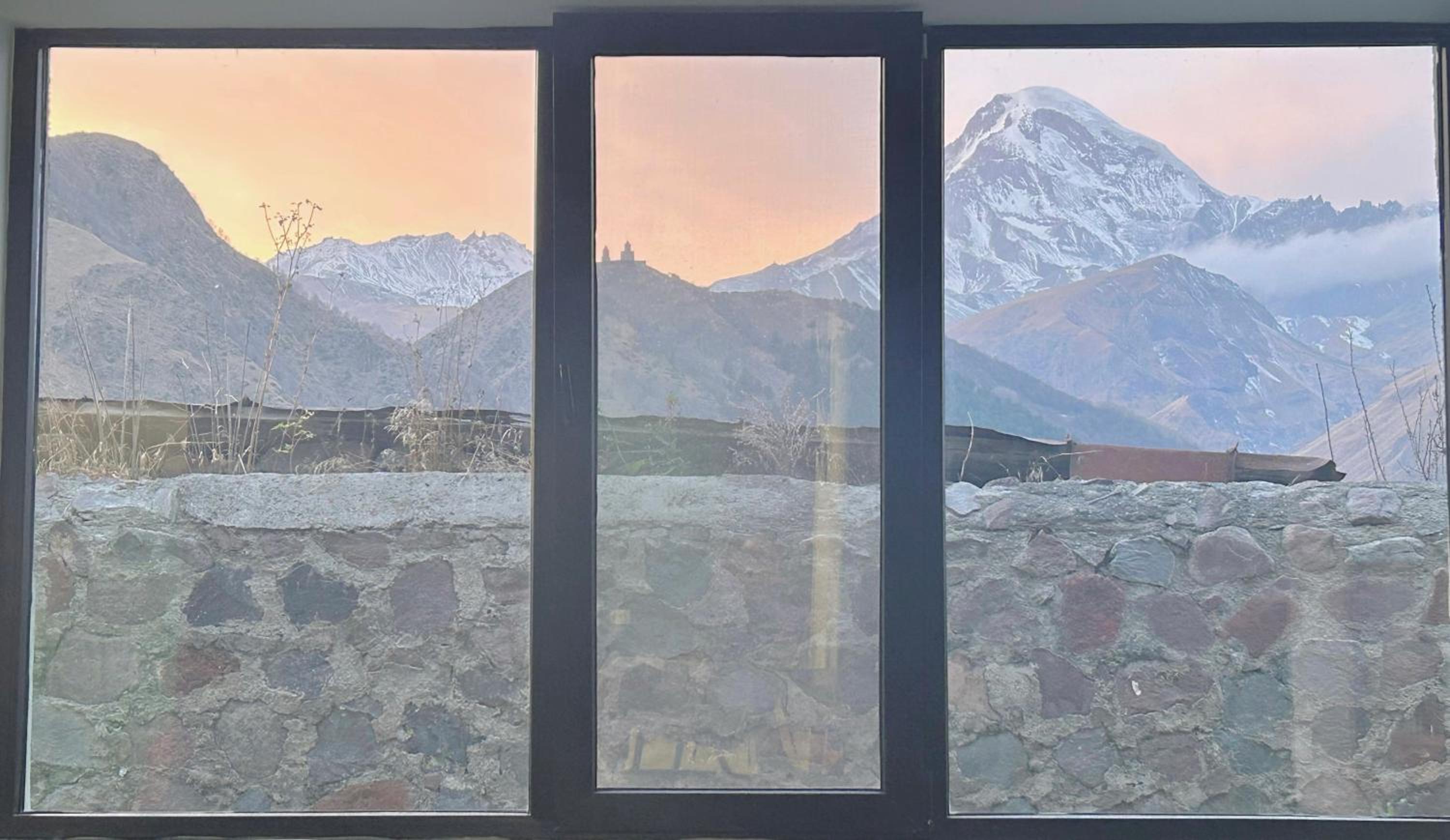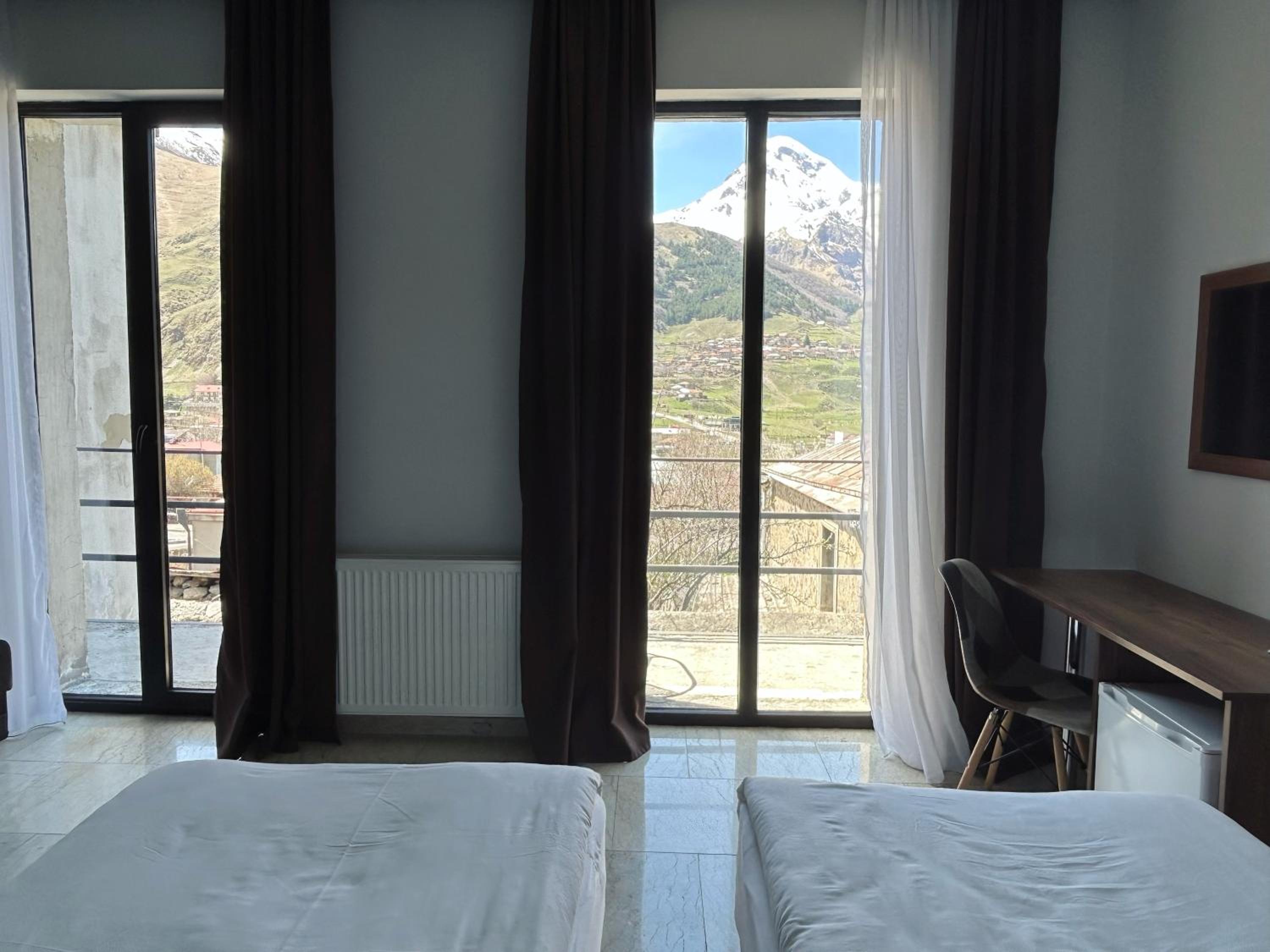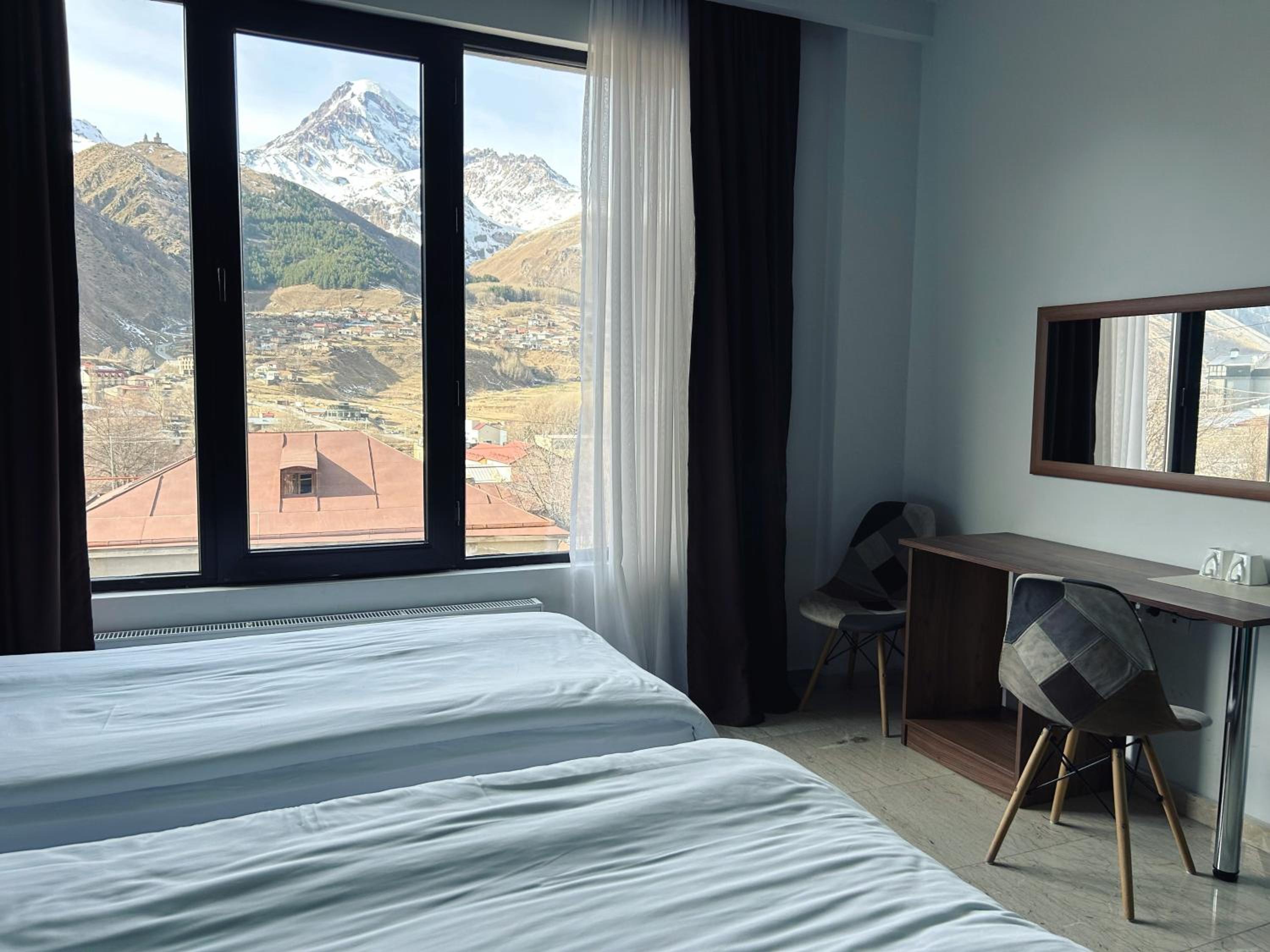 Просто невероятный вид на Казбег, просторный светлый номер, вкусный и очень сытный завтрак, отзывчивый персонал.