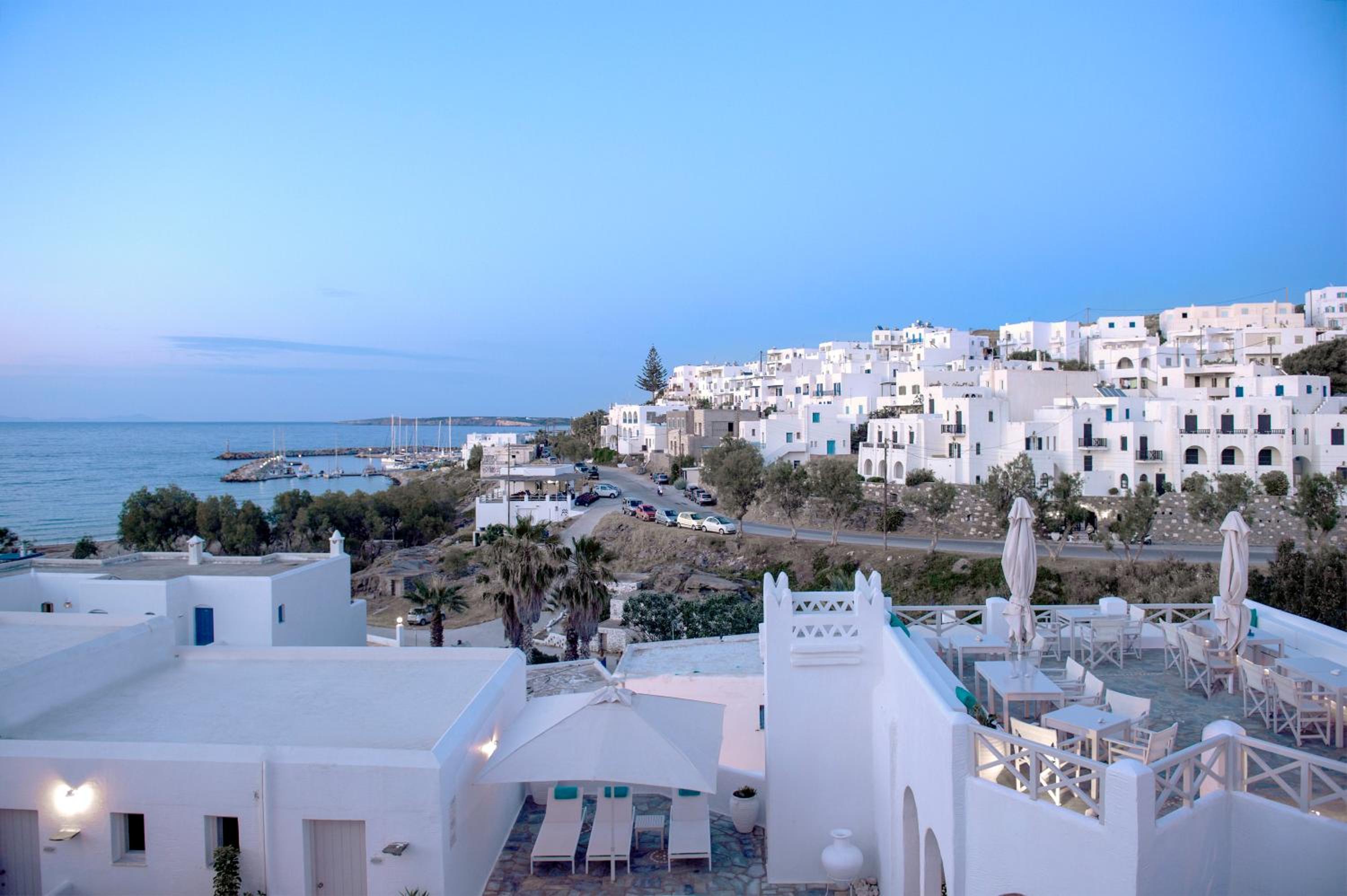 The staff, especially Nikos, bent over backward to assist. Close walk to town. Fabulous food in hotel restaurant - breakfast, lunch, dinner - always great cooking & fresh produce.