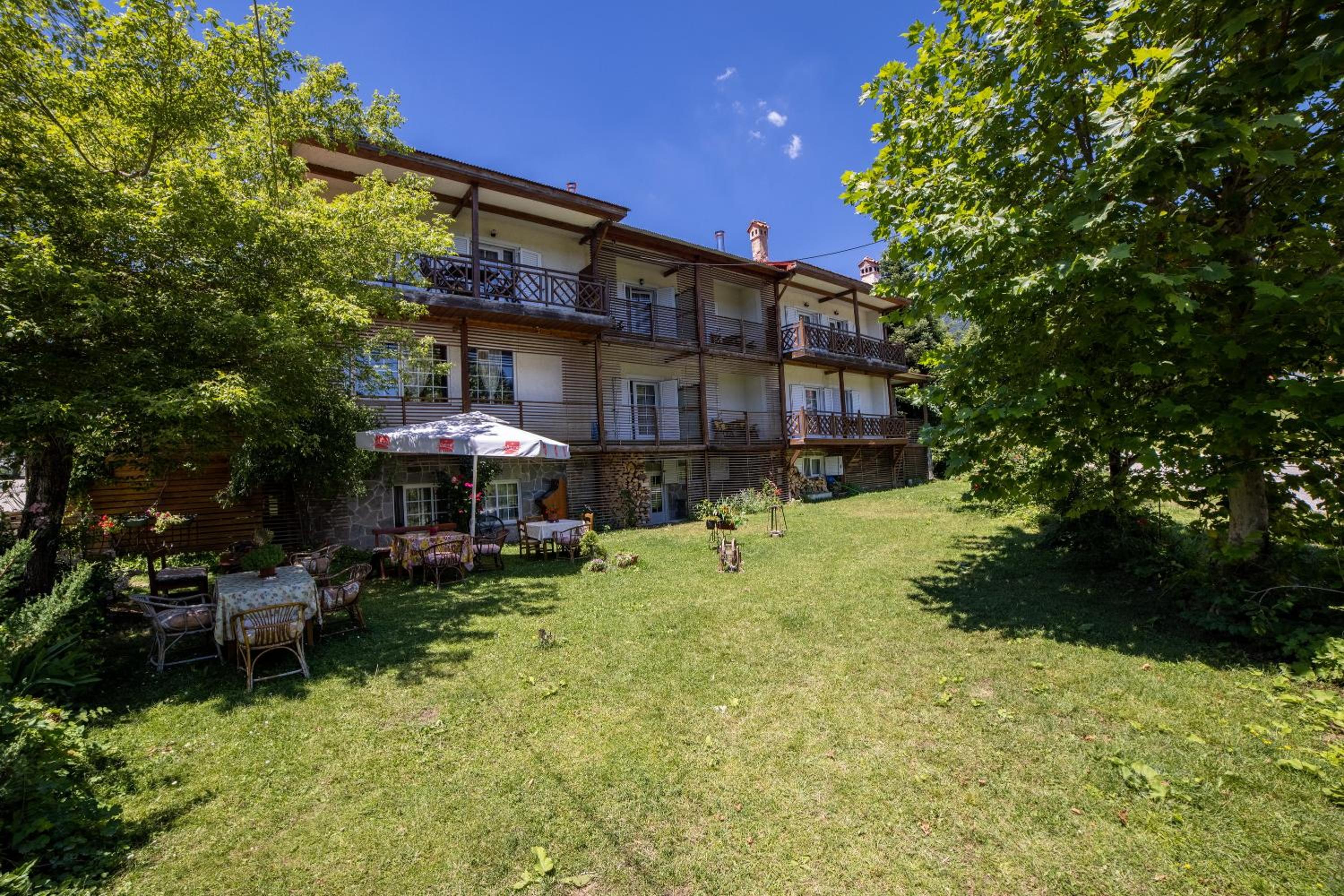 Unwind in the hotel's garden or terrace, perfect for enjoying a peaceful moment amidst nature. Book your stay now at ΞΕΝΟΔΟΧΕΙΟ ΠΑΠΑΝΑΓΙΩΤΟΥ for a memorable getaway.