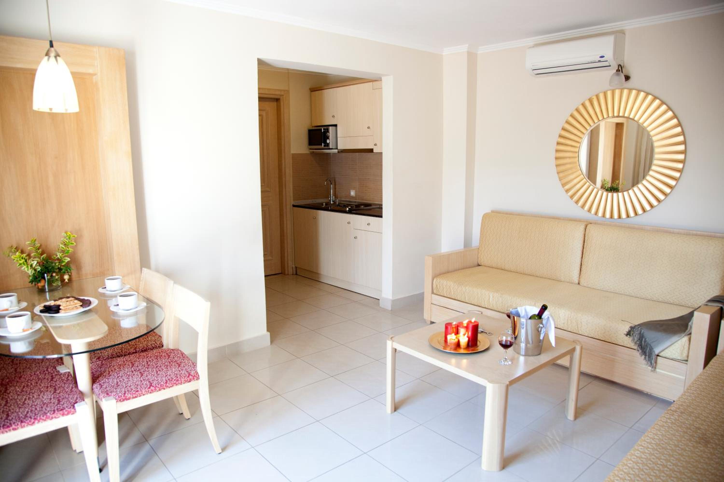 Luxurious Amenities: Okeanis Golden Resort offers air-conditioned rooms with free WiFi, a private bathroom, desk, coffee machine, flat-screen TV, and safety deposit box. Some rooms even feature balconies with stunning mountain views.