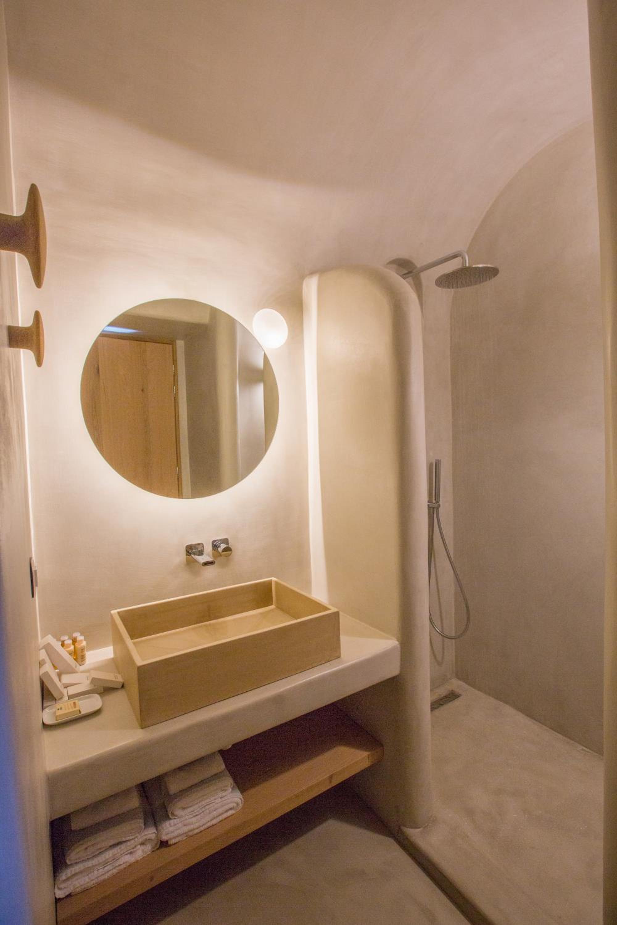 The room had several issues - the bathroom was about a 25cm step down (very dangerous esp. at night); the only mirror was in the bathroom and was mounted tilting down, so I had to stoop to use it; and worst of all, the door did not seal properly, it rattled with the wind and our last night there it rained and water came in under the door and made a big puddle in the room. The room was advertised as a “cave” so it was not surprising that there were no real windows (except in the door), but I did not enjoy not having windows.